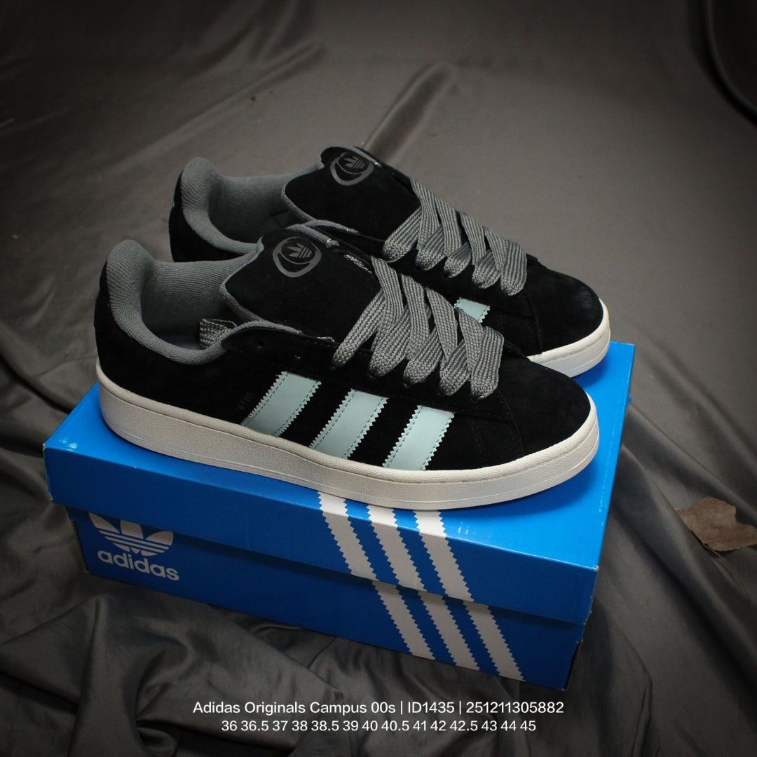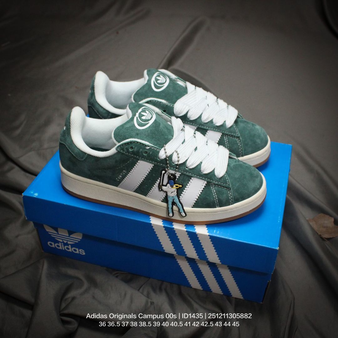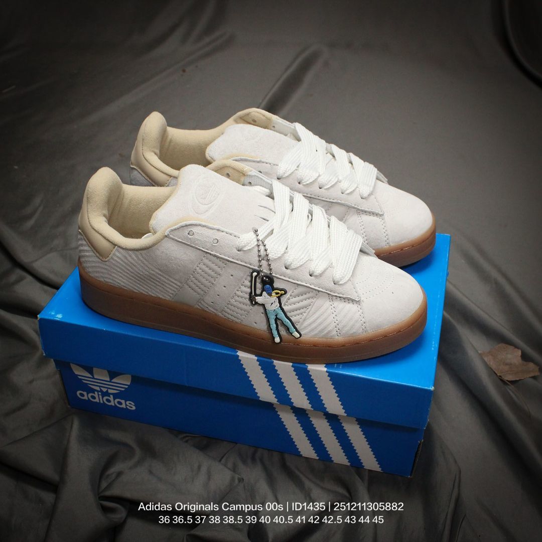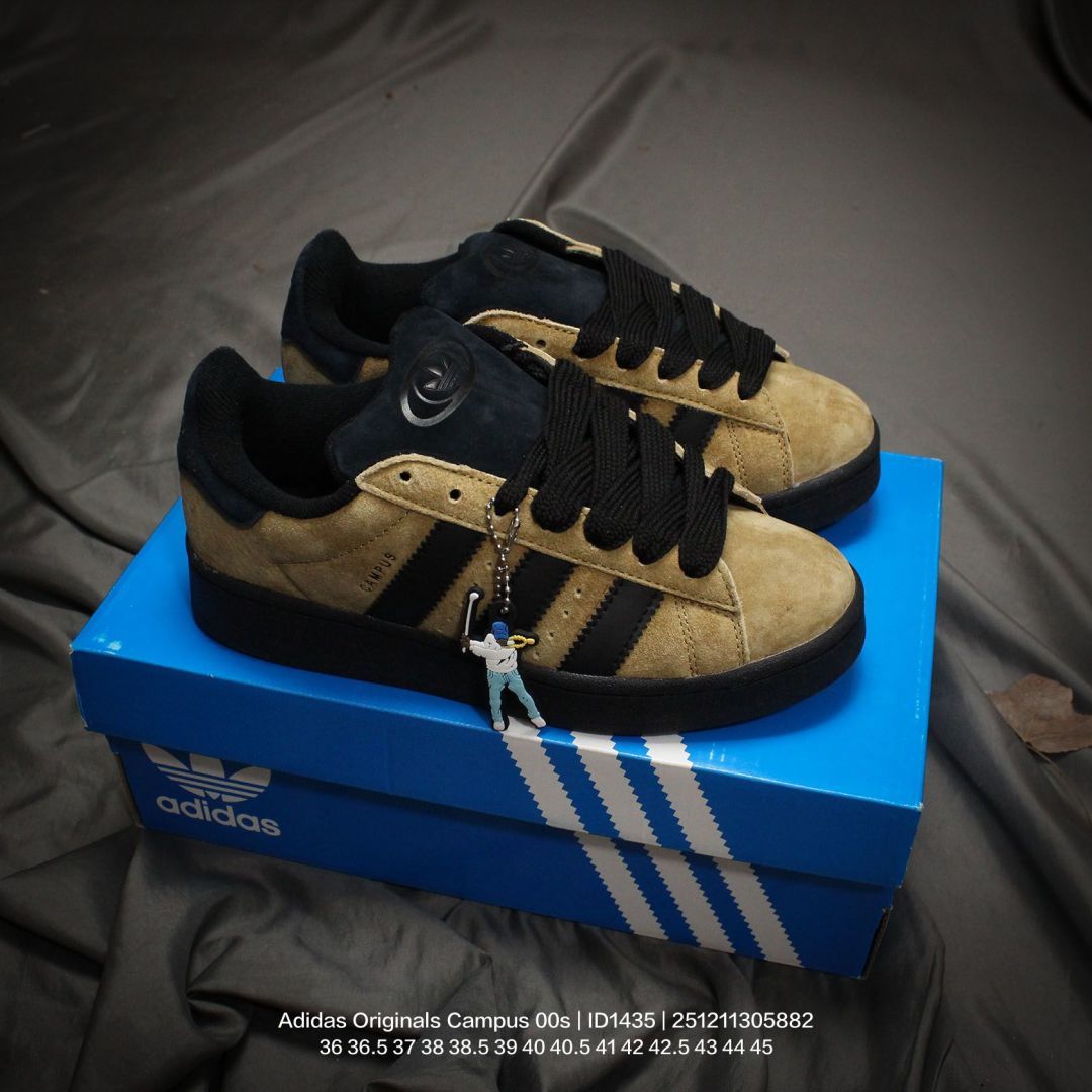 Adidas 阿迪达斯 男女鞋真标半码制 升级原楦原纸版数据开发版型 采用翻毛皮组合牛剖革饰片鞋面材质 内嵌欧索莱Ortholite 混合 再生 鞋垫 外置RB防滑耐磨橡胶大底潮流我熟 面包鞋就选这款 阿迪达斯Adidas Originals Campus 00s 学院系列面包风经典复古低帮百搭休闲运动板鞋 ID1435