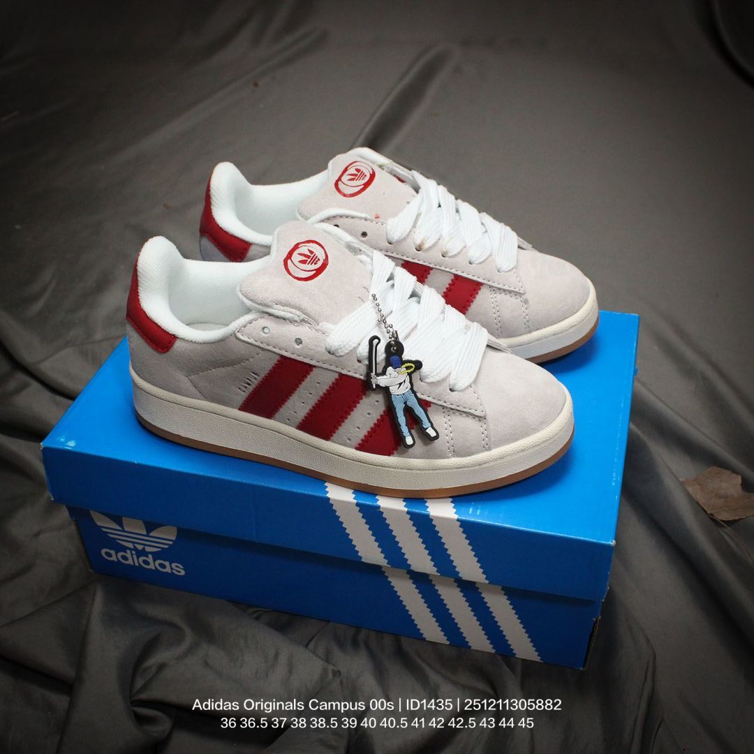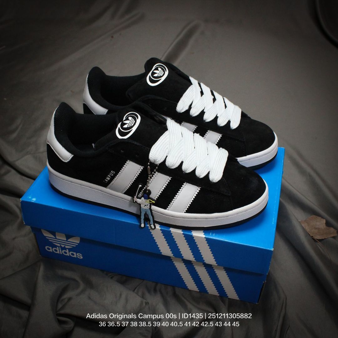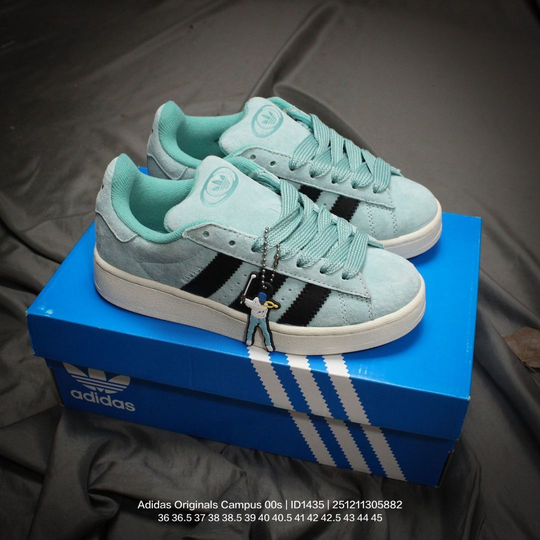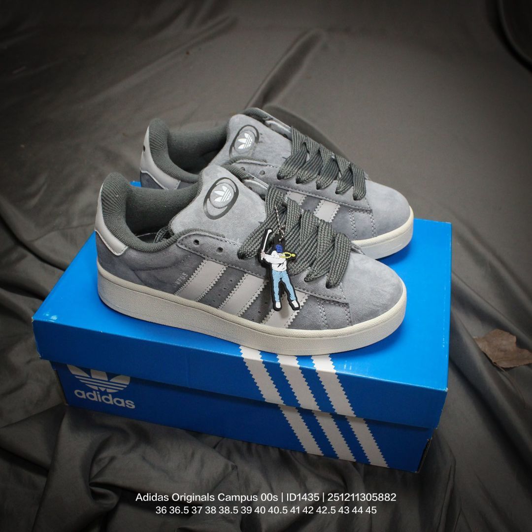 Adidas 阿迪达斯 男女鞋真标半码制 升级原楦原纸版数据开发版型 采用翻毛皮组合牛剖革饰片鞋面材质 内嵌欧索莱Ortholite 混合 再生 鞋垫 外置RB防滑耐磨橡胶大底潮流我熟 面包鞋就选这款 阿迪达斯Adidas Originals Campus 00s 学院系列面包风经典复古低帮百搭休闲运动板鞋 ID1435