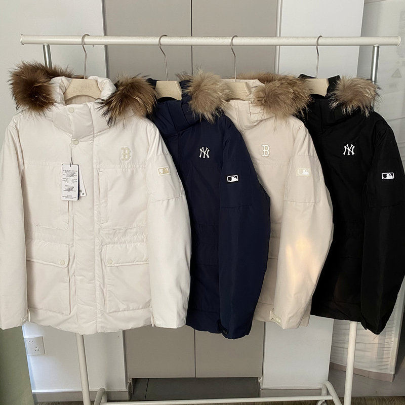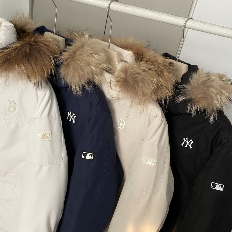 MLB羽绒服25ss发售男女秋冬款鹅绒保暖貉子毛领派克服连帽厚外套