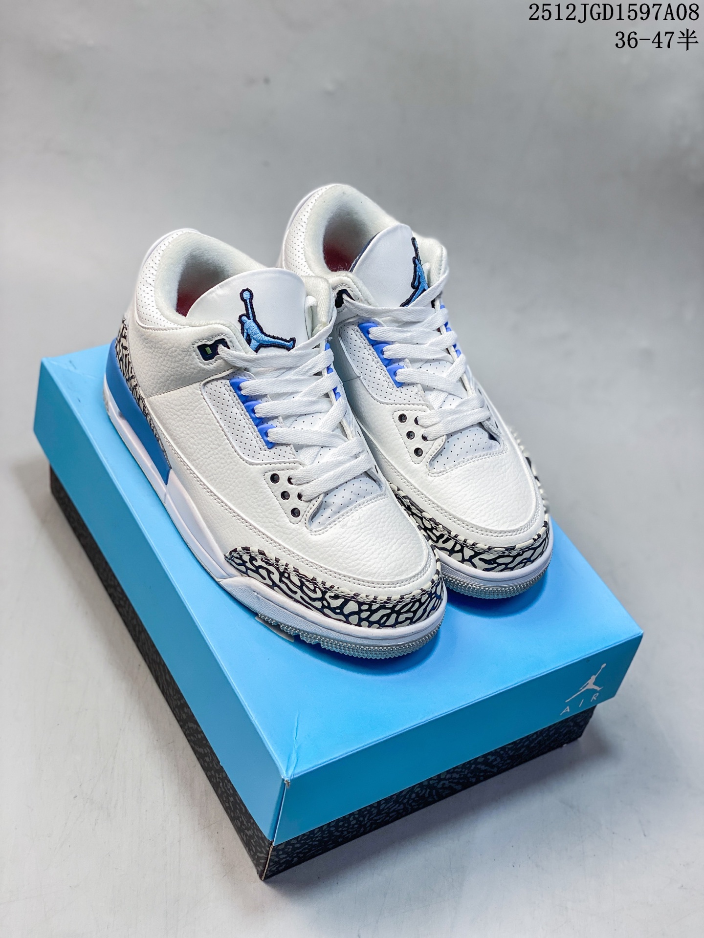 Air Jordan AJ3 Retro CT8532 104 北卡蓝 全套原纸板楦头开发 原厂大底磨具加持立体防滑纹理 原装可视Air Sole气垫 原汁原味最完美的三代版型 唯一正确鞋头趴度弧度高度鞋身腰线 此版本只针对中端市场 皮料材质有所更替 其他数据细节工艺流程均保持一致 绝不口嗨 细节品控鞋型随意秒杀市面3XX 4XX 原厂TPU后跟饰片 正确内里反口里网布 皮料菱角分明不变形无多余毛边 正确手工大底描漆拉丝 市场唯一原厂鞋扣模具 原厂织唛标 原厂飞人电绣工艺 尾指中部跳三针 独家绑鞋带手法 印刷中底布 四线拉帮 米色美纹纸贴合固定 进口港宝加持 后跟自然饱满 全鞋荧光划线卡点 追求极致完美 每一双都是工艺品 多重QC质检 超越公司货的品控标准 实实在在的免检产品 尺码 36 47