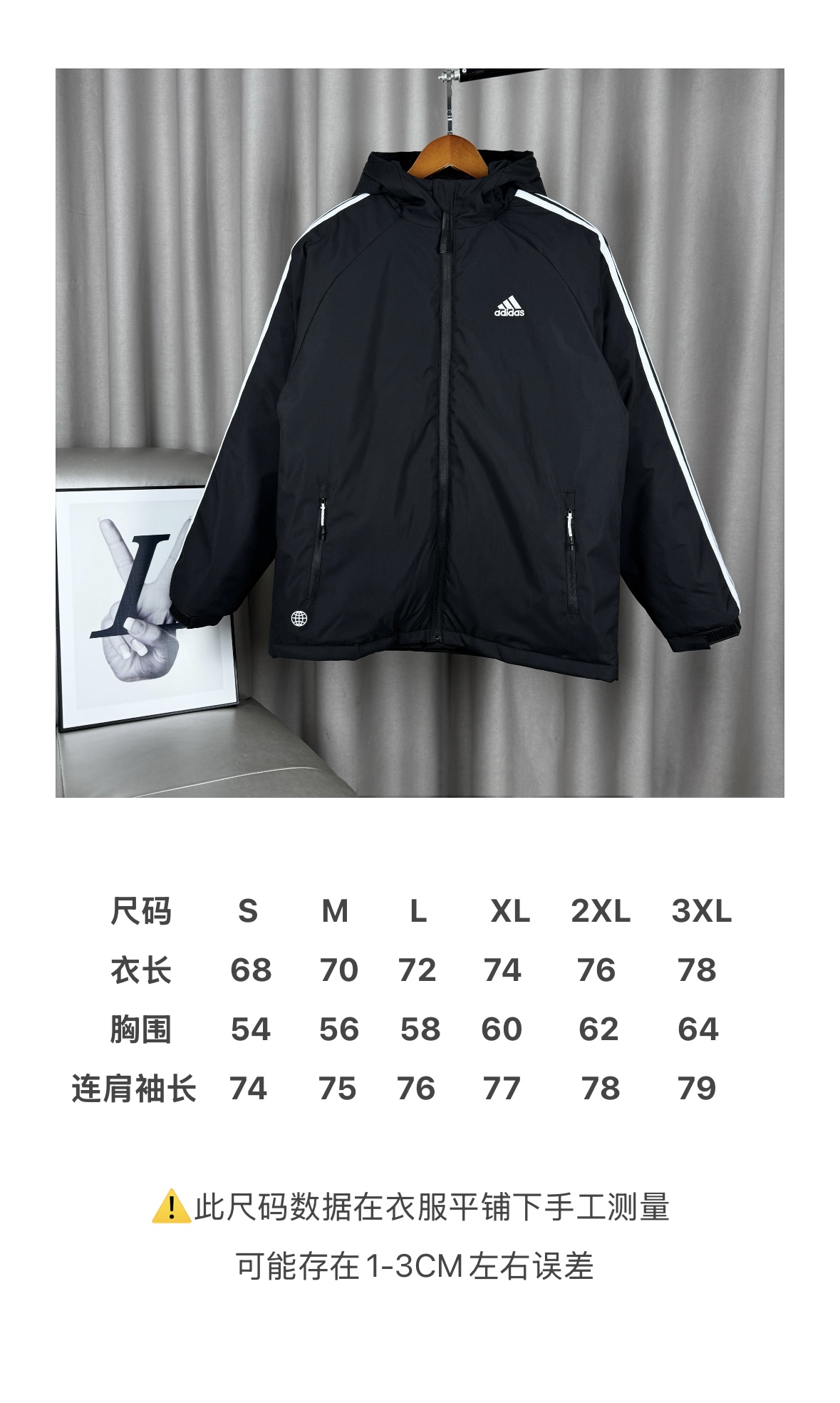 135138861 - 独家臻品 𝑨𝒅𝒊𝒅𝒂𝒔 阿迪达斯经典三道杠连帽加厚棉服胸前 349065
