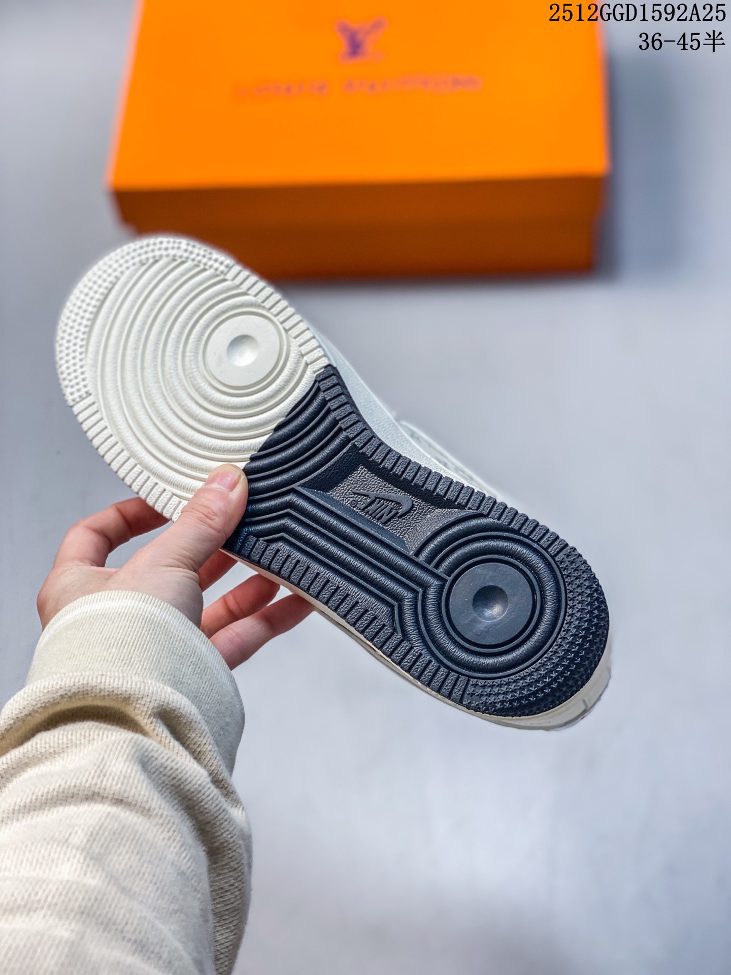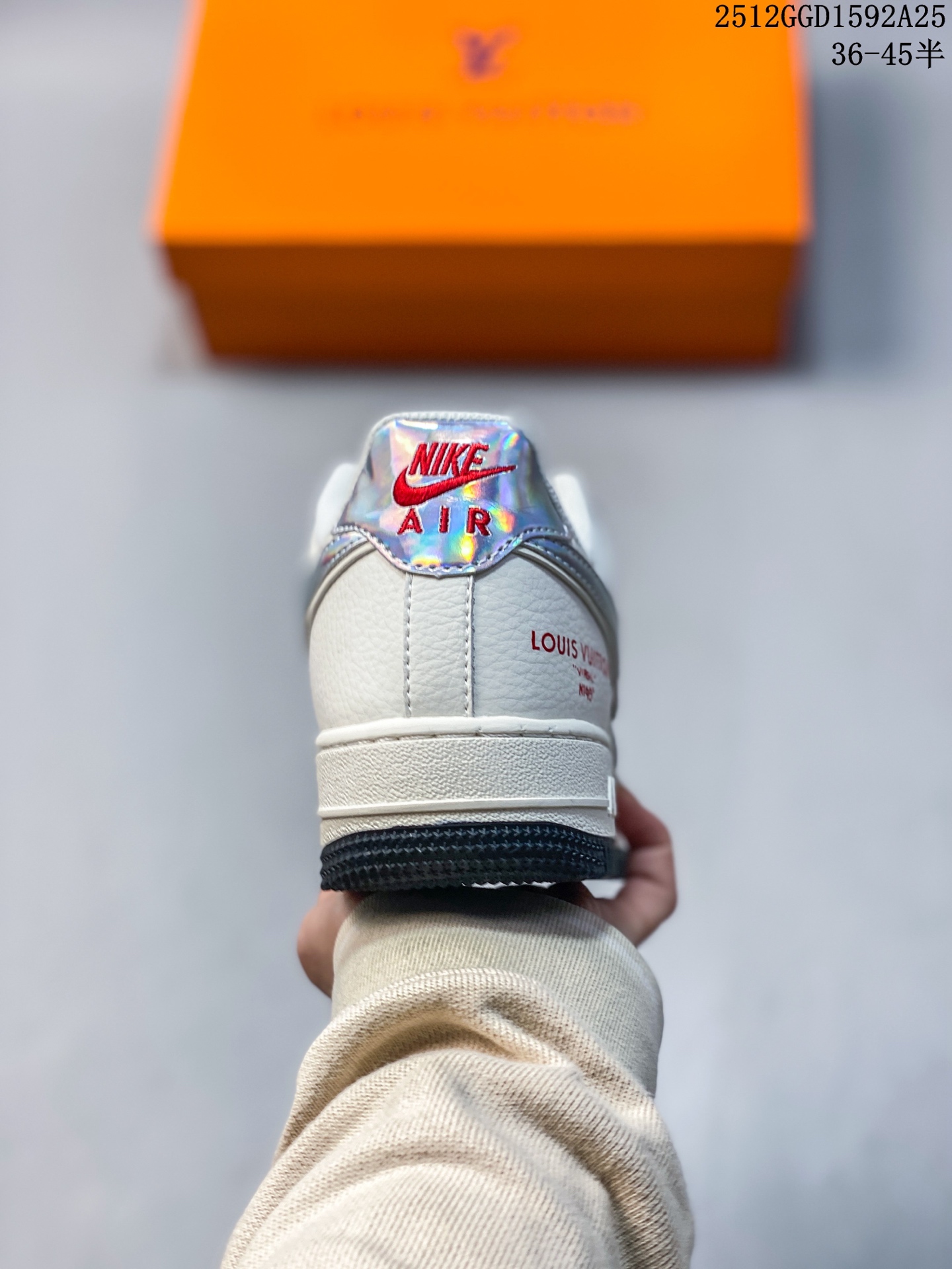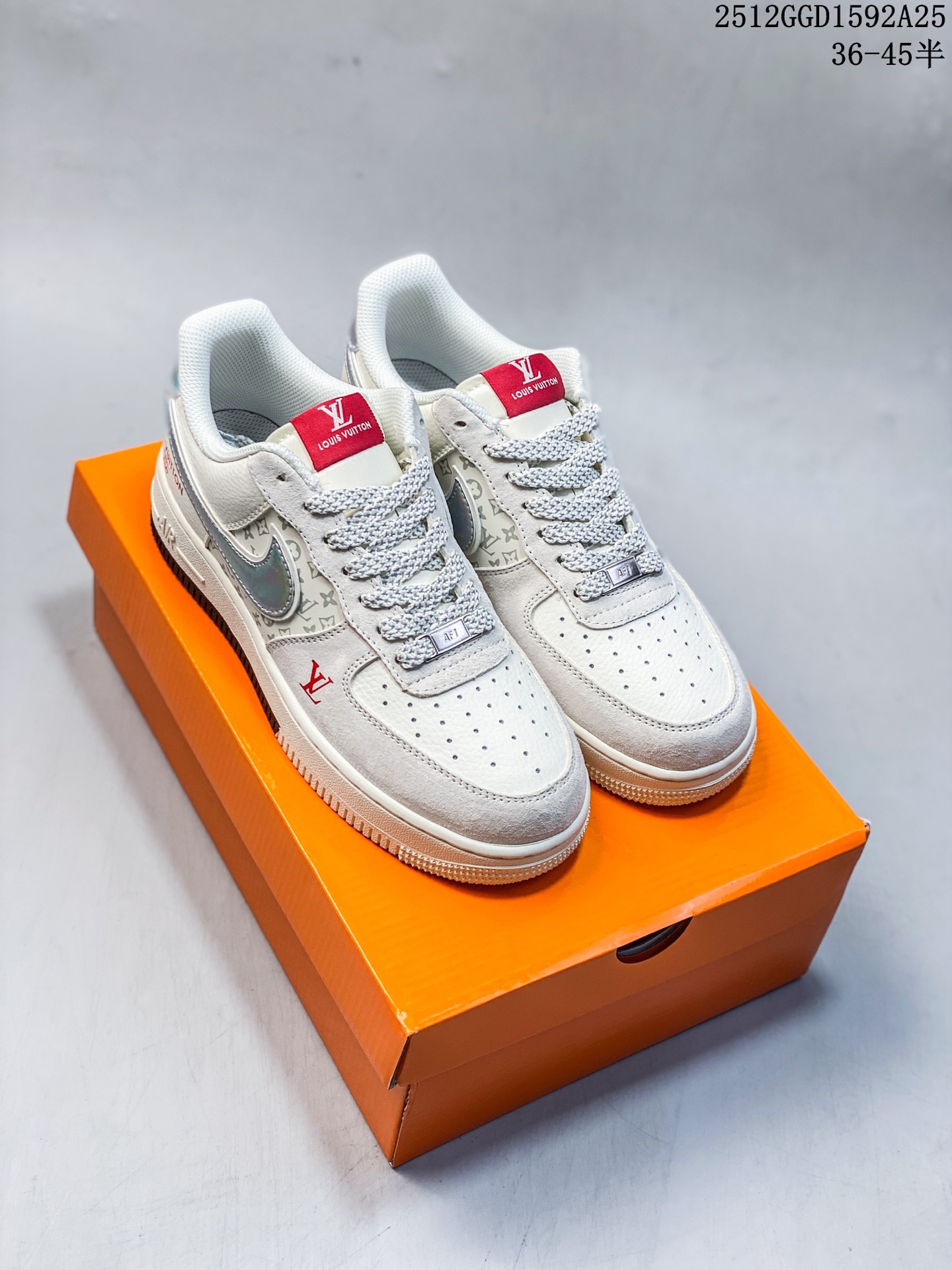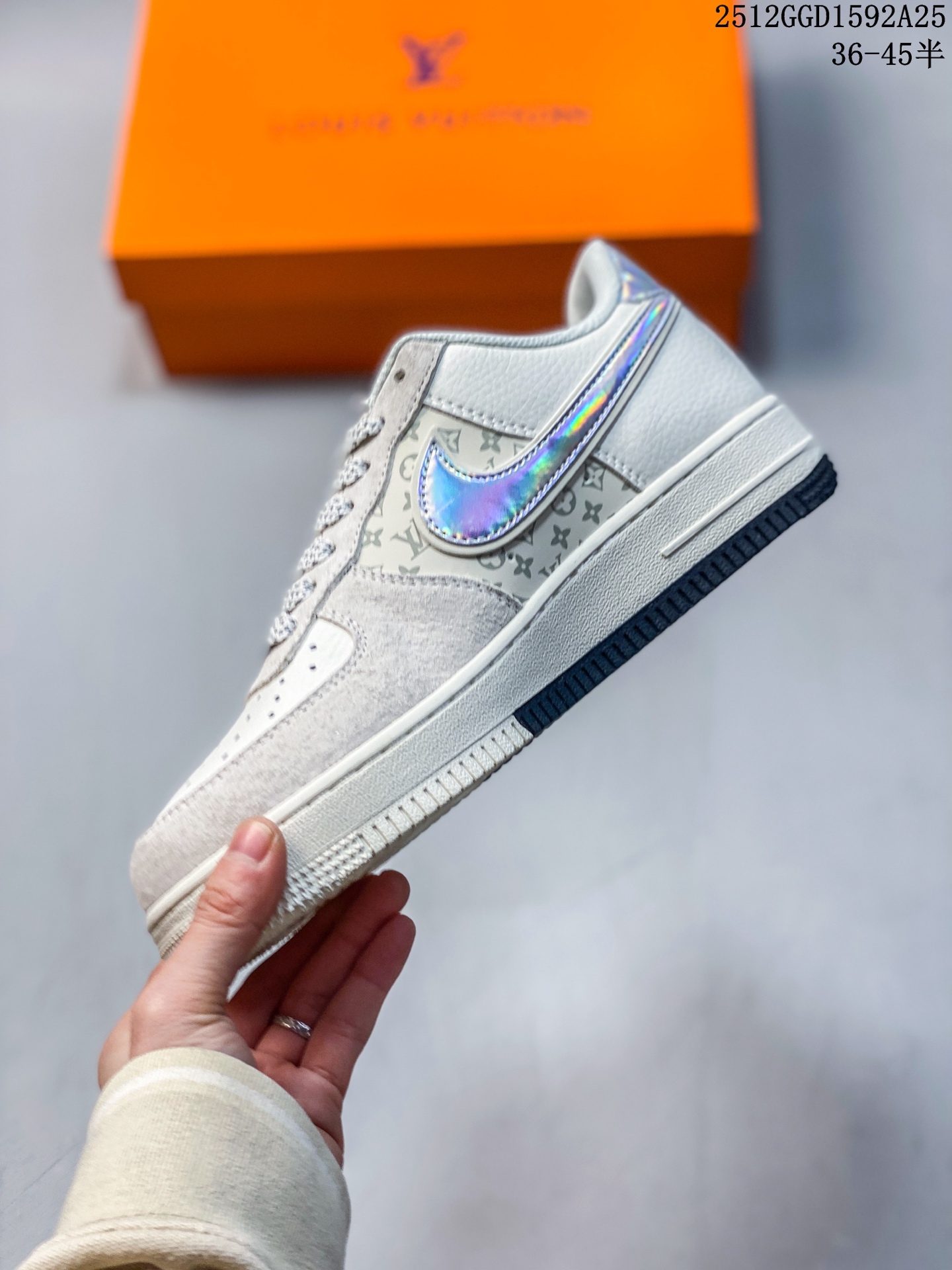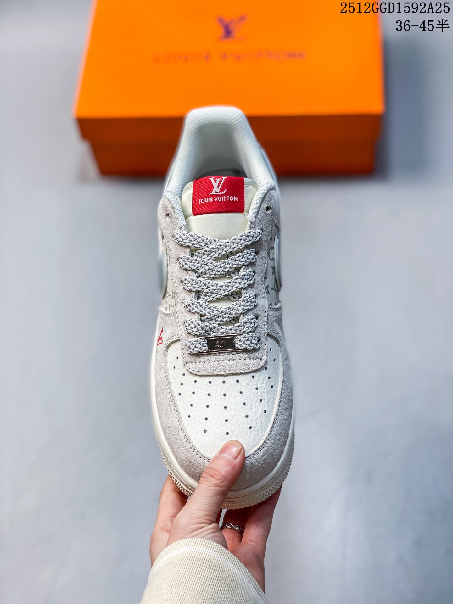 经典碰撞 奢潮新章 当Nike Air Force 1的街头基因遇上Louis Vuitton的高定奢韵 这双联名款球鞋便成了潮流与奢华的完美融合体 米白麂皮与压纹Monogram皮革拼接出细腻层次 镭射炫彩Swoosh Logo在光线下折射出幻彩光晕 红标LV字母与鞋侧 LOUIS VUITTON 字样形成视觉点睛 黑白撞色中底则延续了AF1的经典轮廓 每一处细节都揉合了街头的随性与高奢的精致 既是对经典鞋型的全新演绎 也是奢潮跨界的标志性作品 上脚即刻成为造型焦点 让你在潮流棋局中站稳独特步调