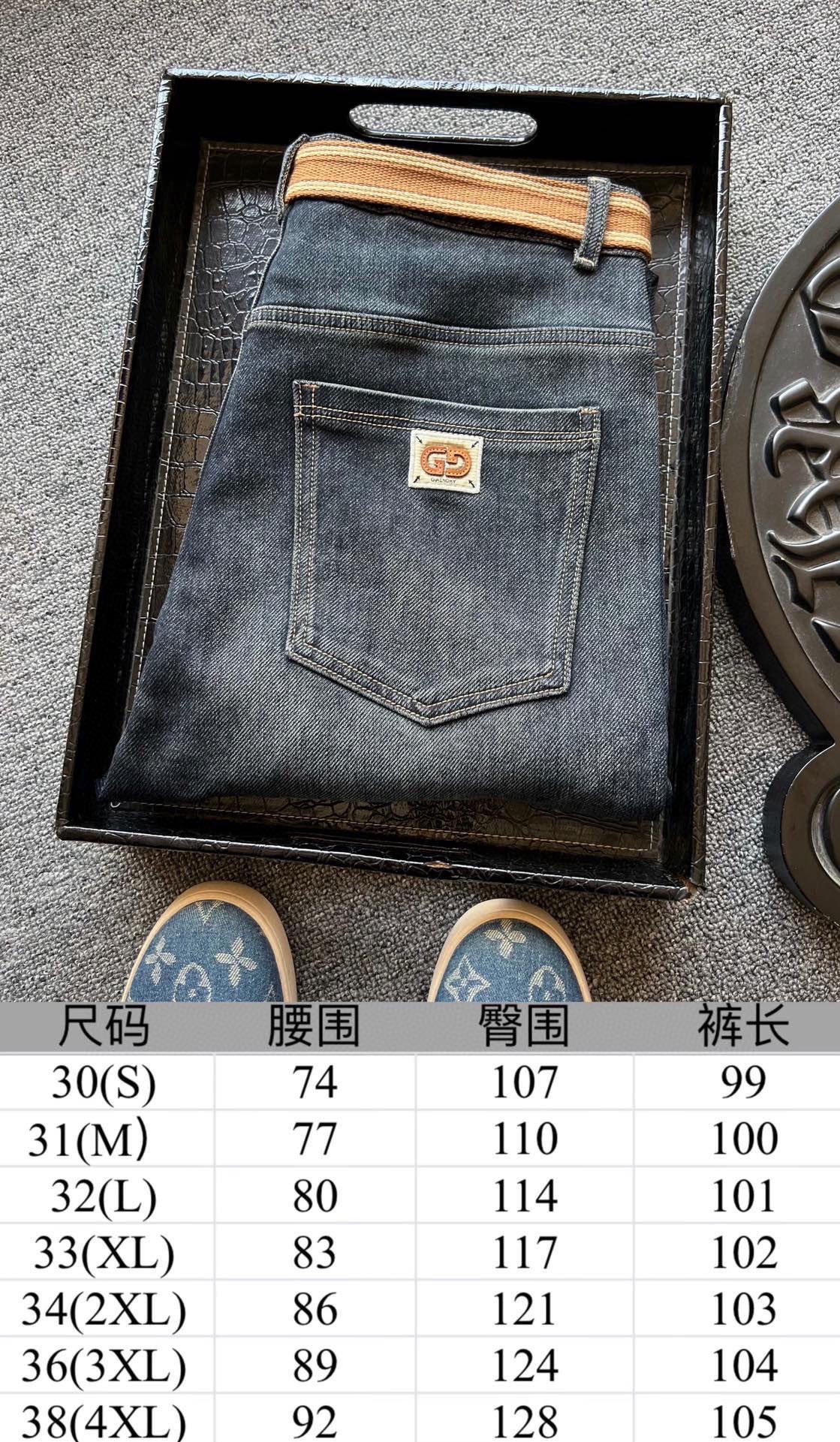 优势供货 特价清仓收尾福利 专柜顶级赠送腰带 库存 32 33 34 35 人气爆款 Gucci 古驰专柜新品GG款宽松牛仔裤 恒隆在售万元级 款号 6809 GG家今年采购优级新疆长绒棉面料 经过纯天然碱性苏打水水洗工艺 整条裤子拿到手视觉效果十分好看 极强的棉质亲肤感 3D立体裁剪宽松版型 上身高级精致感 细节细节再细节 GUCCI家新品双G皮标阔版牛仔裤 多层次立体视觉效果 极为精致百搭新风向 裤前小口袋以及裤后都做了皮标高级棕GG贴布绣标识 简约又精致 每一条都有赠送原厂配套腰带 全球首发新品 国内外专柜热销爆款牛仔裤 不管是自穿还是馈赠都是王者级之选 无压力驾驭任何大型商务场合以及高端私人会所 强烈推荐入手 尺码 30 38