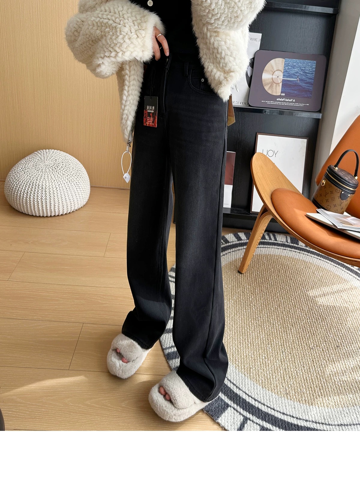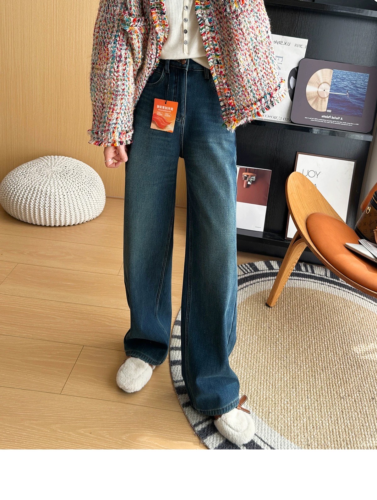150180986 - 版型贼好 冬季超暖奥利绒窄版直筒裤女 四面弹加厚绒阔腿牛仔裤 393596