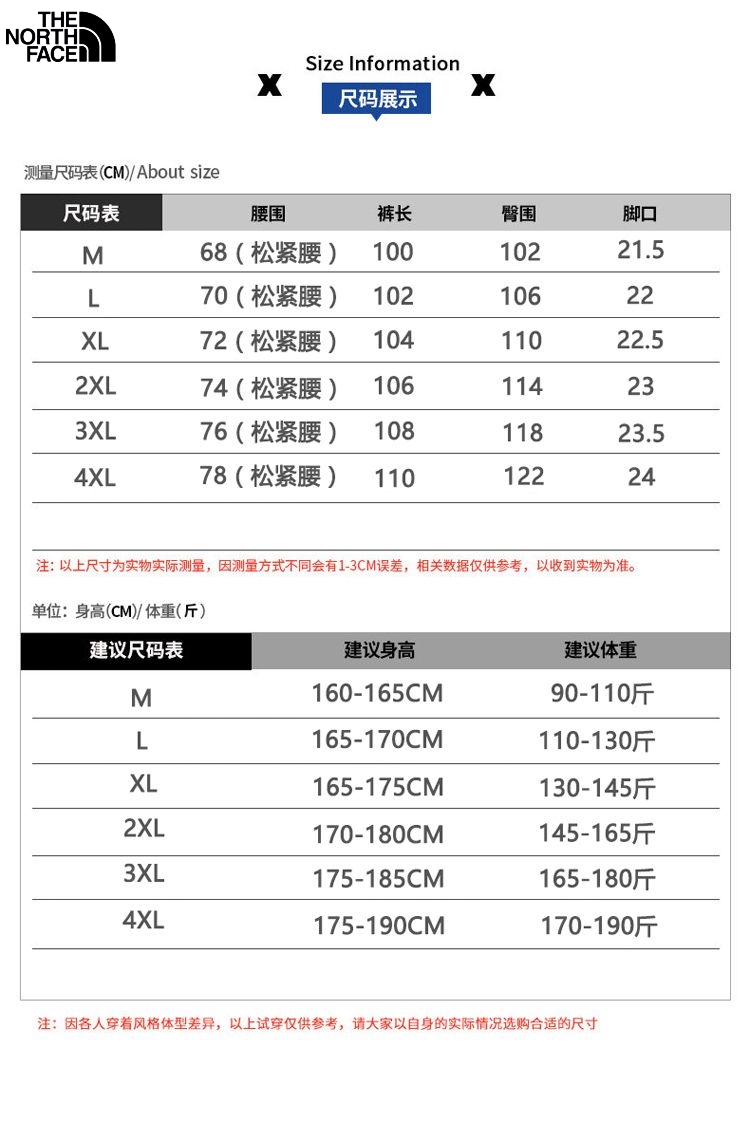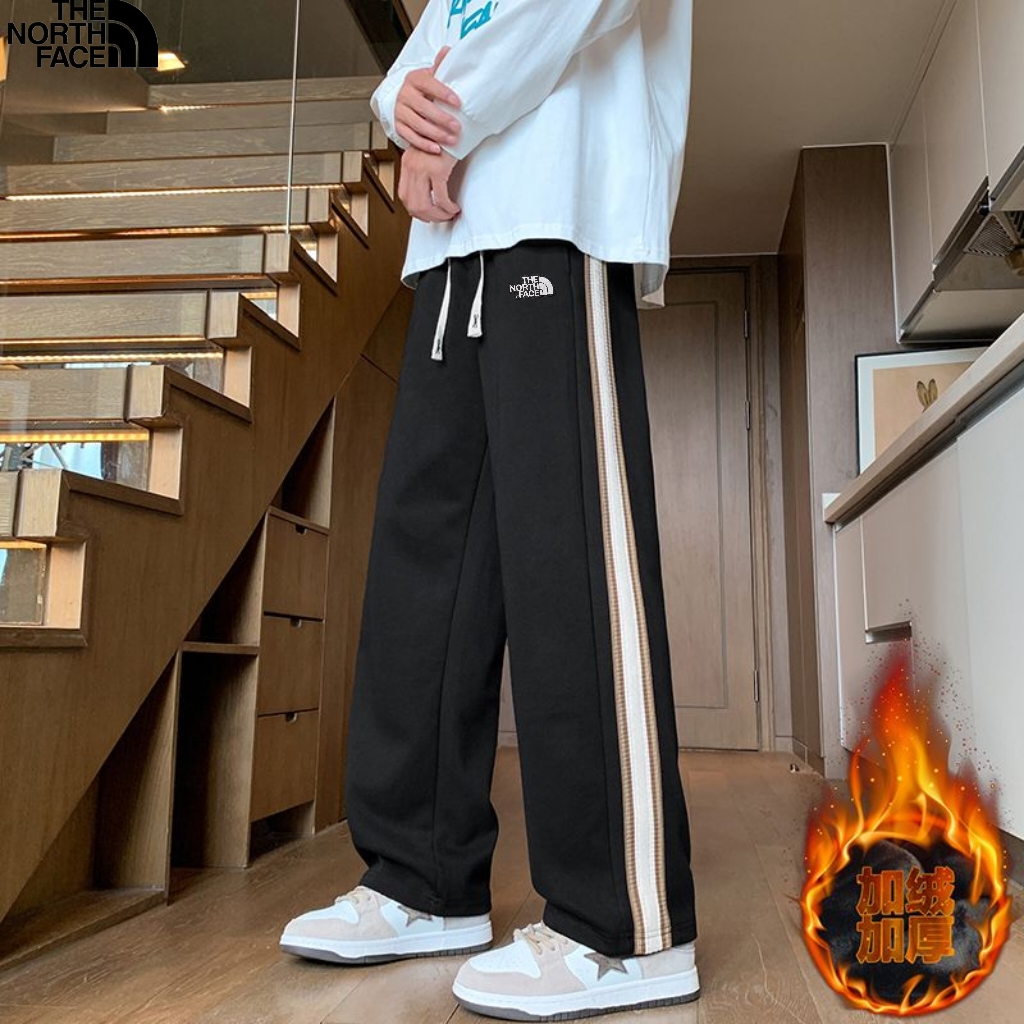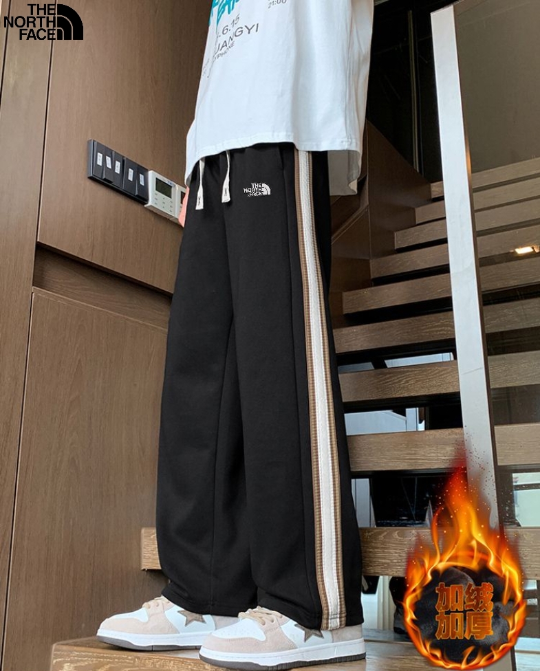 北面The North Face冬季新款 男女同款松紧腰侧边织带拼接百搭加绒加厚华棉卫裤 男士直筒裤 加厚休闲裤长裤