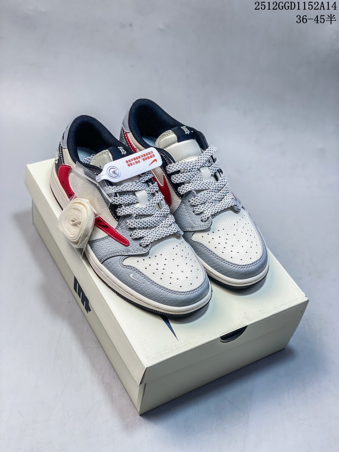 Travis Scott x Fragment Design x Jordan Air Jordan 1 Low OG SP NIKE联名 白红黑色 多方联名合作融合了Travi翻毛蓝勾 Scott 独特的音乐风格 藤原浩个性的设计风格以及Jordan品牌的经典元素 使其成为一双具有独特身份和价值的鞋子 清新而立体的外观加上联名标识更突出了其独特身份 这种配色方案显示出活力和时尚感 在视觉上引人注目 鞋身的质感和细腻的细节处理使其显得高端而格调十足 这款 倒钩 联名是设计与创意完美结合 融合多方的个性风格是一款备受瞩目的潮流鞋款 低帮休闲板鞋 定制鞋盒 大厂纯原品质出货 超高清洁度 皮料切割干净无任何毛边 细节完美 货号 HS1239 005 Size 36 36 5 37 5 38 38 5 39 40 40 5 41 42 42 5 43 44 44 5 45