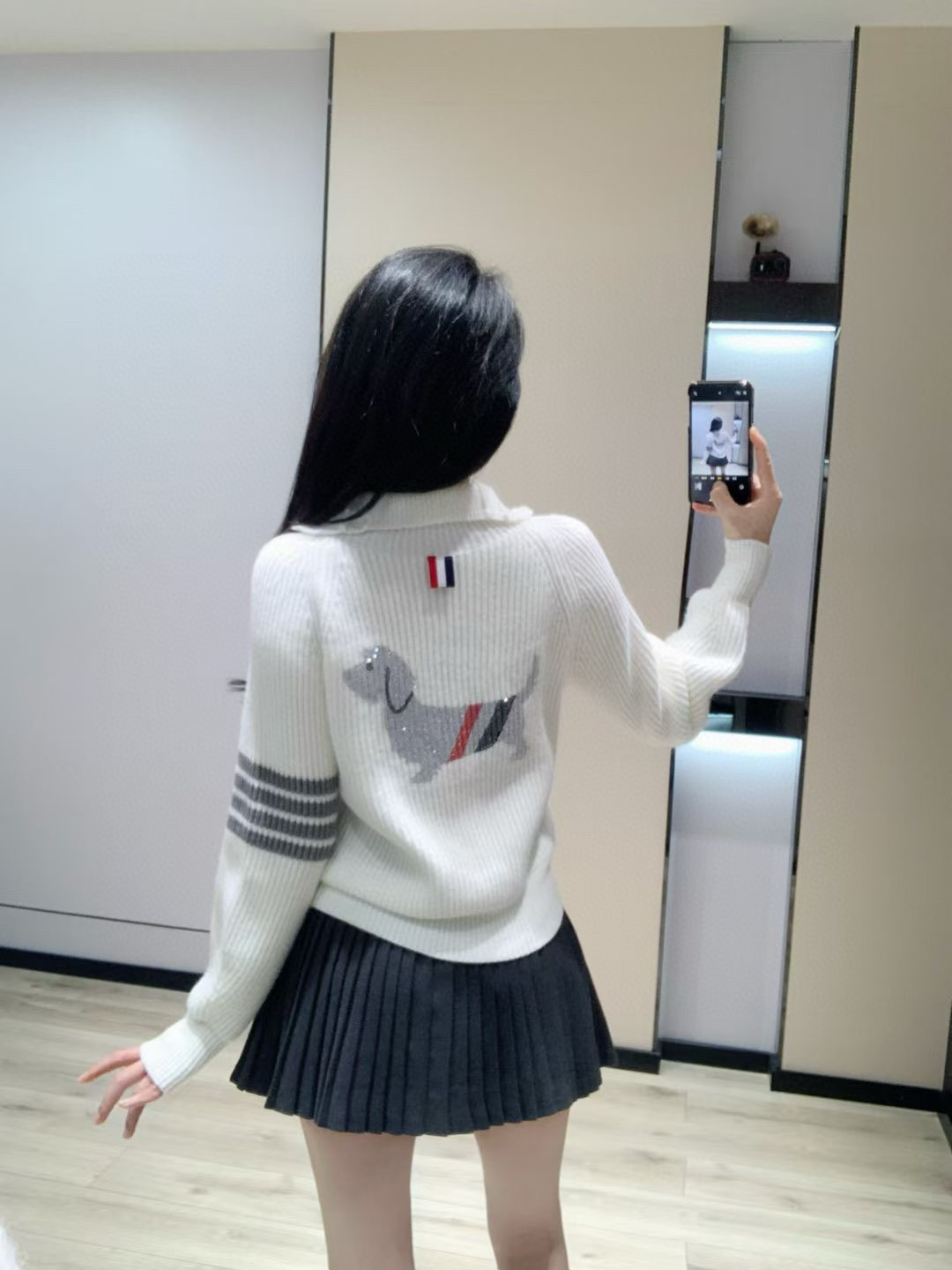 Thom Browne TB前后小狗烫钻左袖四条杠提花三色织 355121
