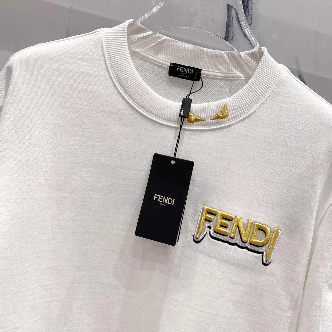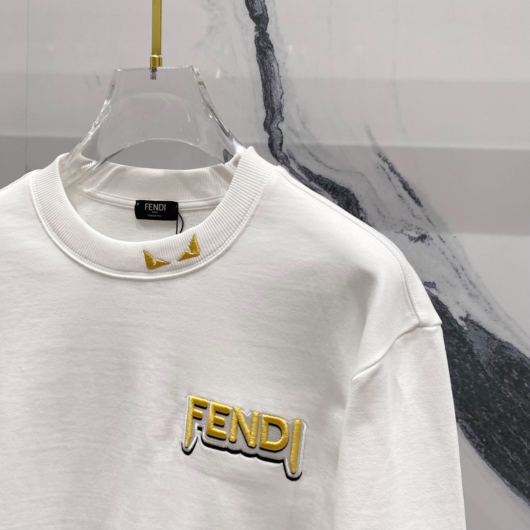 顶级最高版本 fendi 芬迪 FF 经典刺绣字母logo圆领卫衣