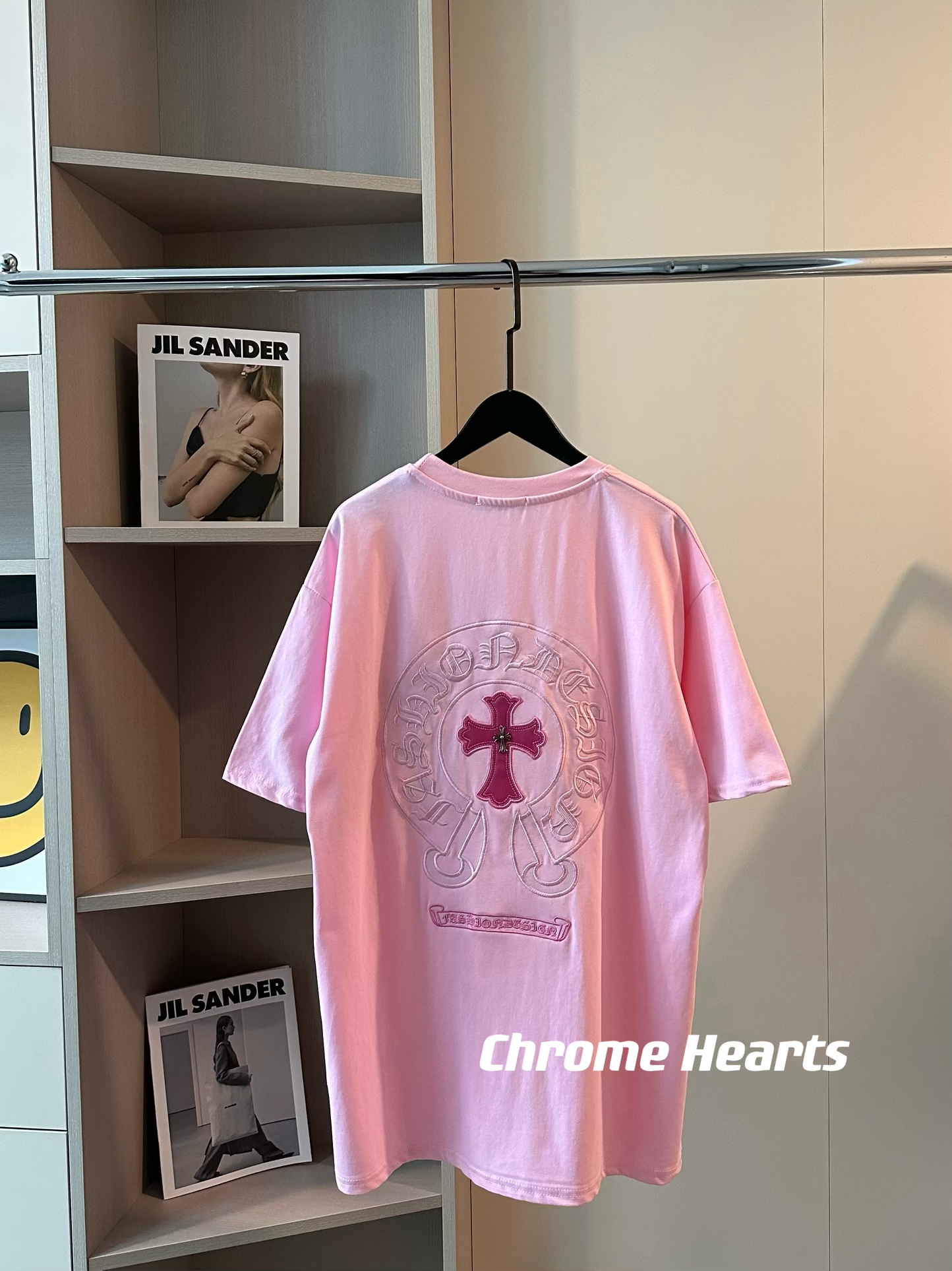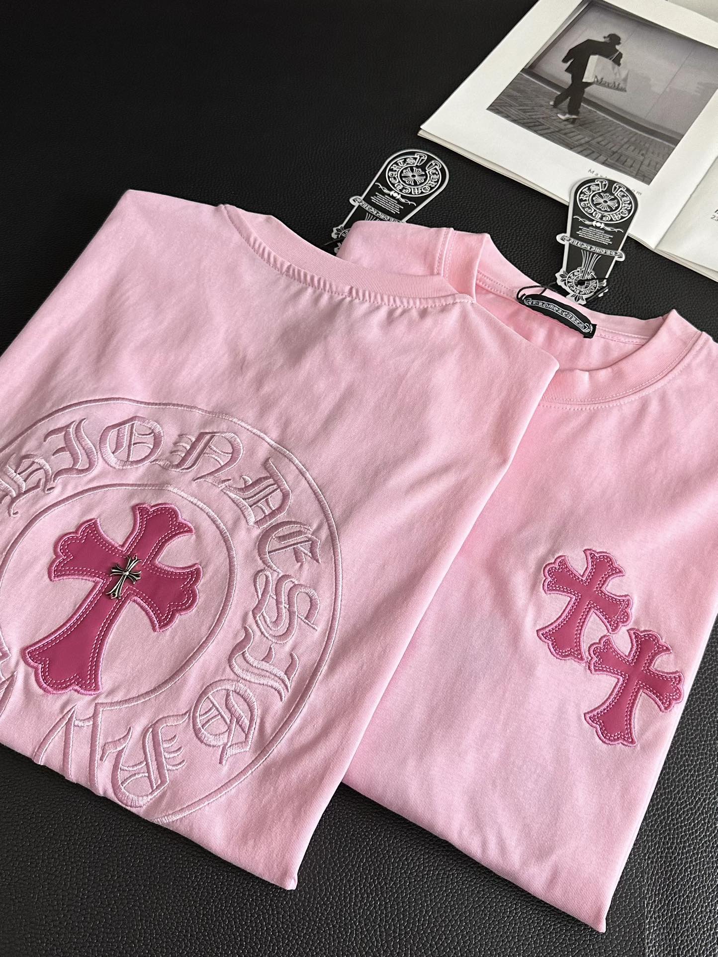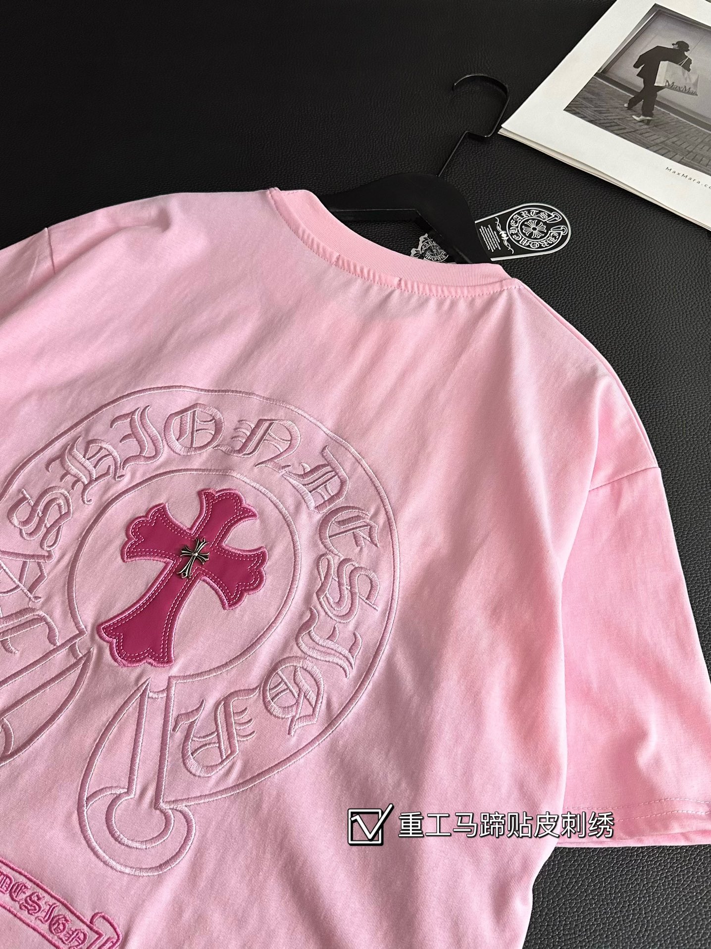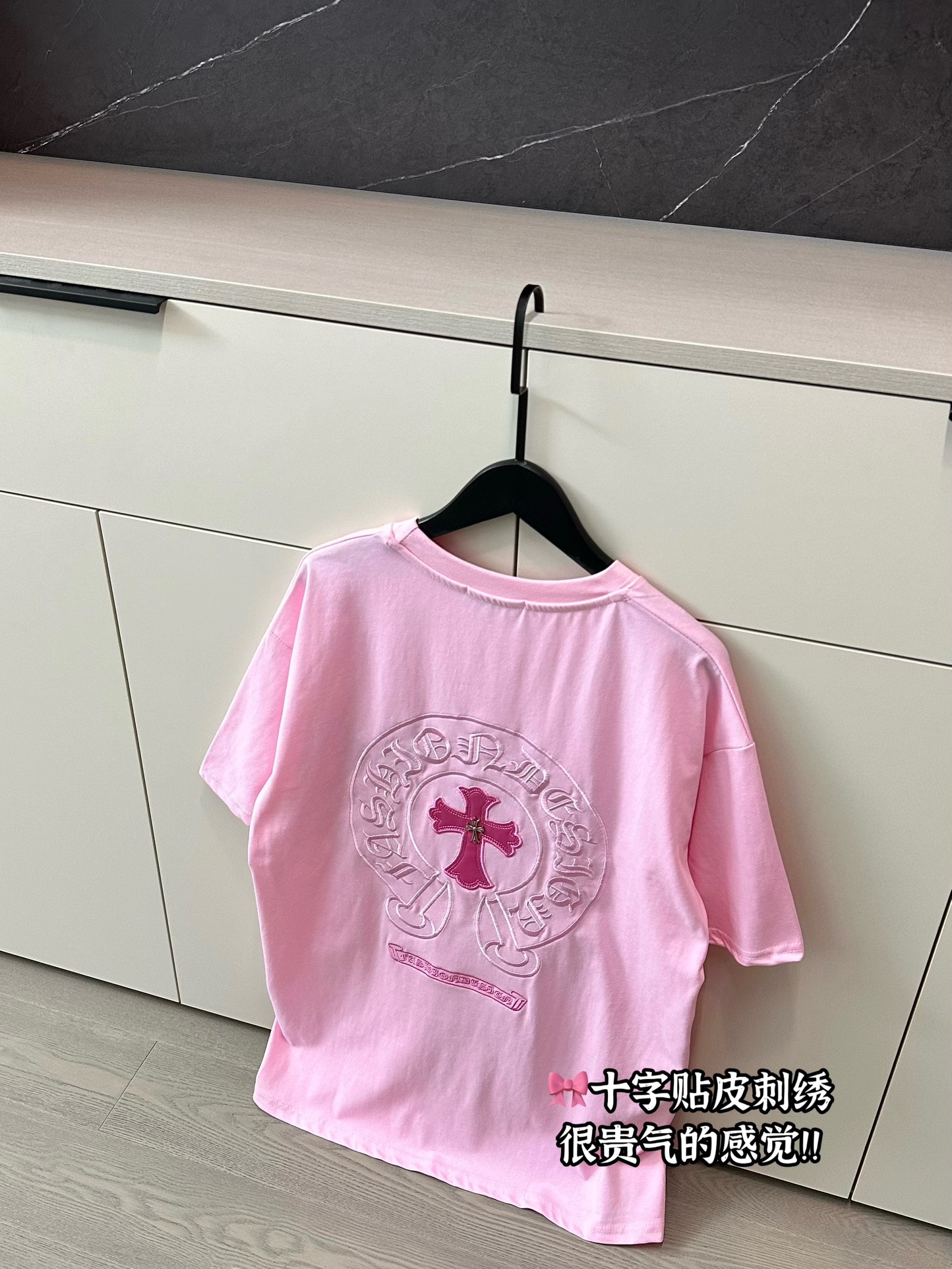 Chrome Hearts克罗心新款皮标贴布刺绣蜜桃粉短袖