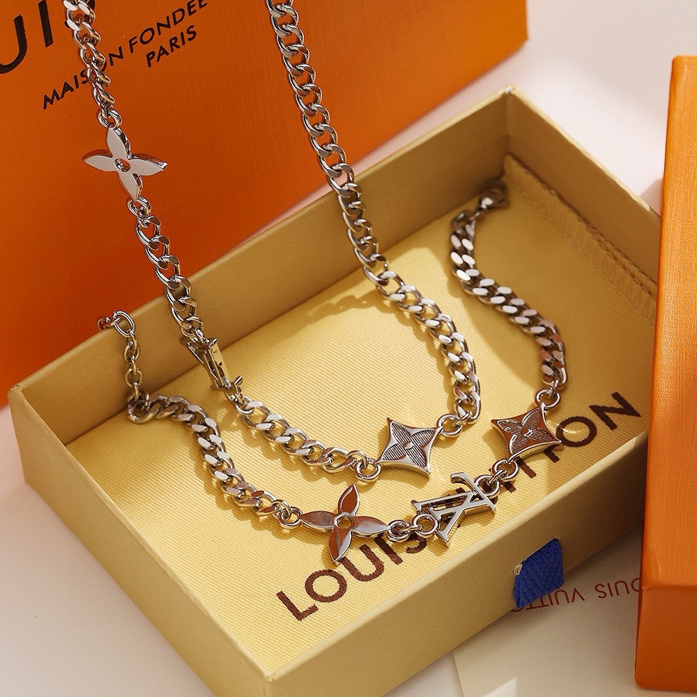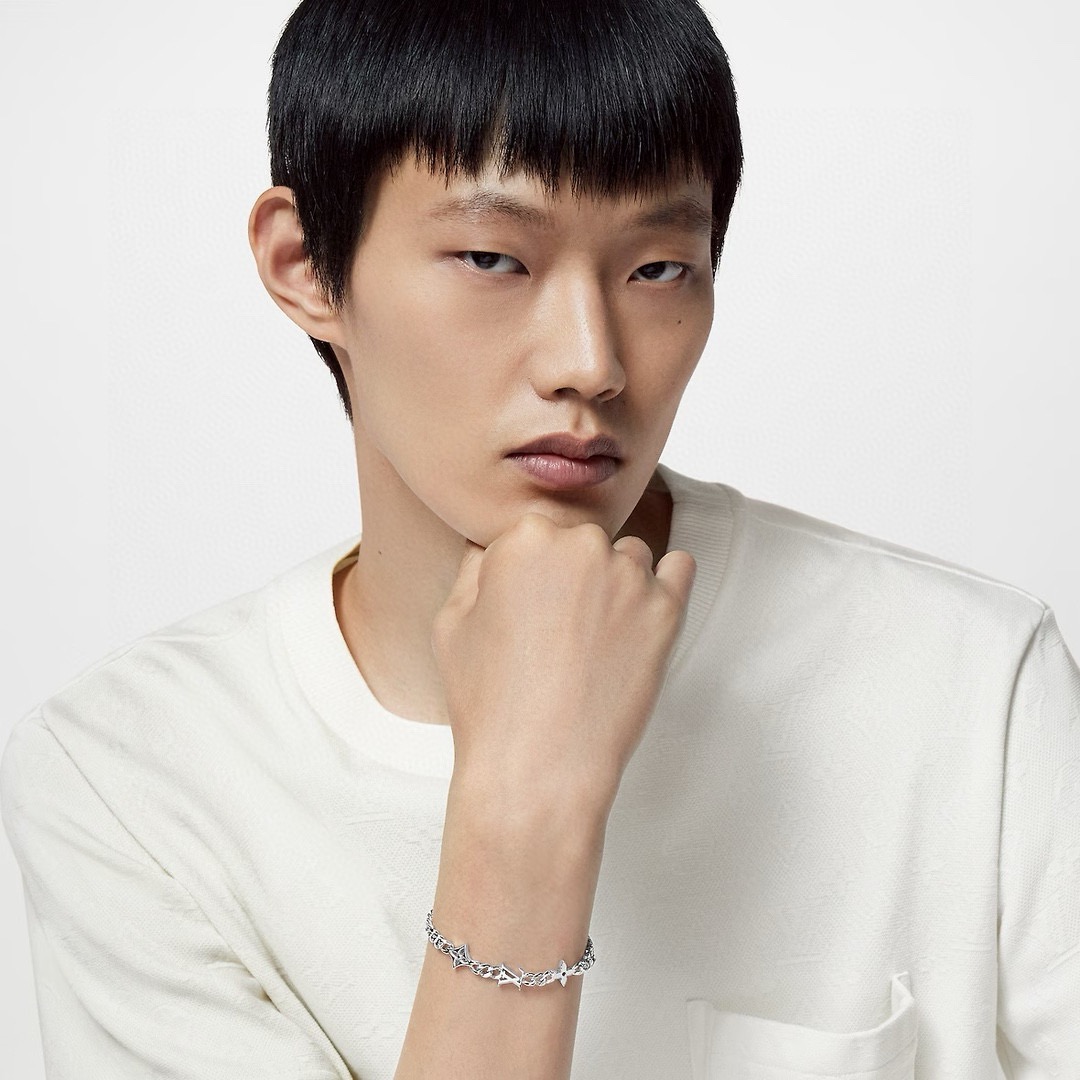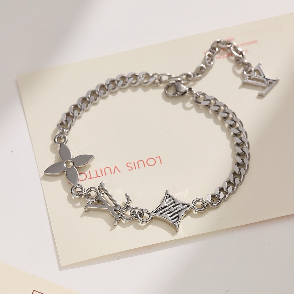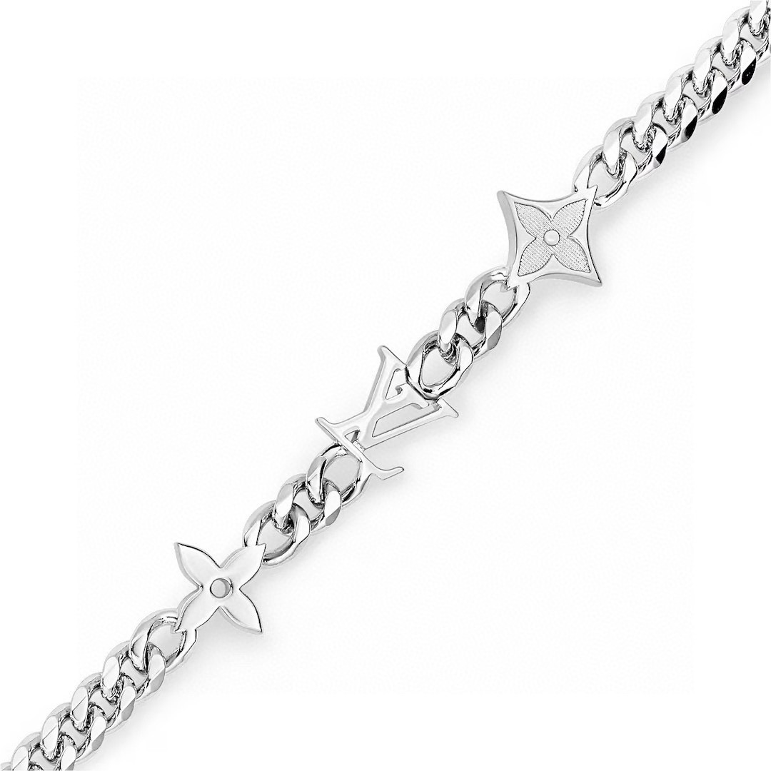 LV路易威登新三花银手链 配全套包装 MNG Row 手链将 LV 标识和 Monogram 图案融入可调节抛光金属链条 以工致铭纹钩扣完善整体 俊朗洒脱气息可轻松点亮各式造型