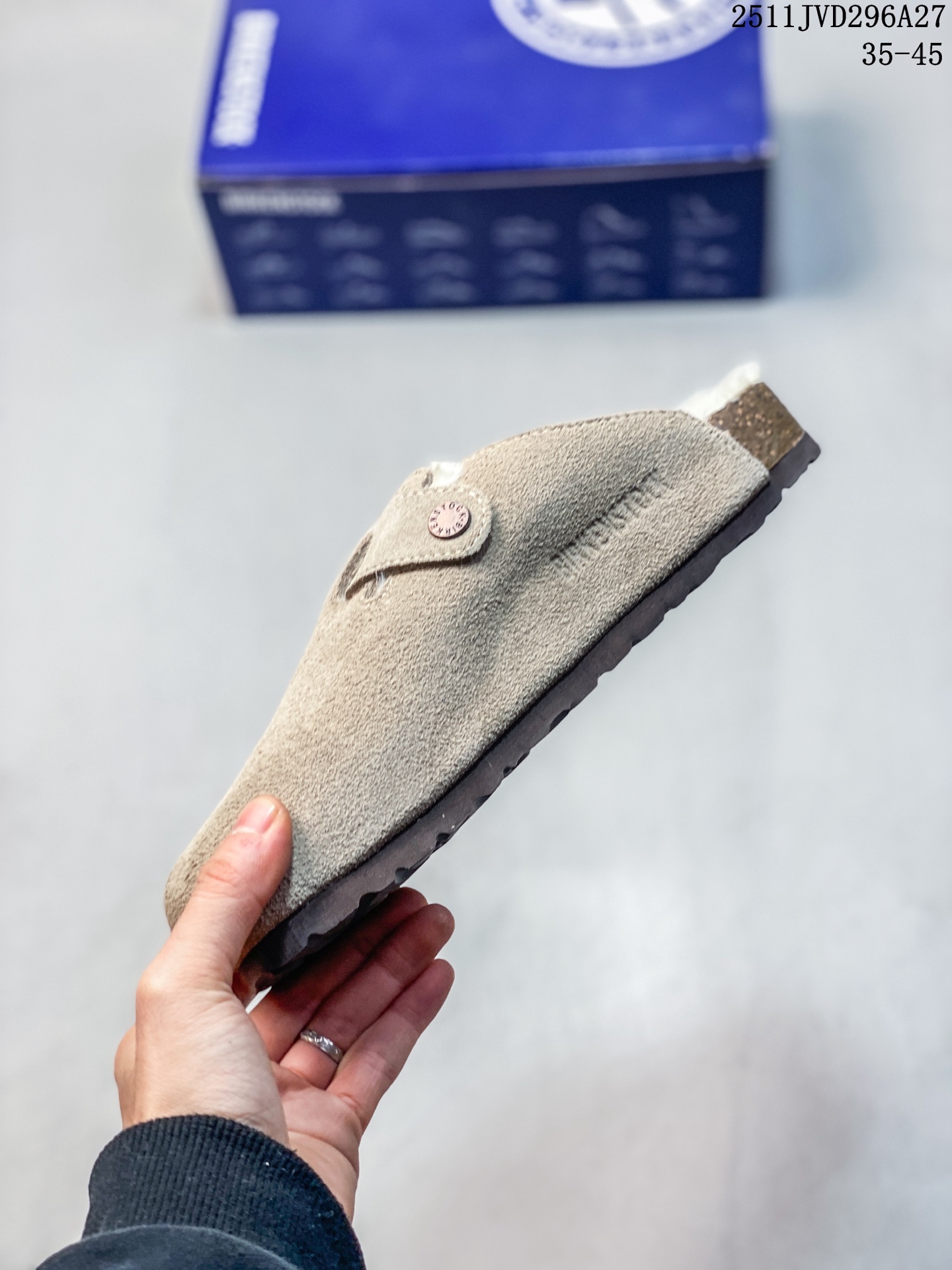 Birkenstock Boston VL 勃肯绒面金属针扣软木底包头拖鞋 牛皮绒面革质地柔软 搭配可调节鞋扣提升穿着舒适度 人体工学设计分散脚部压力 保护脚踝 软木乳胶鞋床具有一定的收缩性 长时间穿着后能贴合脚型 EVA鞋底回弹性和抗张性力高 具有良好的防震 缓冲性 四季皆宜 柔软的鞋床采用额外的泡沫缓冲层 提供额外的舒适感和全天支撑 全网独家首发 源于德国的严谨工艺 牛巴戎面 中层松木 EVA 三层组合大底 优质牛皮面料五金扣 出口订单