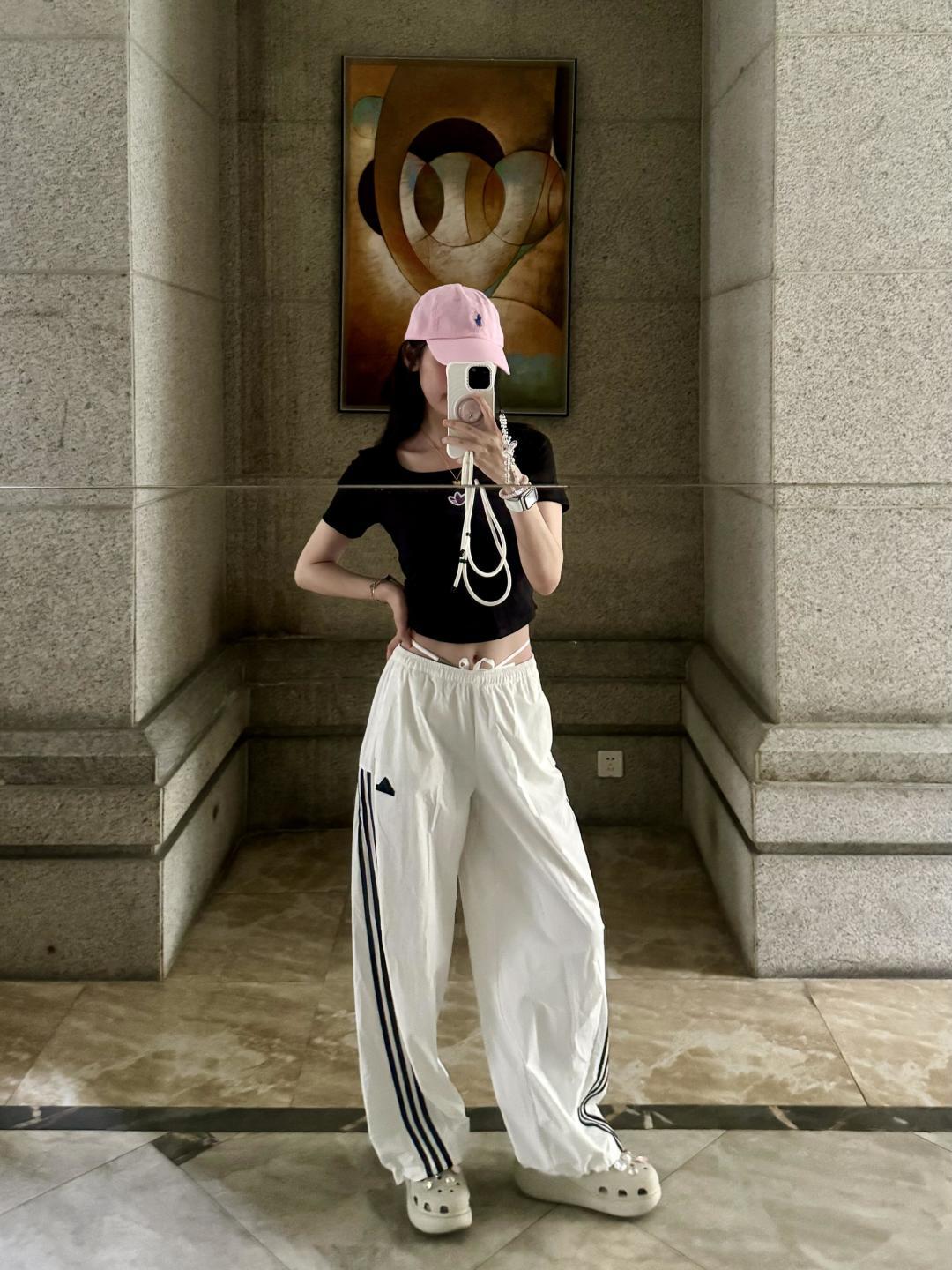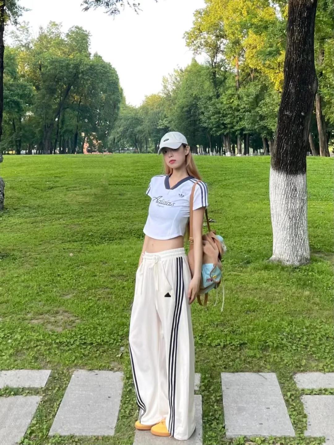 女款最新三色 请认准我们实拍开团 1569 谁还没有一件adidas三杠扭扭三色速干长裤呢 当运动基因邂逅松弛美学 便有了这场关于 舒适秩序 的穿搭实验