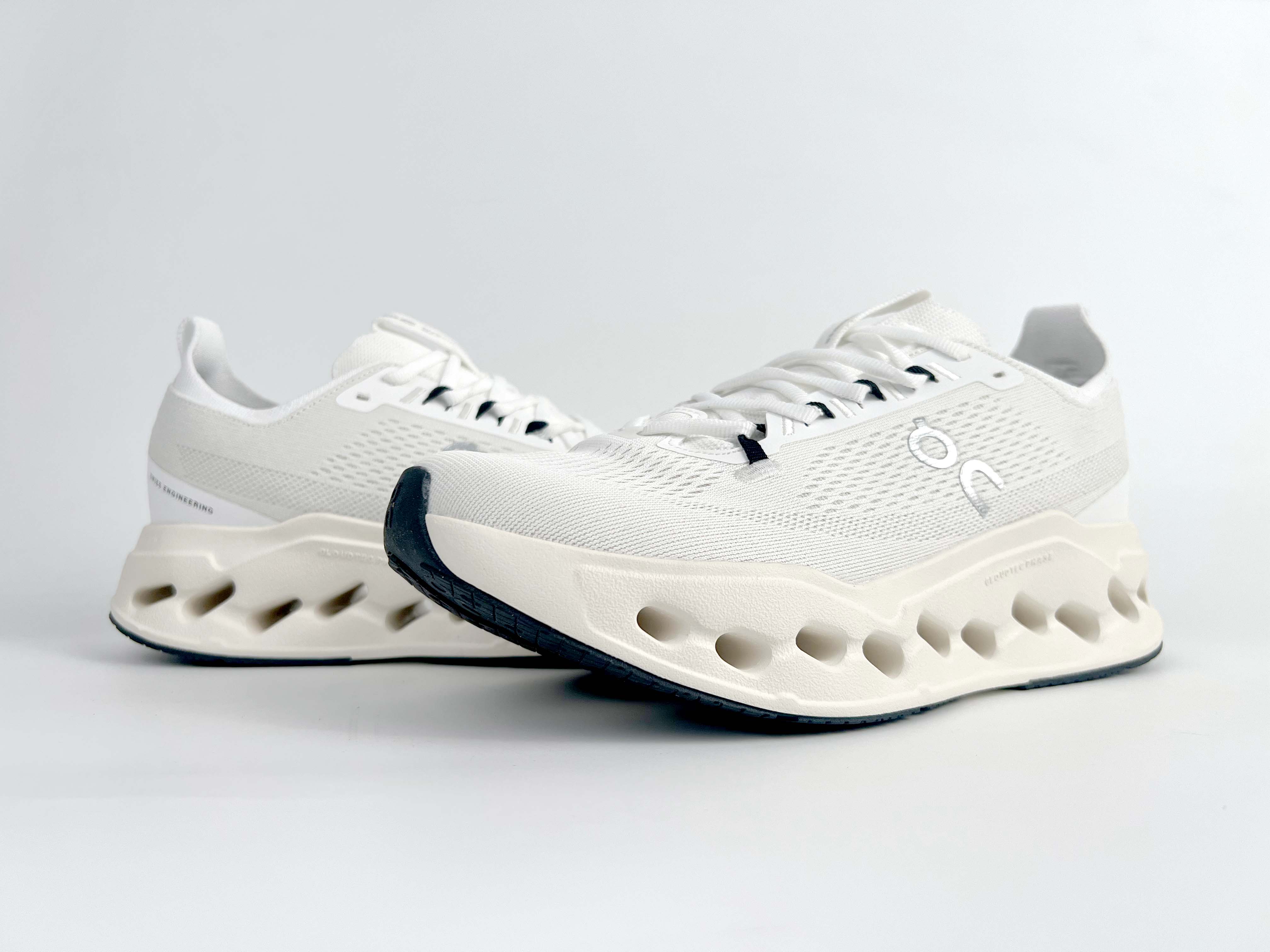 Cloudsurfer Max鞋身外观的设计灵感源于 On 昂跑的专业竞赛鞋 鞋面采用工程编织材料打造 提供无缝贴合的穿着体验 轻盈透气的鞋面贴合脚部 确保舒适的穿着感与稳定的锁定效果 鞋底经过升级的橡胶垫片在干湿条件下均提供高抓地力和耐用性