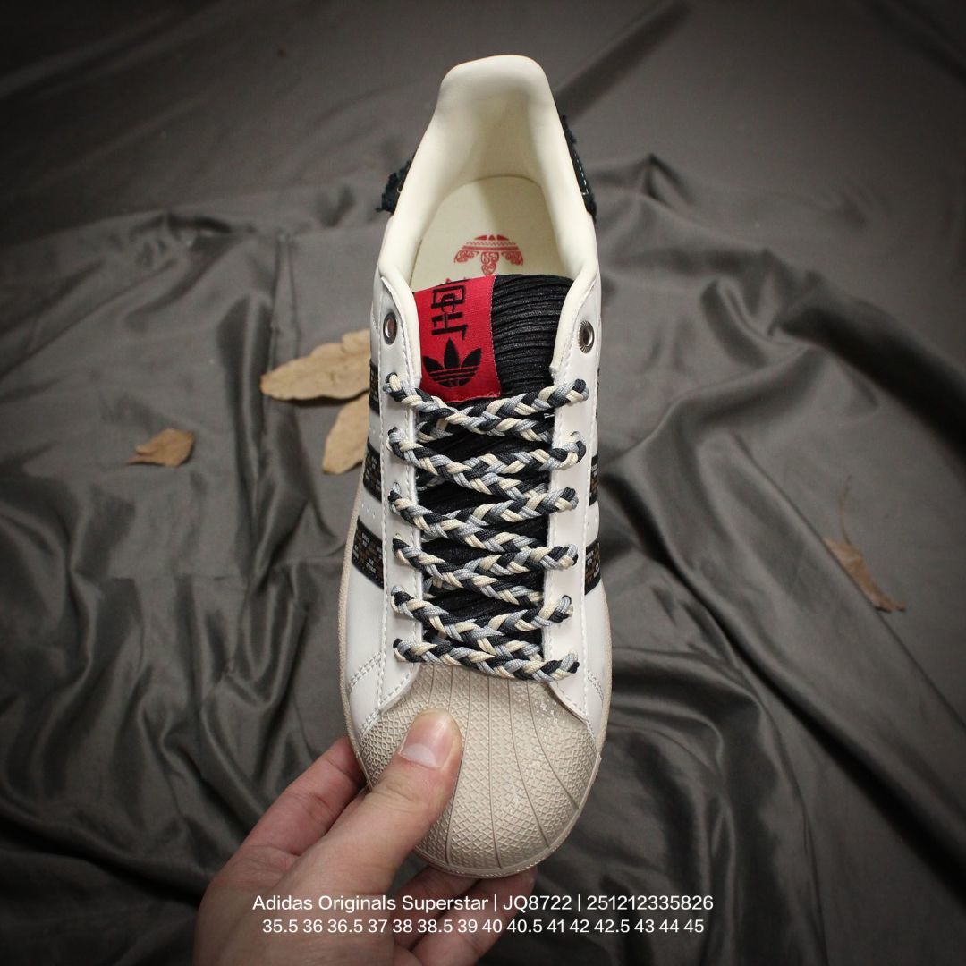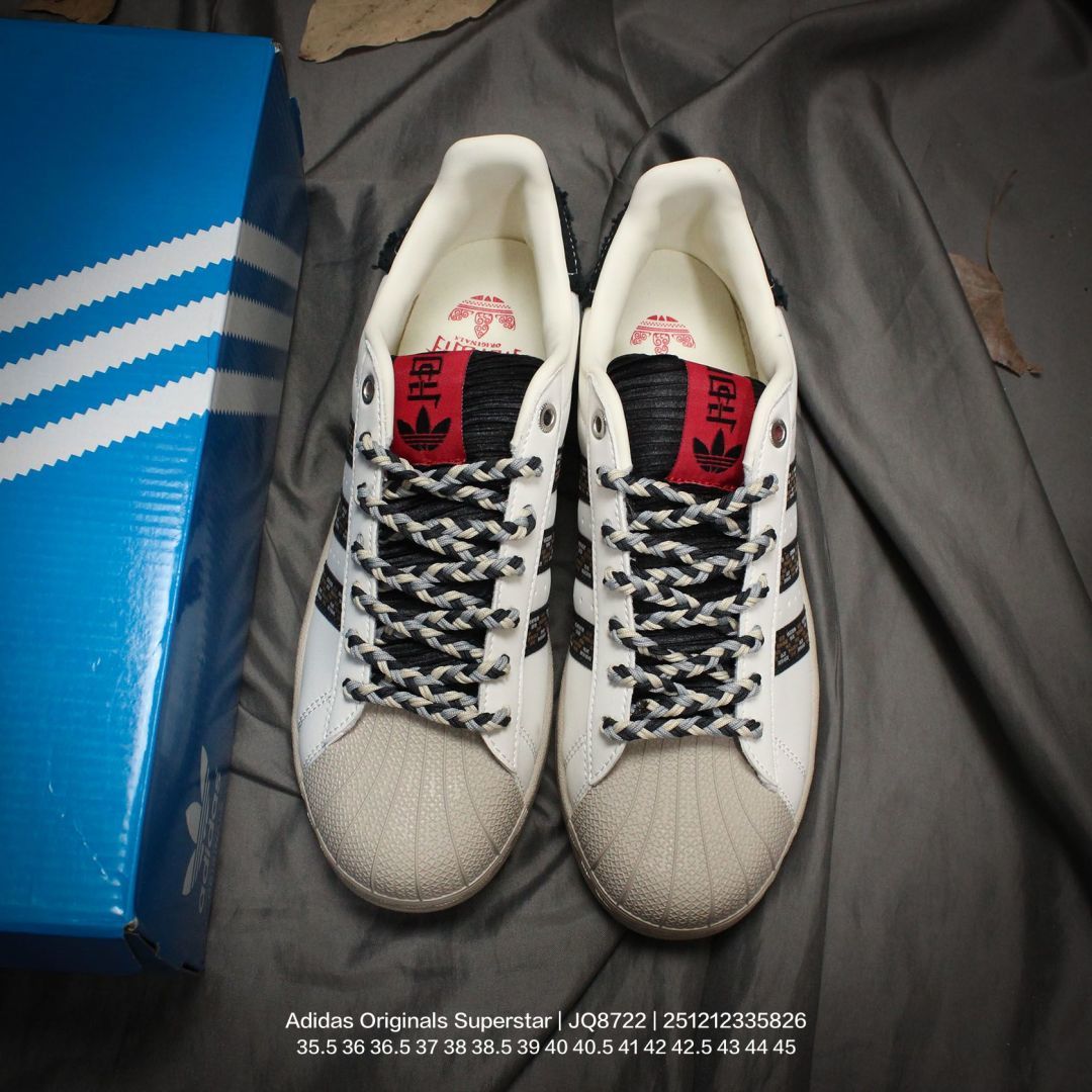 Adidas 阿迪达斯 男女鞋真标半码制 升级原楦原纸版开发 采用牛剖革鞋面材质 2020改良全包围鞋垫 正确2020版鞋底模具及扇贝头盖片阿迪达斯 三叶草Adidas Originals Superstar II 经典贝壳头系列低帮百搭休闲运动板鞋 JQ8722