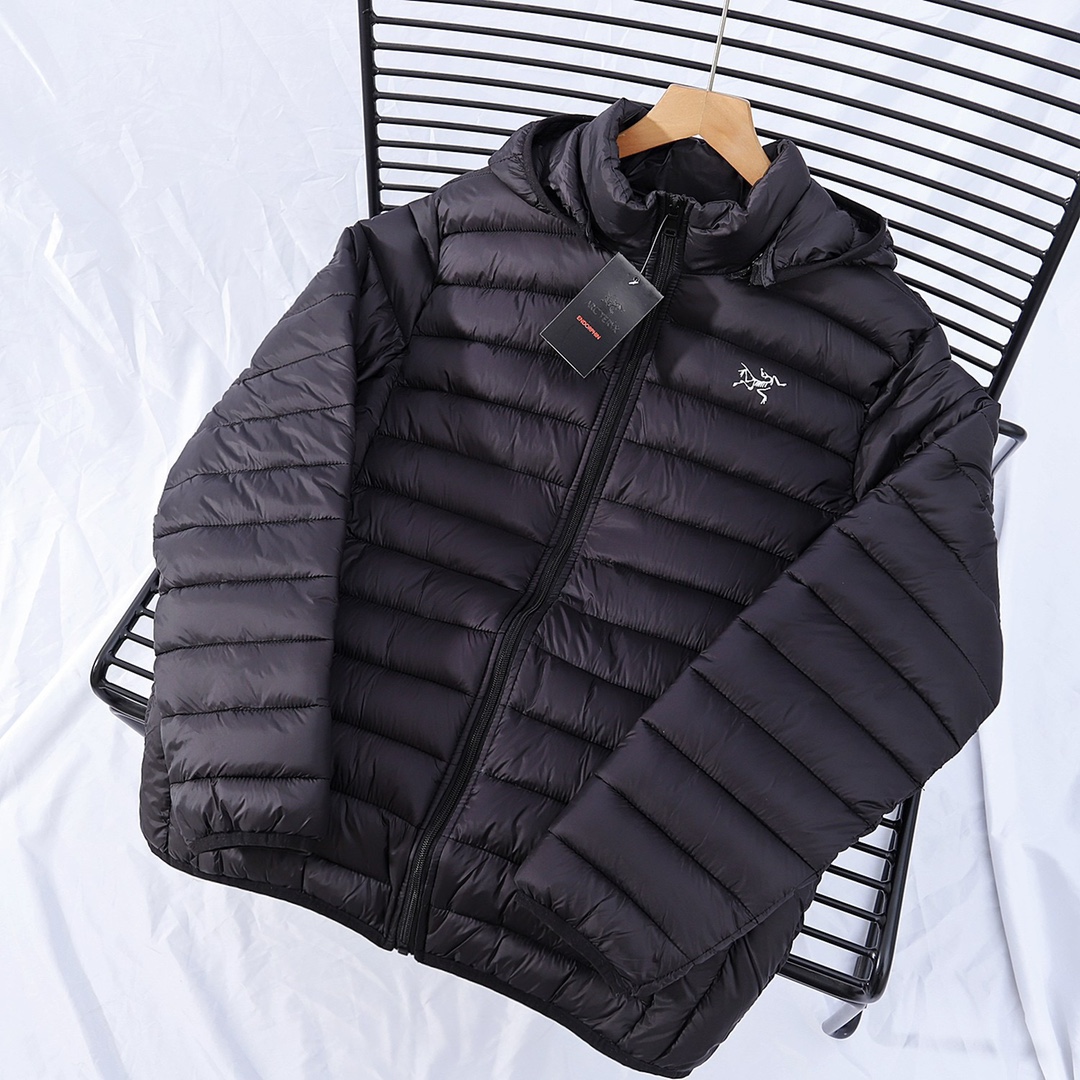 轻薄羽绒服 适宜当季温度 真实采用鸭绒填充 原包装吊牌始祖鸟23秋冬新款男士时尚休闲可脱卸连帽轻薄羽绒服休闲运动系列