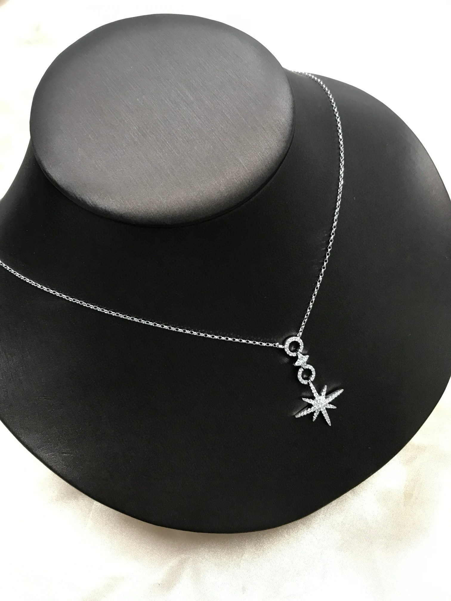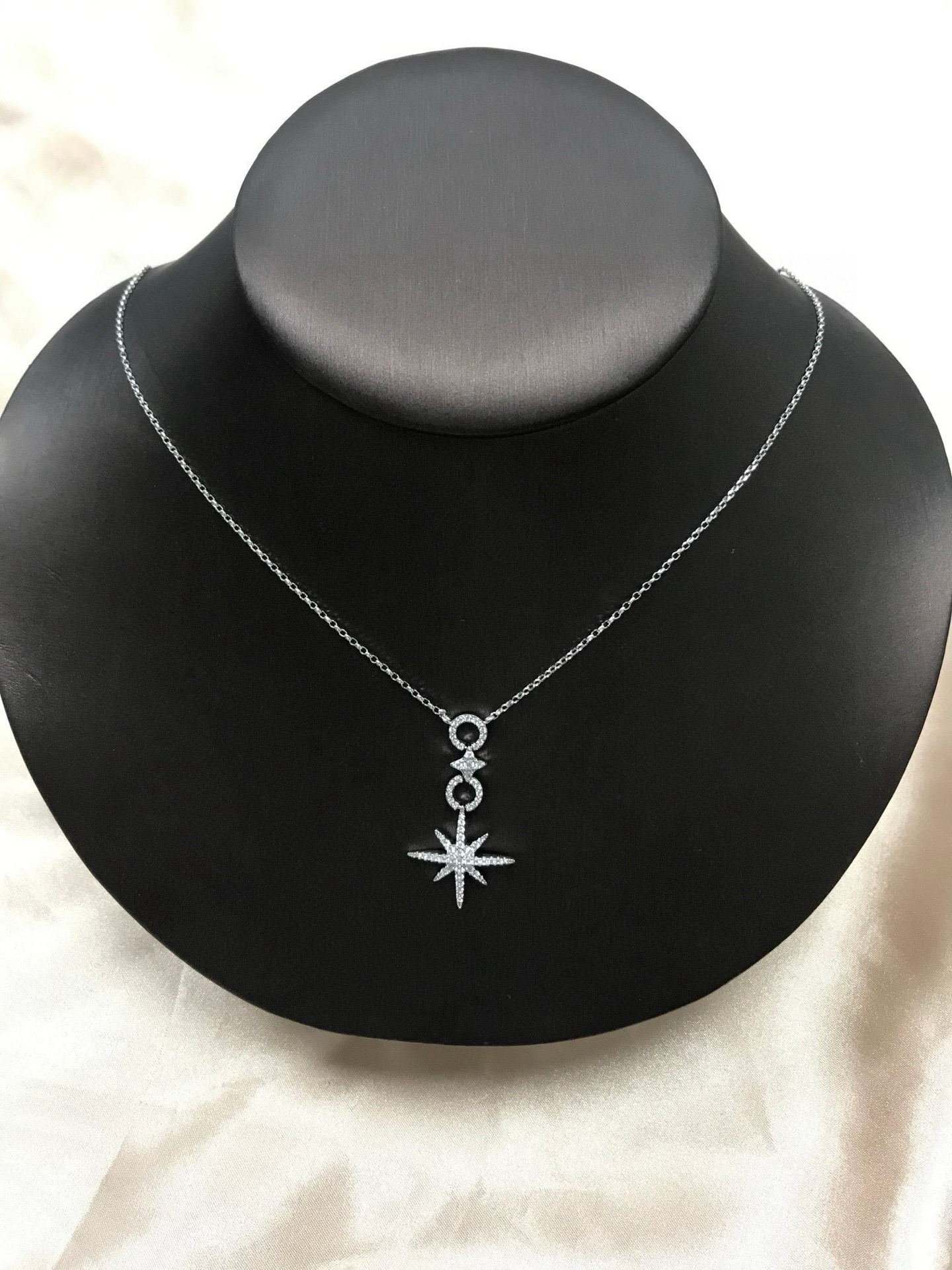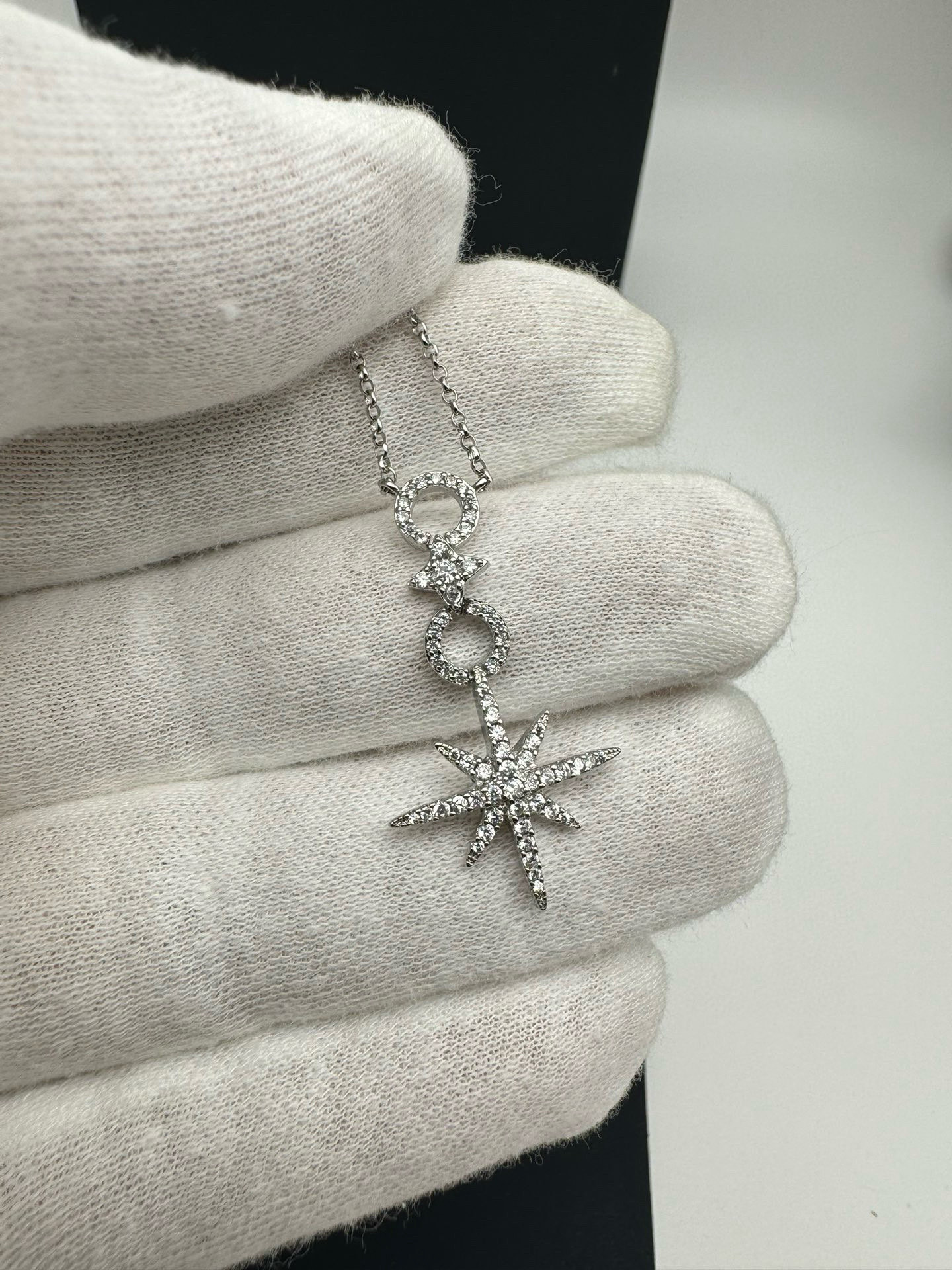 代工厂代购级 经典六芒星搭配 唐嫣 志林姐姐都在戴 个性有气质 材质925纯银真空电镀18K白金 在电镀工艺上我们的品质绝对是大厂货源 光泽度上没有对比就没有伤害 顶级施华洛世奇水钻 十分闪耀 做工精巧 在有光的地方很闪 有一种低调的奢华感 佩戴起来很显白