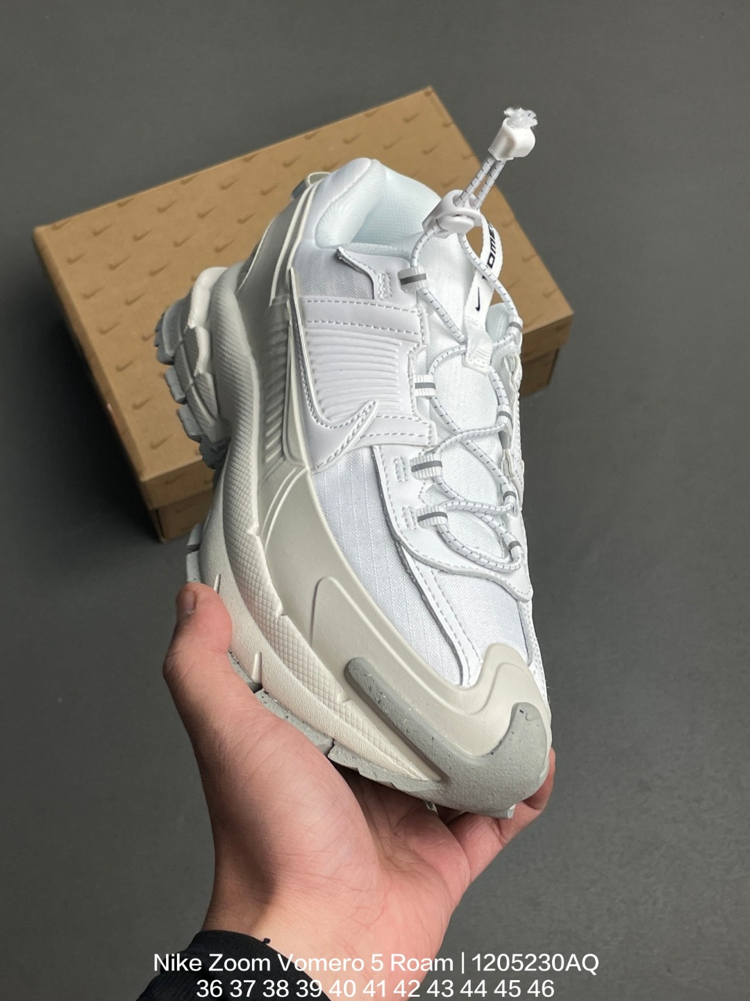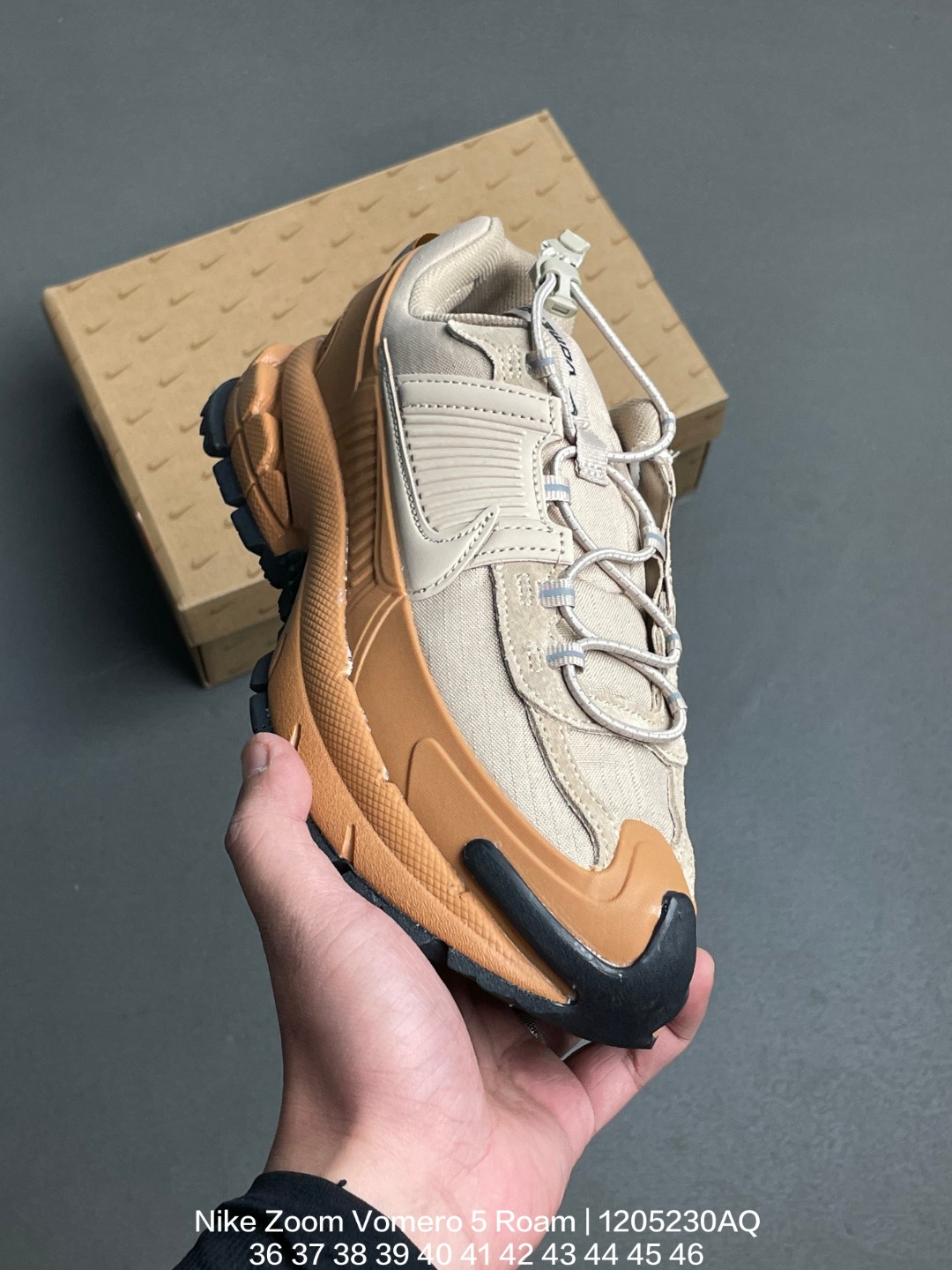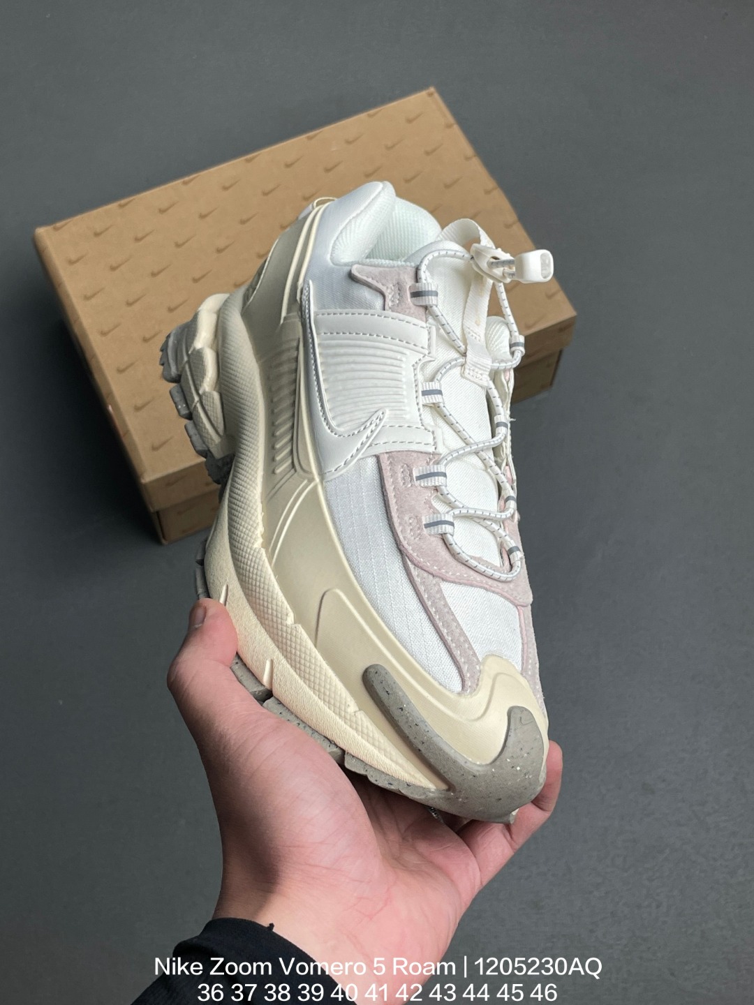 Nike 耐克 采用猪巴革饰片组合牛津布鞋面材质 升级正确防水台TPU加固 耐弯折热塑框架支撑鞋身 正确双层组织中底搭载EVA轻量缓震 外置防滑耐磨锯齿橡胶鞋底徒步装备版 全新耐克Nike Zoom Vomero 5 Roam Pale Ivory Light Khaki 佛莫罗5代徒步版系列经典复古增高厚底休闲运动慢跑鞋
