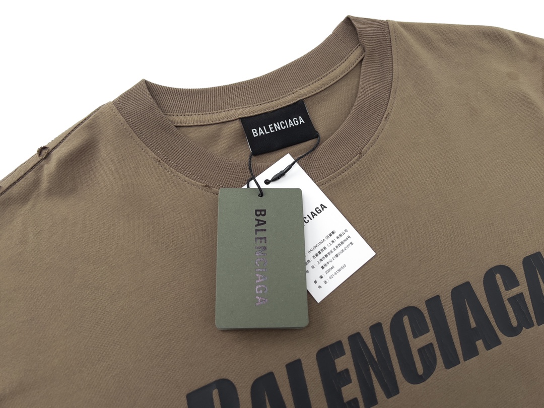 细节图 顶级版本 官网品质 BALENCI GA 巴黎 2023新款 经典字母LOGO印花做旧磨烂短袖T恤 砖柜同步 面料采用巴黎ZP定织定染全棉双纱紧密棉 克重260克 布面干净 布纹清晰 柔软舒适 螺纹釆用定染无色差 经典图案采用环保进口材料印花 精密印花网板 字母清晰 效果立体 还原砖柜 成衣多位手工磨烂做旧 巨别市场通货 欢迎对比 版型釆用OS宽松落肩版型 男女同款