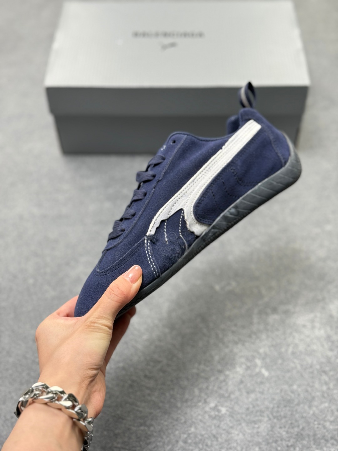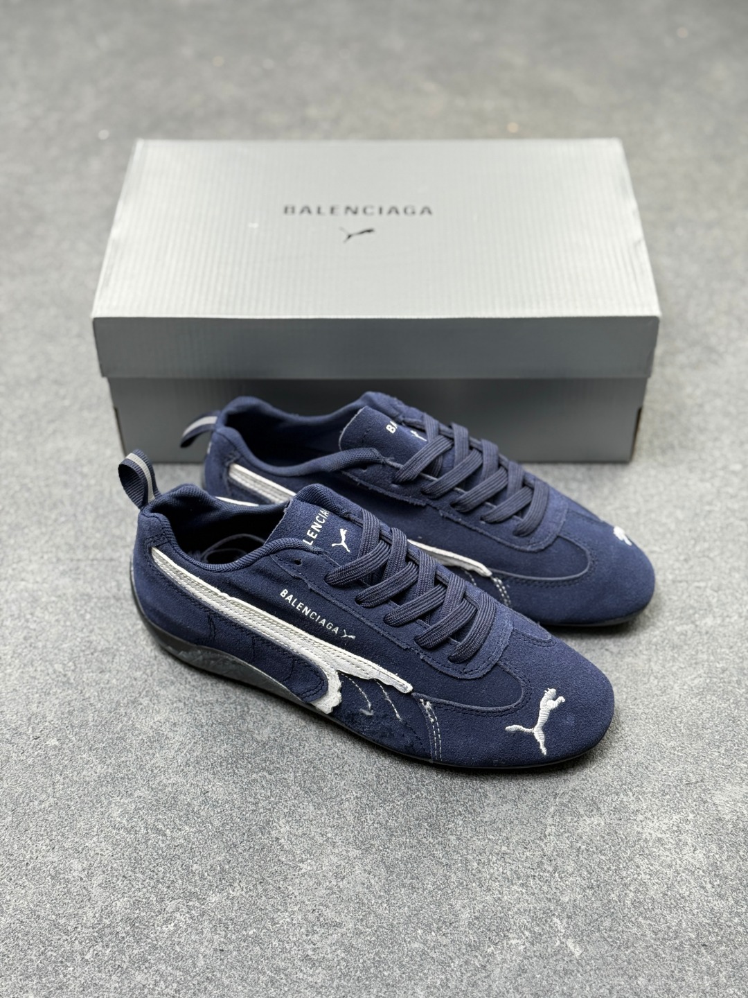PUMA 彪马 x Balenciaga巴黎世家 Speedcat 系列 薄底鞋 牛皮绒面革 圆头做旧磨损 低帮 生活休闲鞋 极速赛车系列 复古运动休闲跑鞋 充正版本 鞋面设计轻量透气 提供了舒适性和穿着感受 柔软内里材质 穿着更加舒适 橡胶鞋底提供持久的牵引力