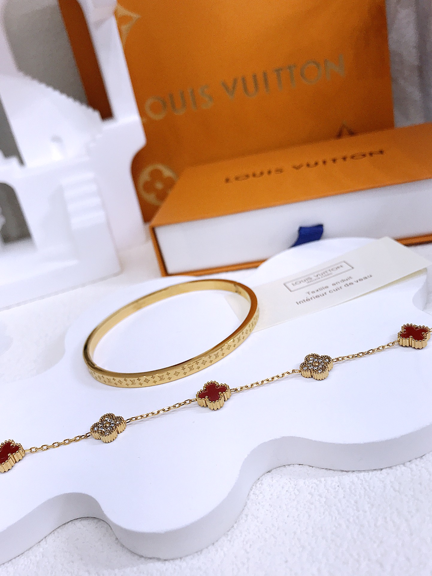 手镯叠戴手链 上手效果特别好看 红色非常显白 Lv也是另一种独特美 特别有质感 简直是爱不释手呀