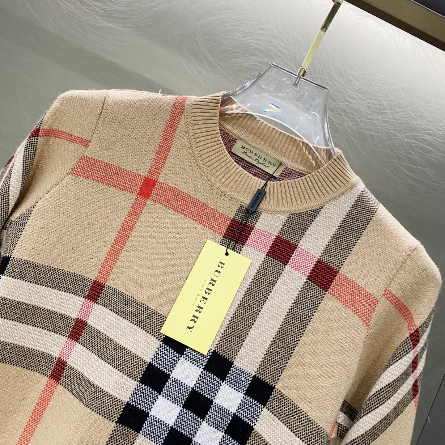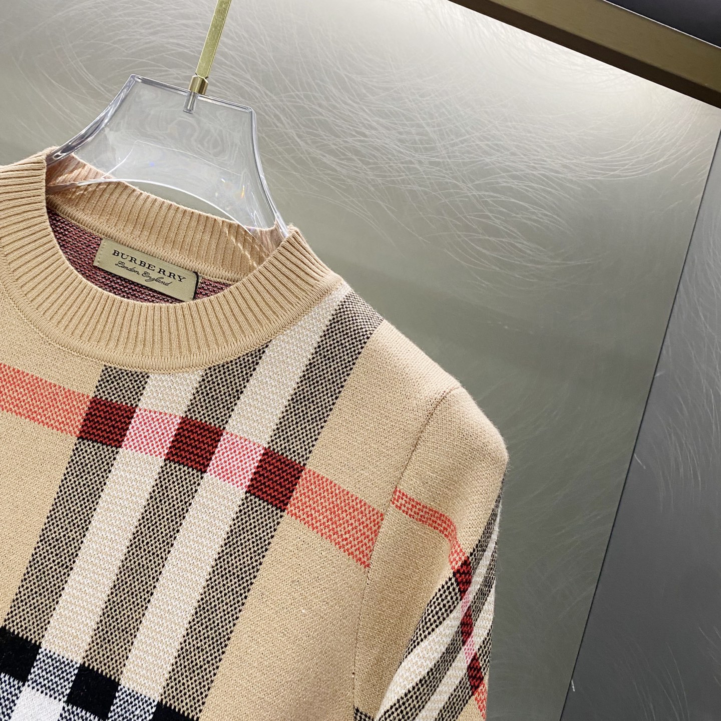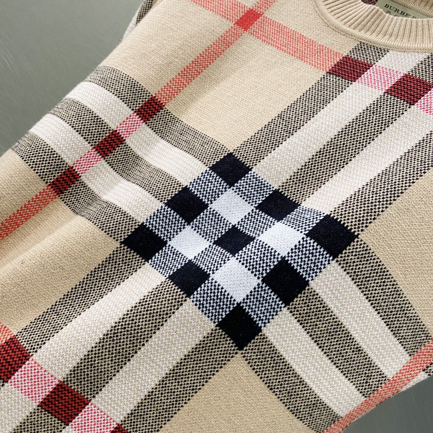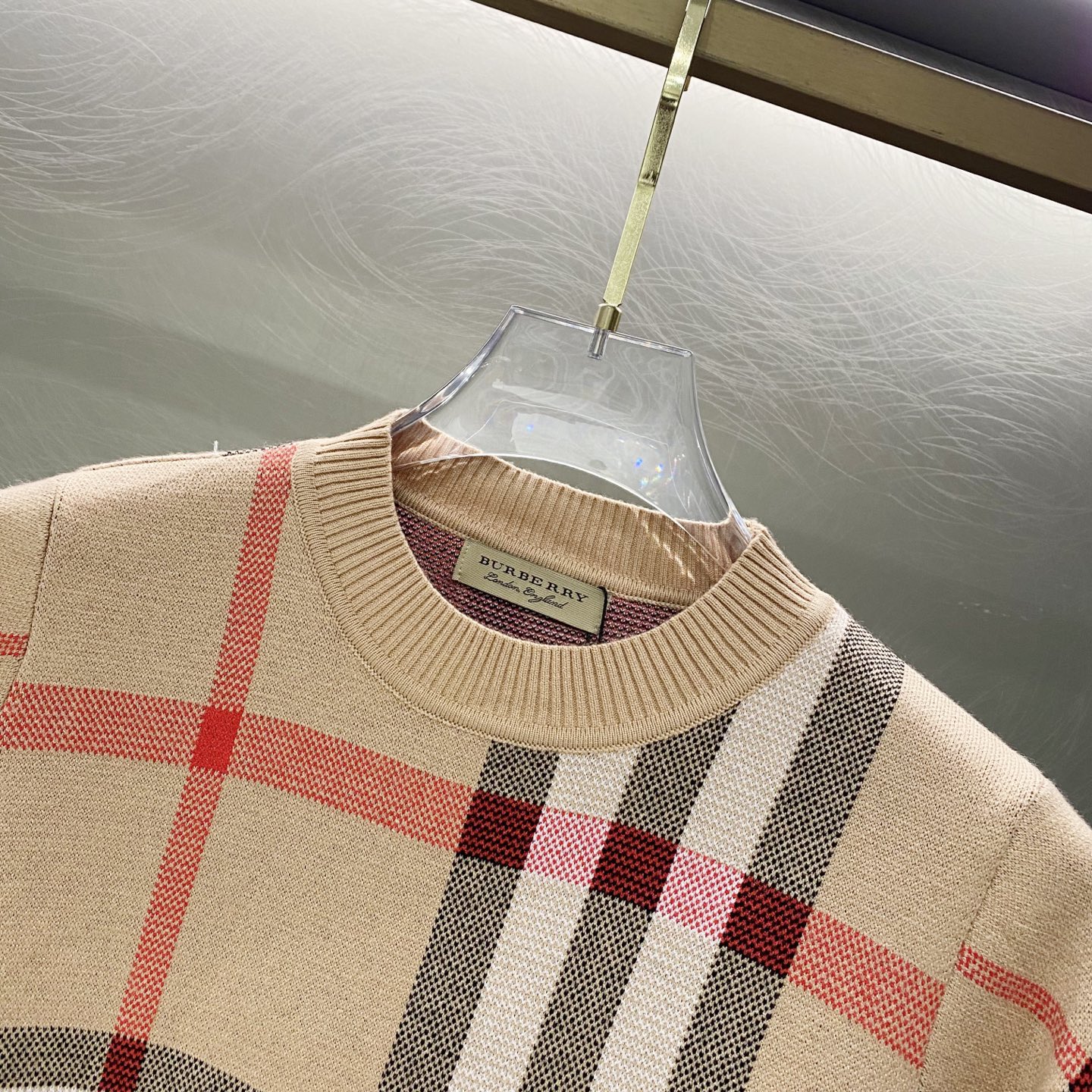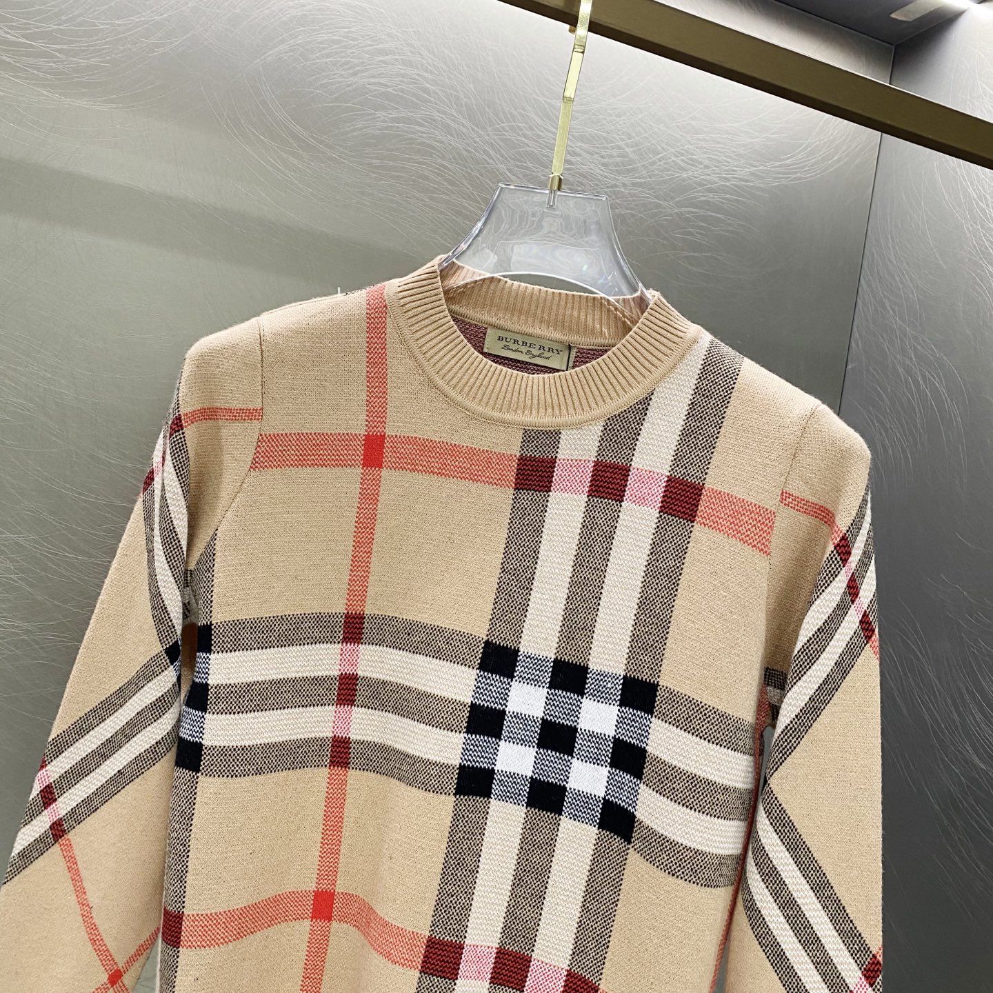 100195380 - Burberry巴宝莉格纹提花logo羊毛针织套头毛衣 GZ 400743