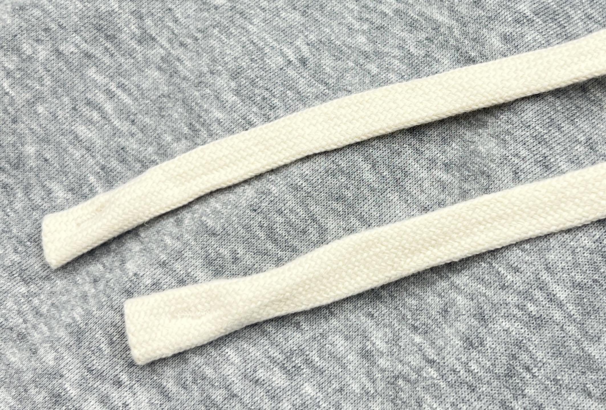 高弹抽绳设计 定制的米白色扁平棉绳 质感厚实且调节松紧超顺滑 绳头做了加固处理 久拉也不会脱线