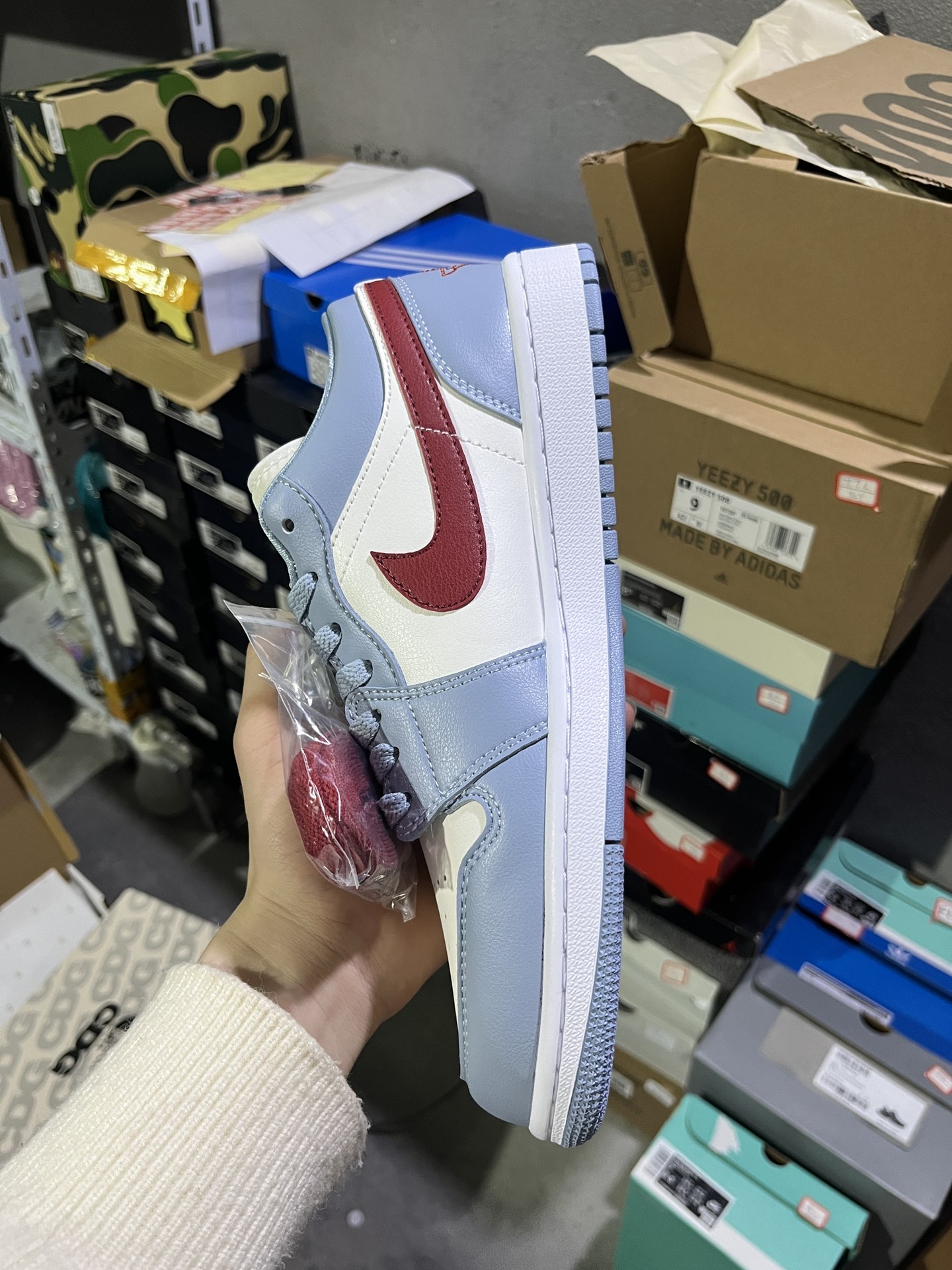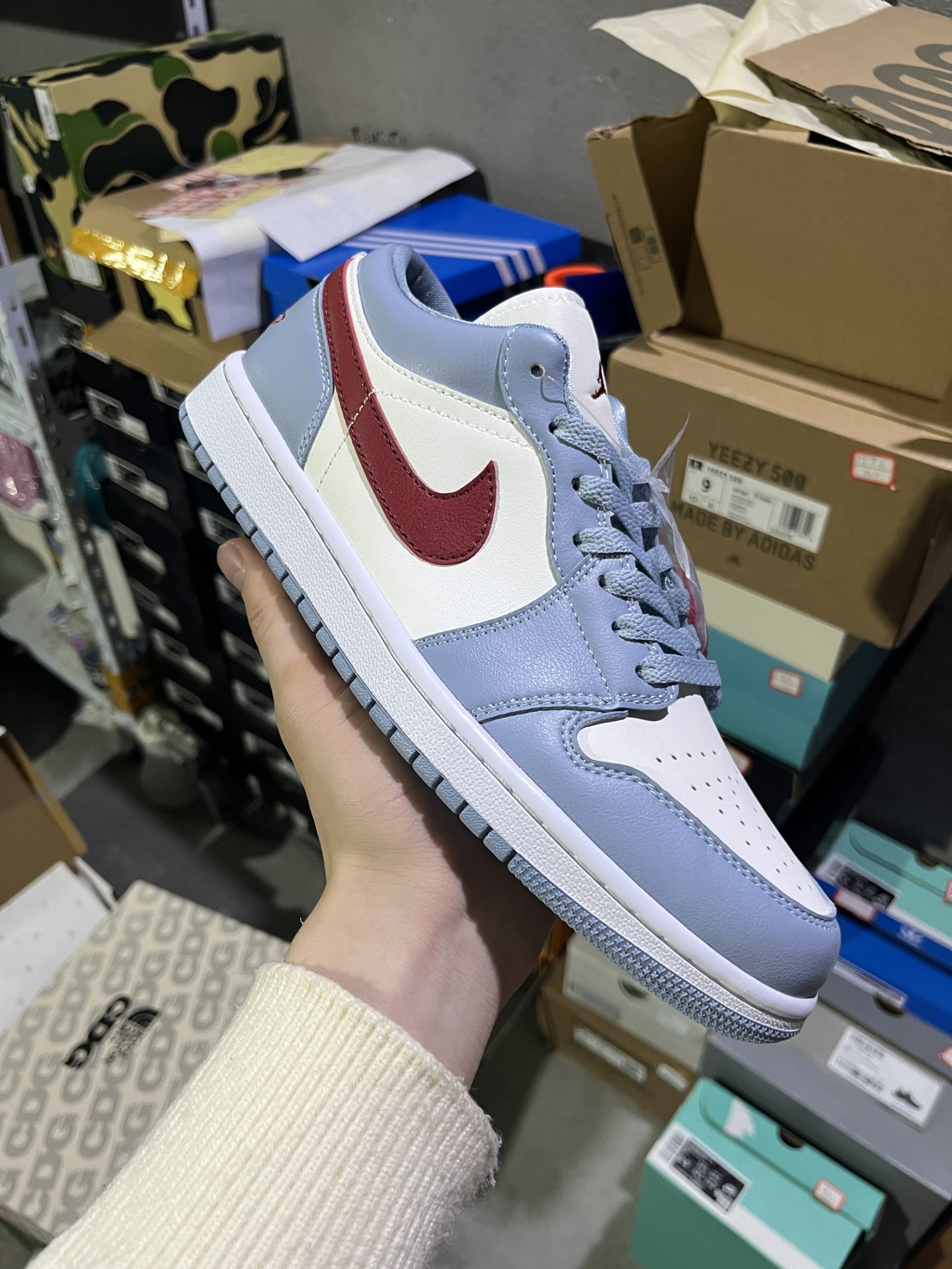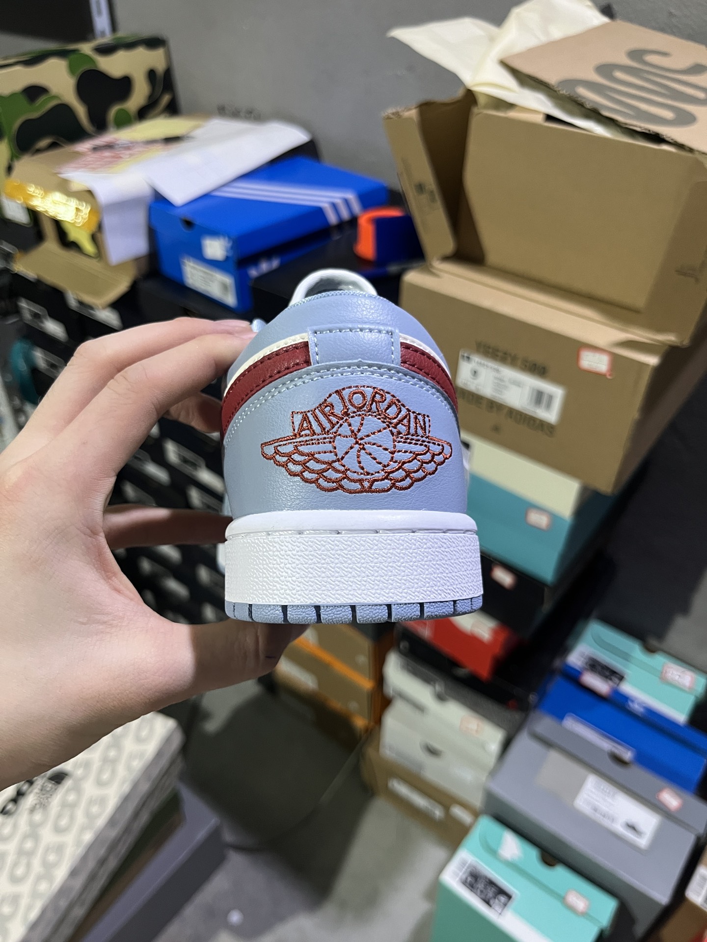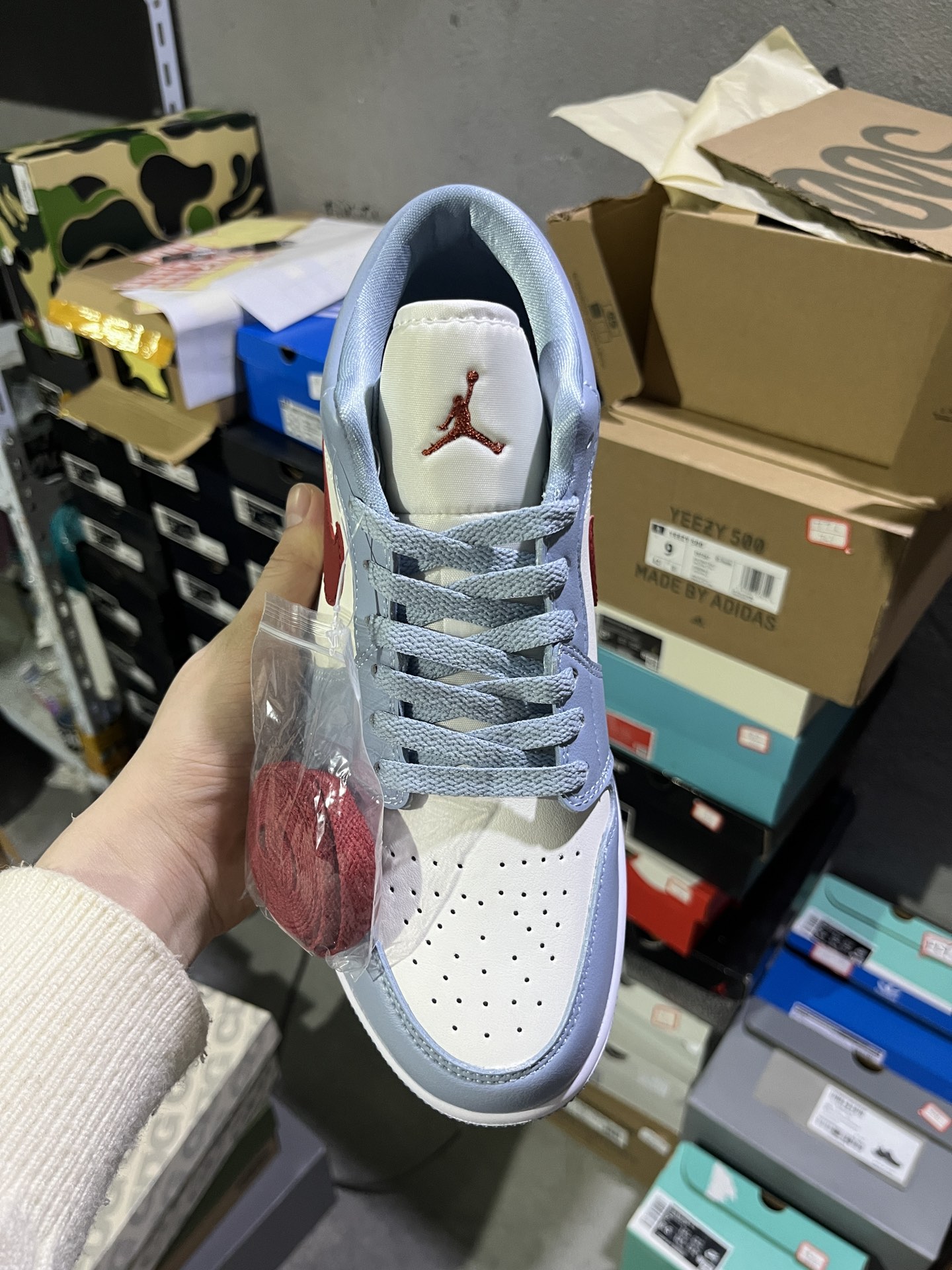 NM 实拍鉴赏 仓库随手拍上新 Y版头层 小DT版 Jordan Air Jordan 1 Low Blue Grey Dune Red 防滑 舒适 耐磨 低帮 复古篮球鞋 女款 蓝白 货号 DC0774 164 尺码 36 46