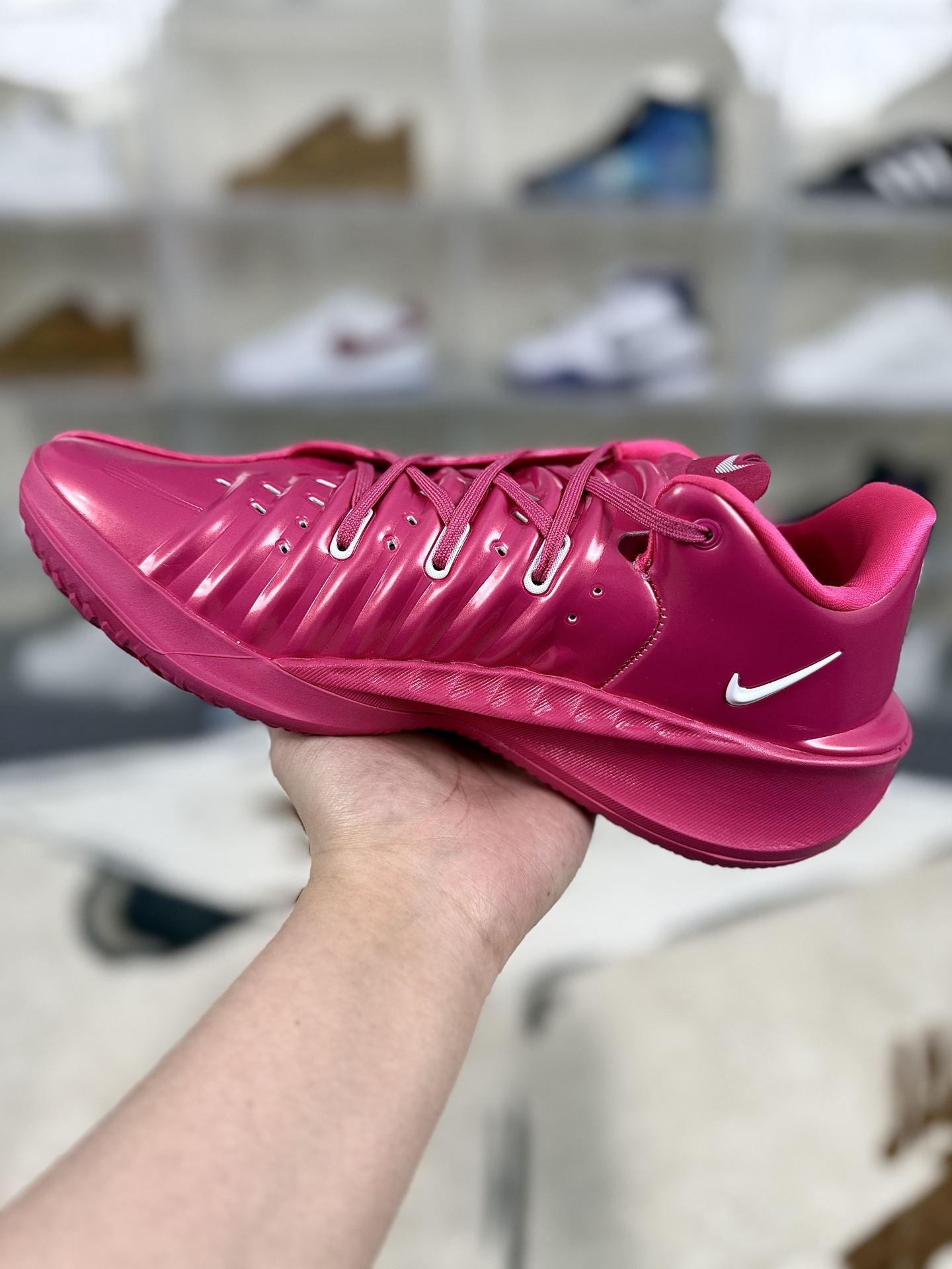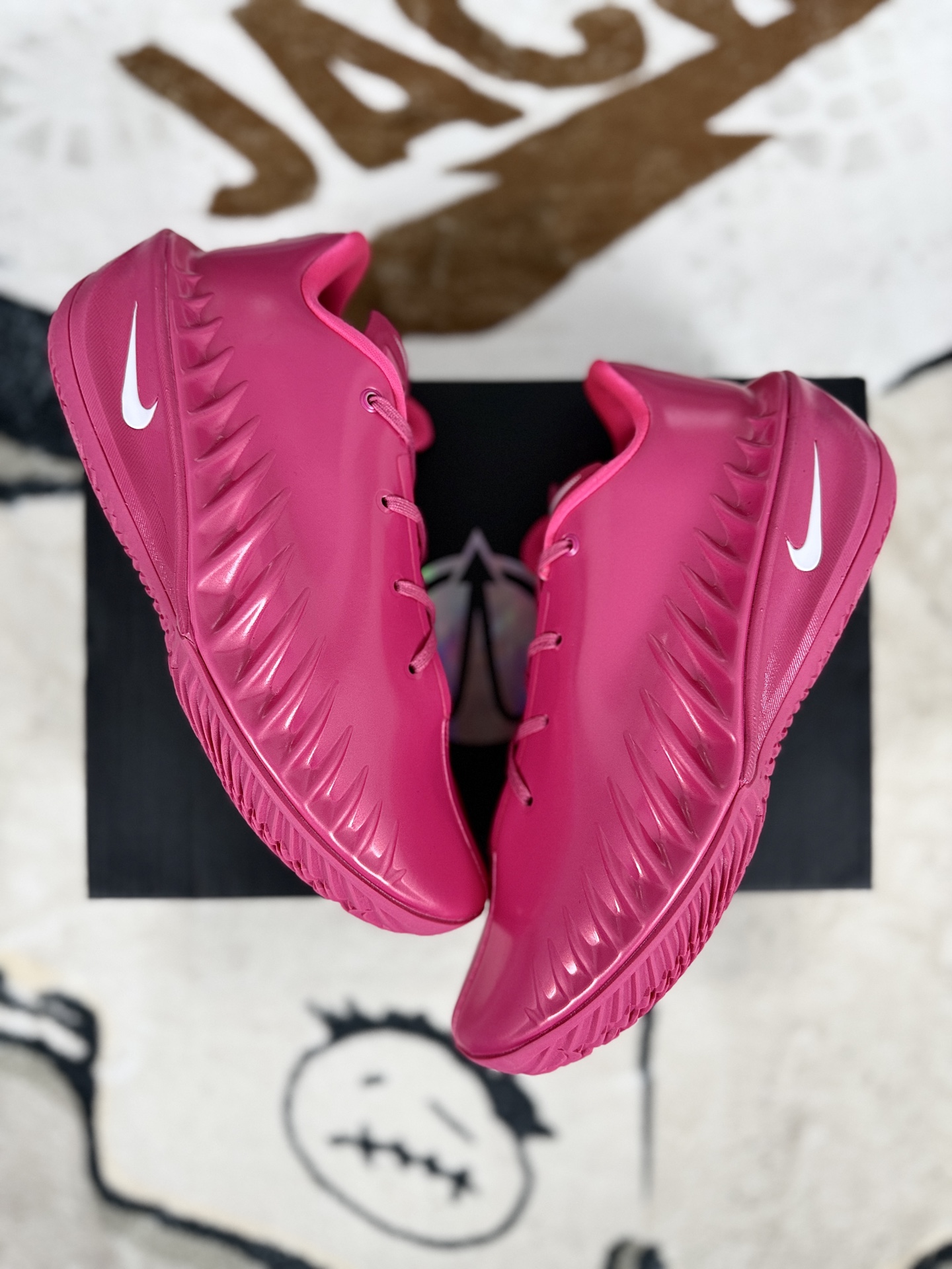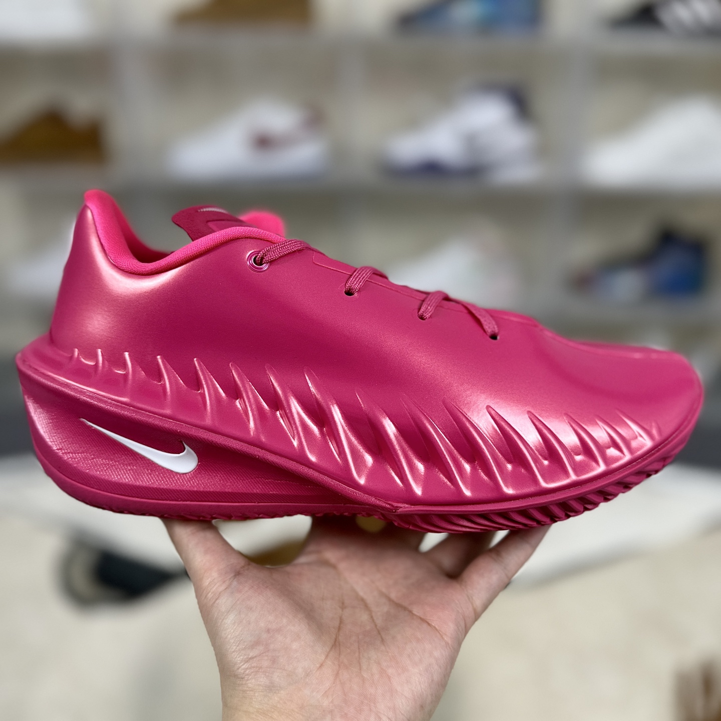 Nike Air Zoom G T Cut 4是Nike篮球鞋家族中备受期待的新一代产品 外观造型延续G T 系列的低帮设计 鞋面采用类似G T Future的薄发泡材质 呈现出液态金属质感 搭配银色Swoosh和后跟G T 徽章 极具科幻感与侵略性 鞋身侧面的锯齿纹路由多个Nike Logo演化而成 既装饰性强 又可能具备防侧翻功能 鞋带系统采用非对称鞋带设计 内侧足弓部位的中底进行了额外填充 旨在提升包裹性和支撑性 更好地适应快速变向和急停动作 作为G T 系列的第四代产品 G T Cut 4延续了该系列注重缓震与支撑性的传统 同时在设计语言上更加大胆创新 融合了千禧年复古未来主义风格 体现了Nike对篮球鞋科技与美学的持续探索