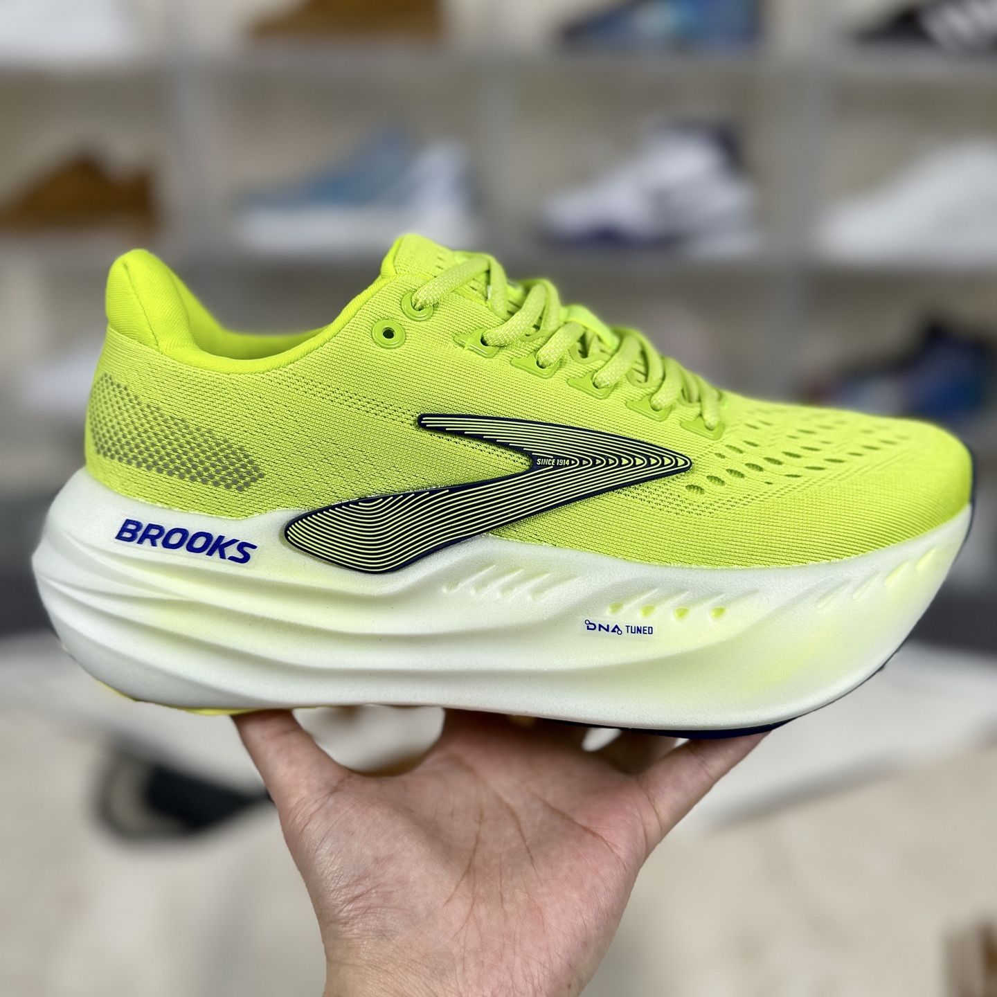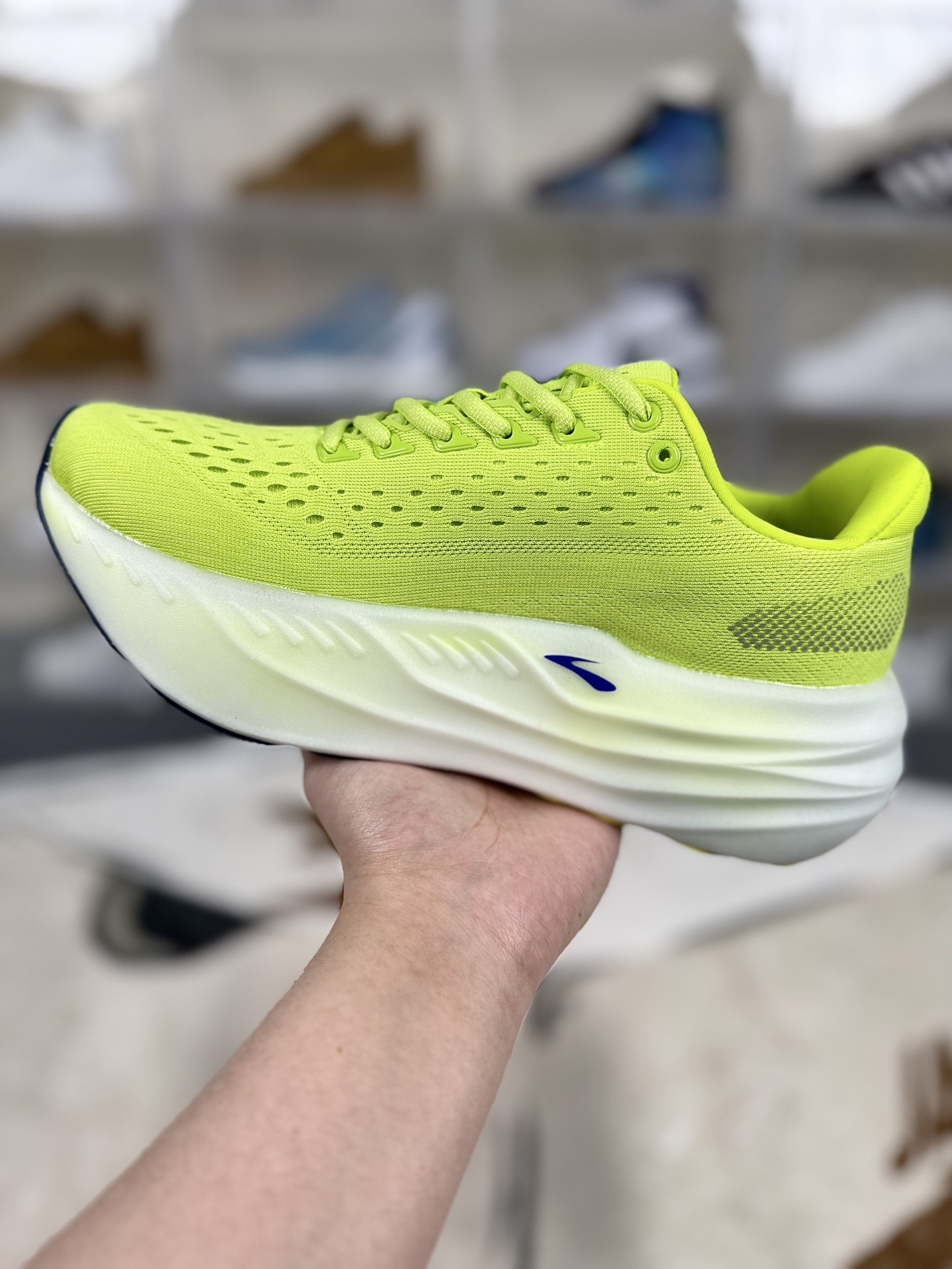 Brooks Glycerin Max 超级甘油 是Brooks品牌推出的顶级缓震跑鞋 DNA Tuned双重分子注氮技术 将超临界泡沫颗粒按前掌小分子 后掌大分子的配比一体成型 前掌小分子在蹬伸时产生韧弹推进力 后掌大分子则如云朵般轻柔化解冲击 兼顾缓震与回弹 GlideRoll Rocker滚动过渡技术 鞋身前掌区域上翘 配合一体成型的双密度中底 使步行和跑步时的滚动过渡更加平稳顺畅 减少过度激进的过渡感对足部的负担 采用三重提花工程网眼面料 柔软贴合 包裹感强 Brooks Glycerin Max凭借创新的中底科技 舒适的脚感和时尚的外观 成为了一款备受关注的顶级缓震跑鞋 它不仅适合专业跑者 也为普通跑步爱好者提供了更轻松 健康的跑步体验