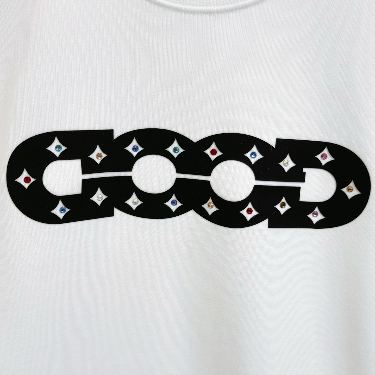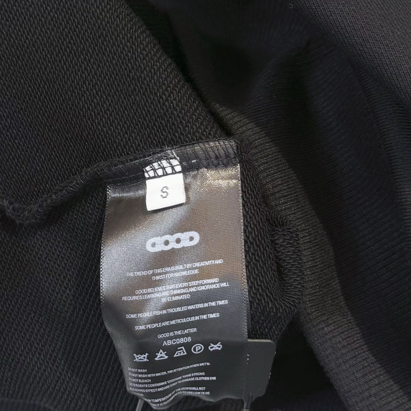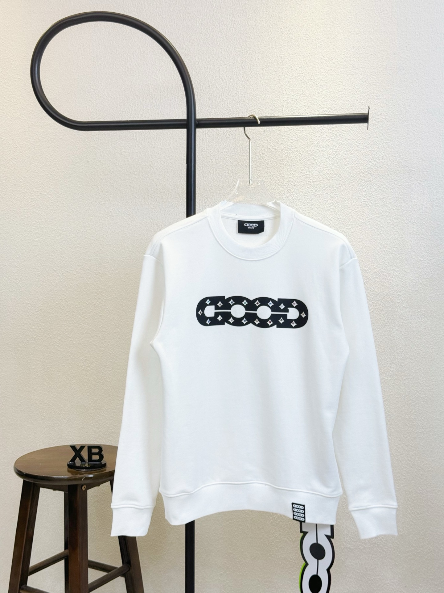 款号X286 黑白两色 GOOD字母镶钻彩钻刺绣圆领卫衣 面料采用400克毛圈高克重95棉5氢纶1 1双纱洗一辈子都不会变形的 男女同款 官网细节一致 全套包装 三标齐全 防潮纸 区别市场通货 随意对比 OS版型 最大可穿200斤上身舒服有型 颜色 黑 白 尺码 S XL