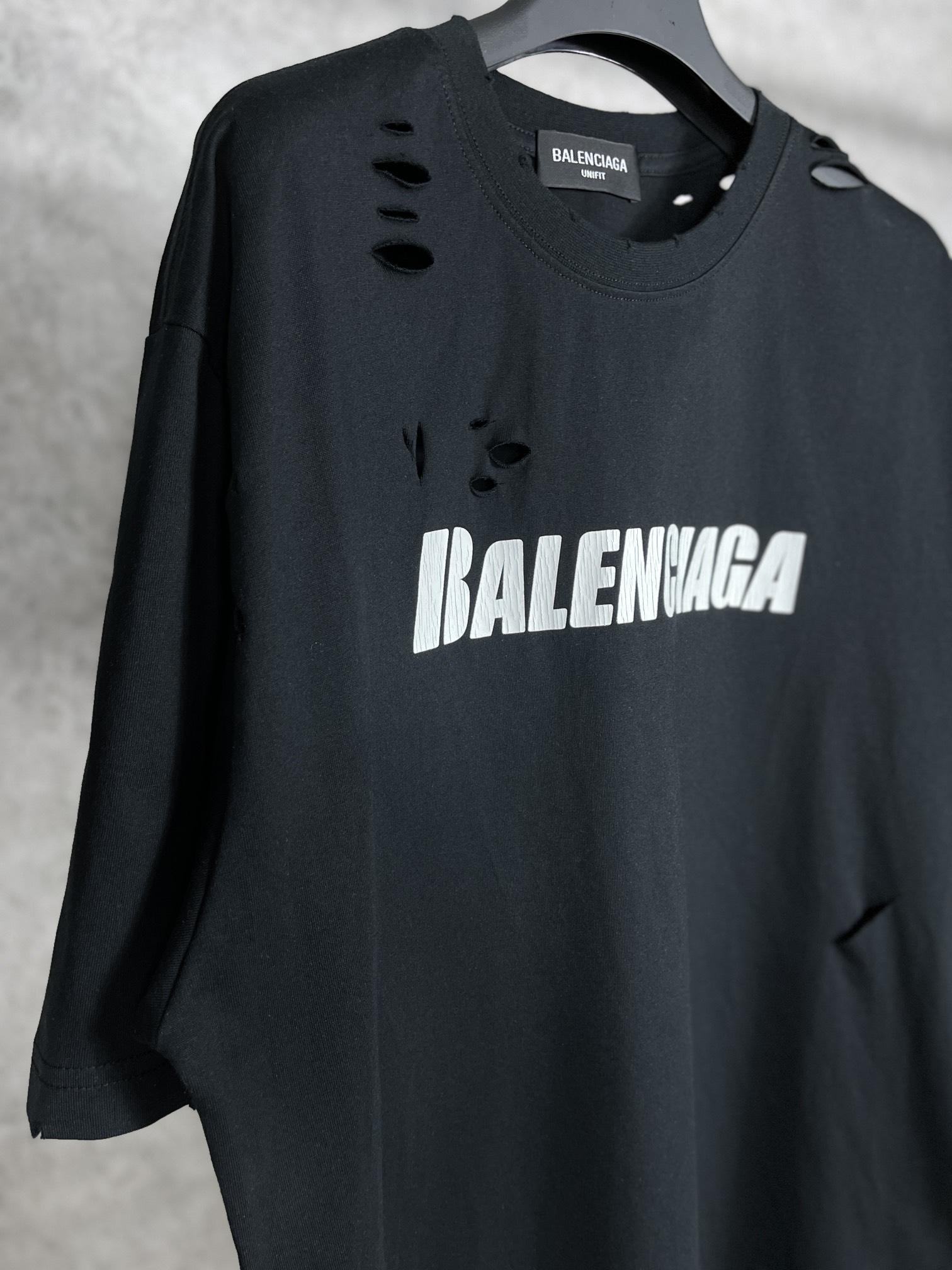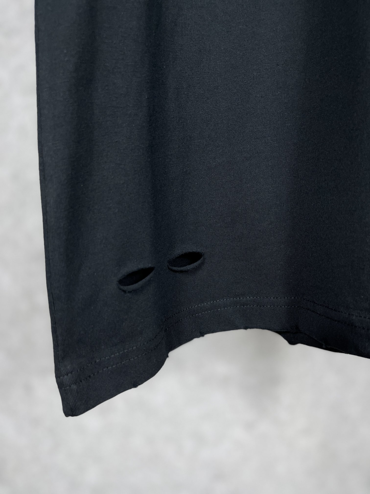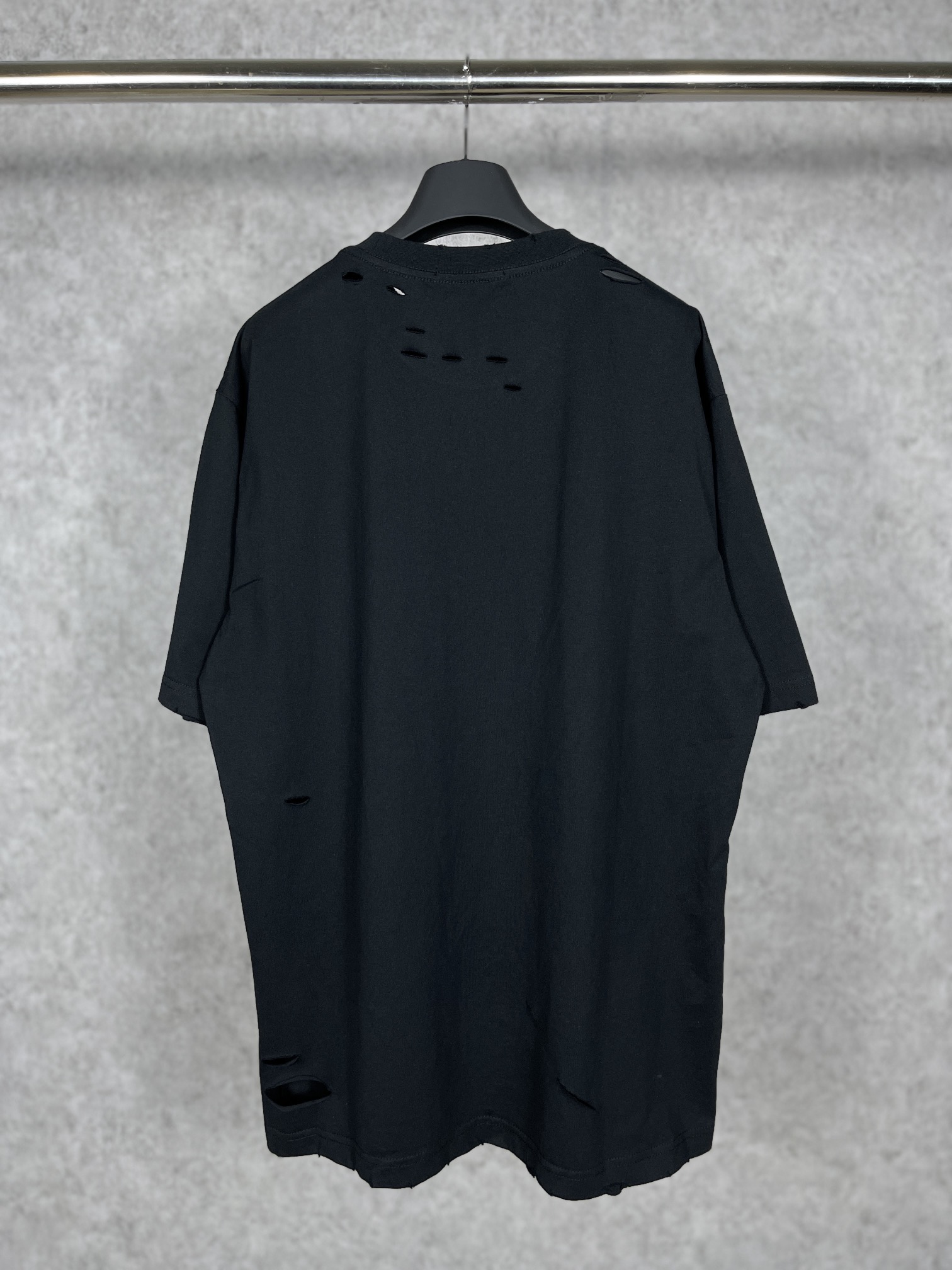 实拍图 顶级版本 官网品质 BALENCI GA 巴黎 经典字母LOGO印花成衣水洗做旧破洞割烂短袖T恤 砖柜同步 面料采用巴黎ZP定织定染全棉双纱紧密棉 克重260克 布面干净 布纹清晰 柔软舒适 螺纹釆用定染无色差 经典图案采用环保进口材料印花 直裂纹拉裂胶浆 精密印花网板 字母清晰 效果立体 还原砖柜 成衣水洗作旧 多位手工磨烂割烂 超重工艺生产 巨别市场通货 欢迎对比 版型釆用OS宽松落肩版型 男女同款
