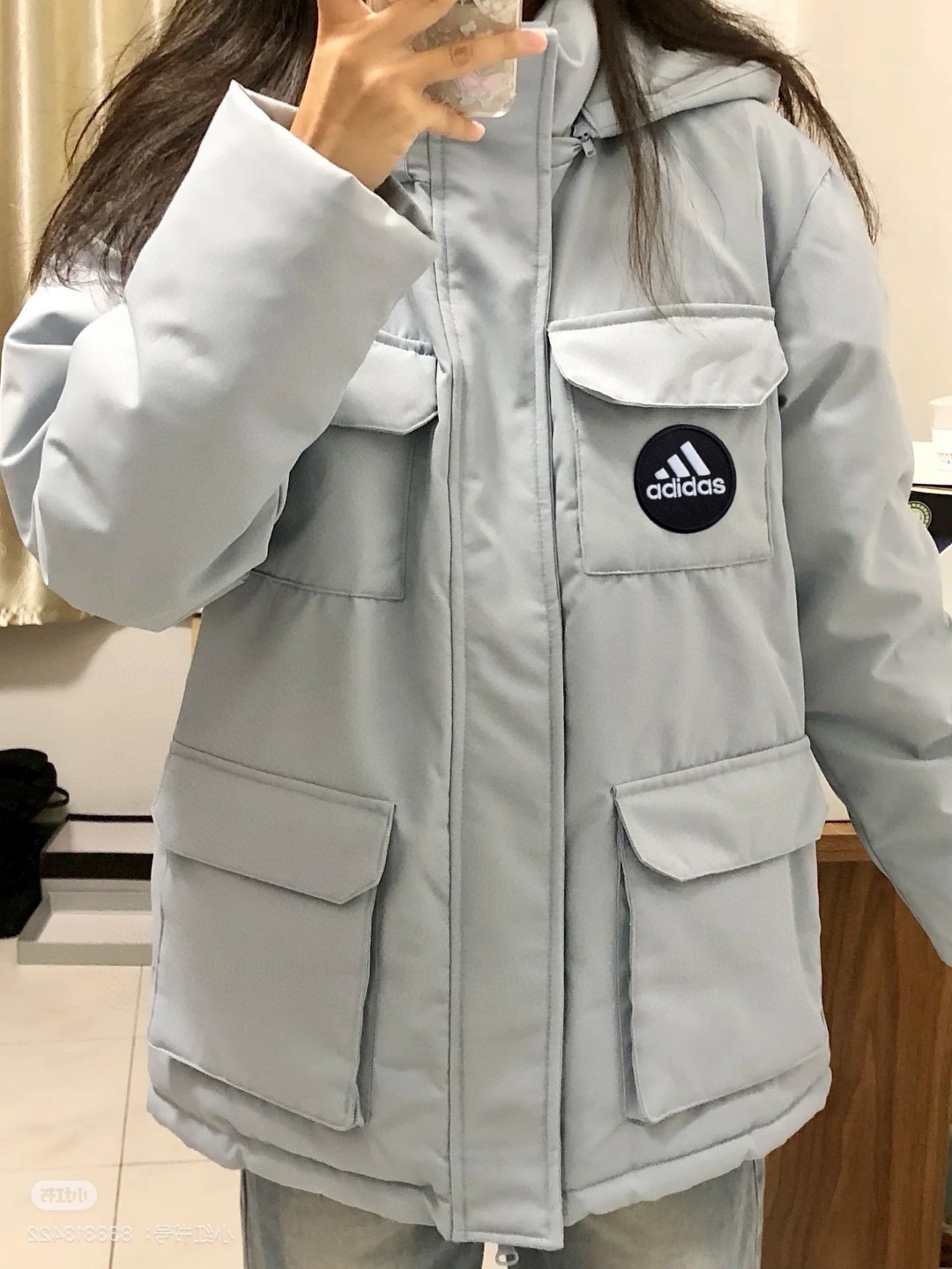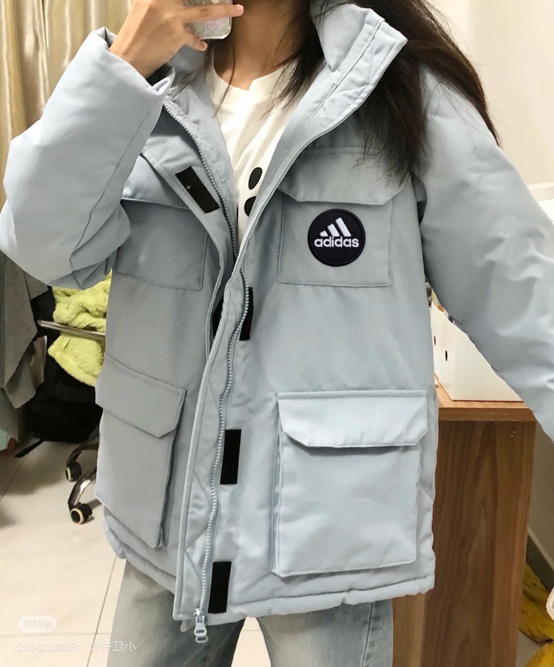 290126880 - 原版质量 阿迪达斯Adidas蓝色工装羽绒服女款冬季中长款白 380613