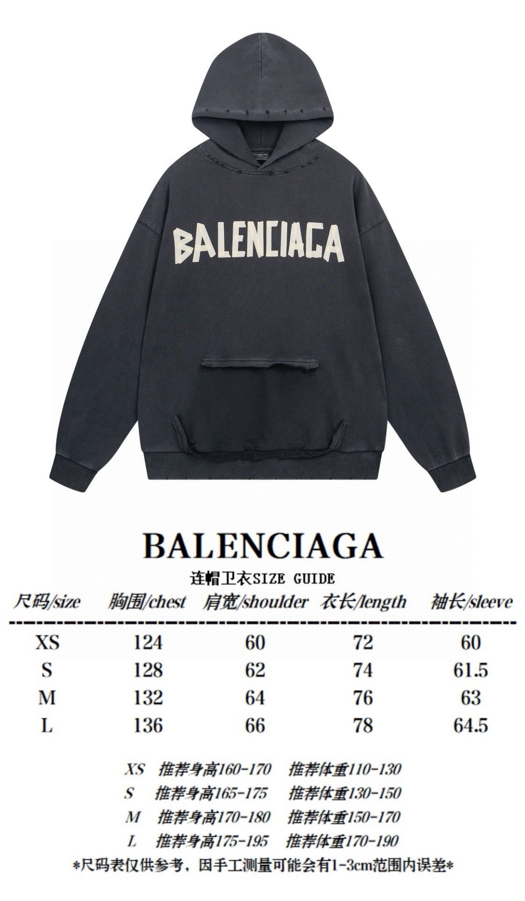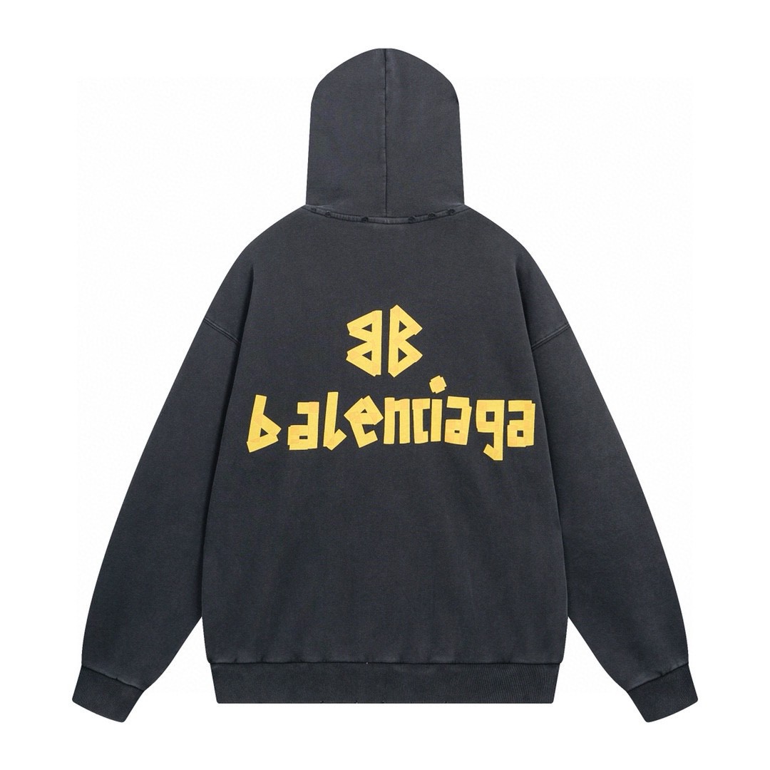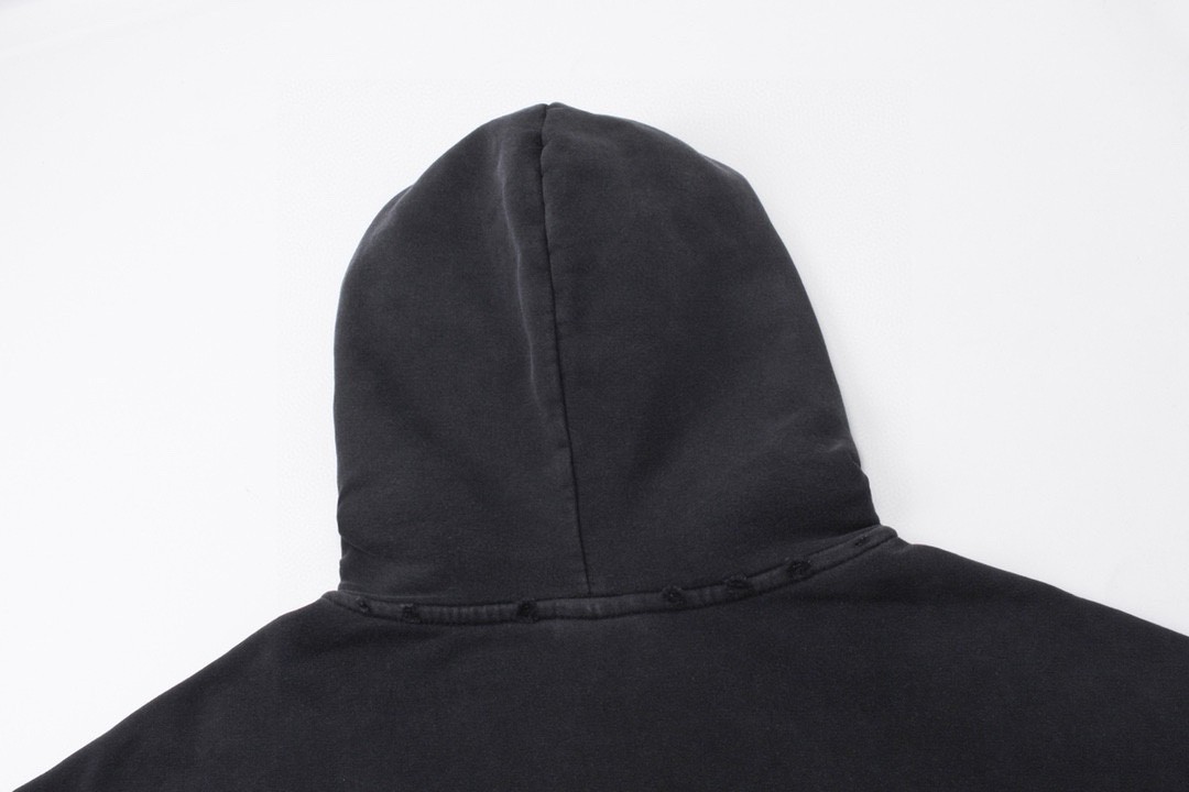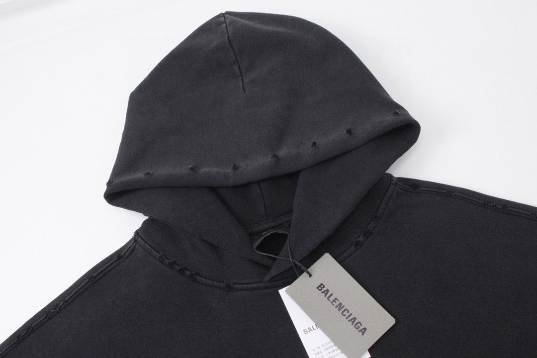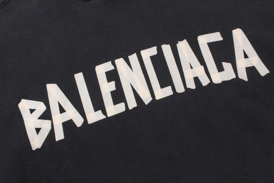 BALENCIAGA 巴黎世家2025 SS 经典胶带拉浆印花水洗磨烂连帽卫衣