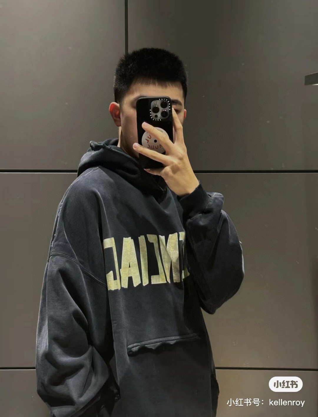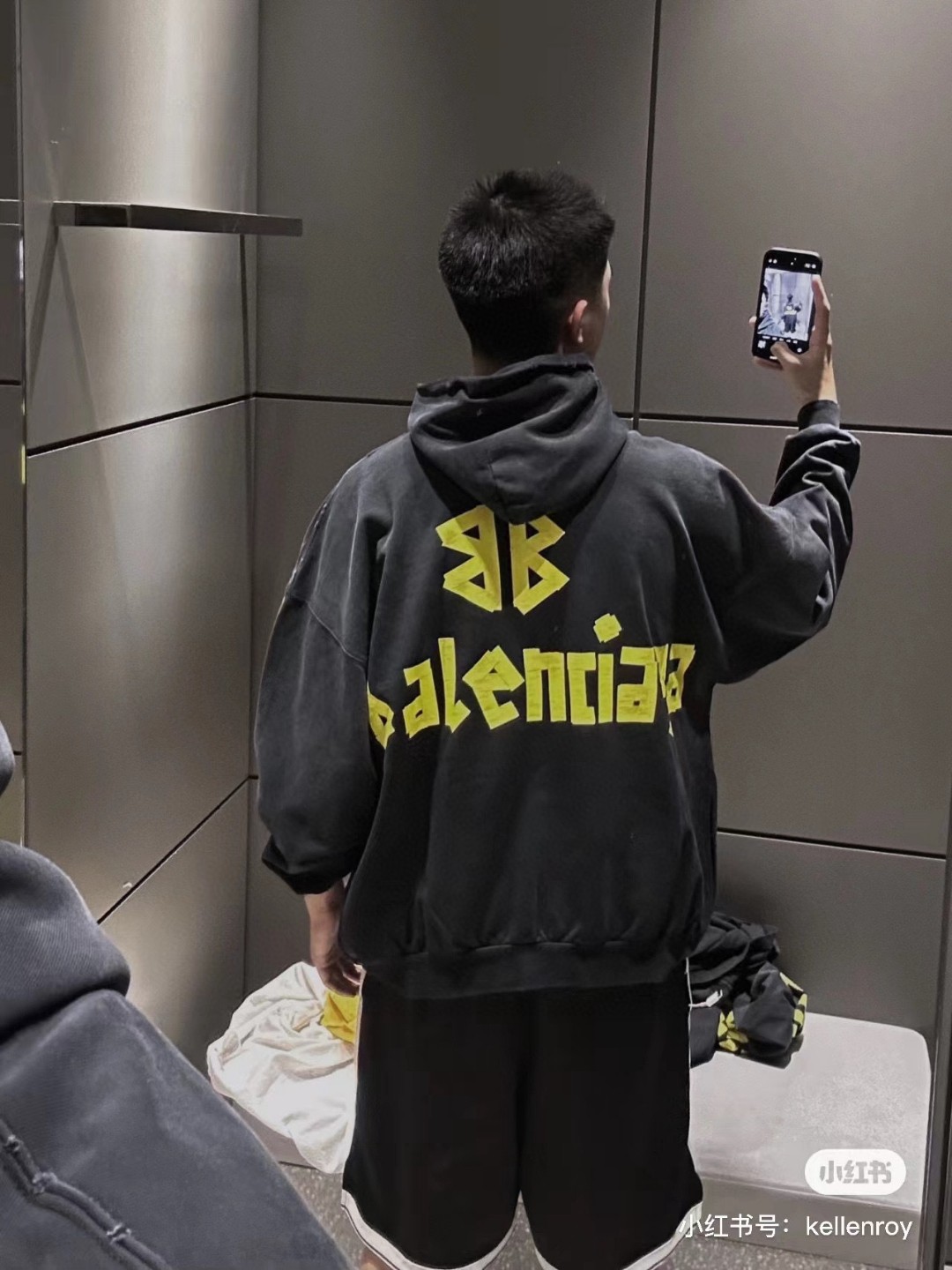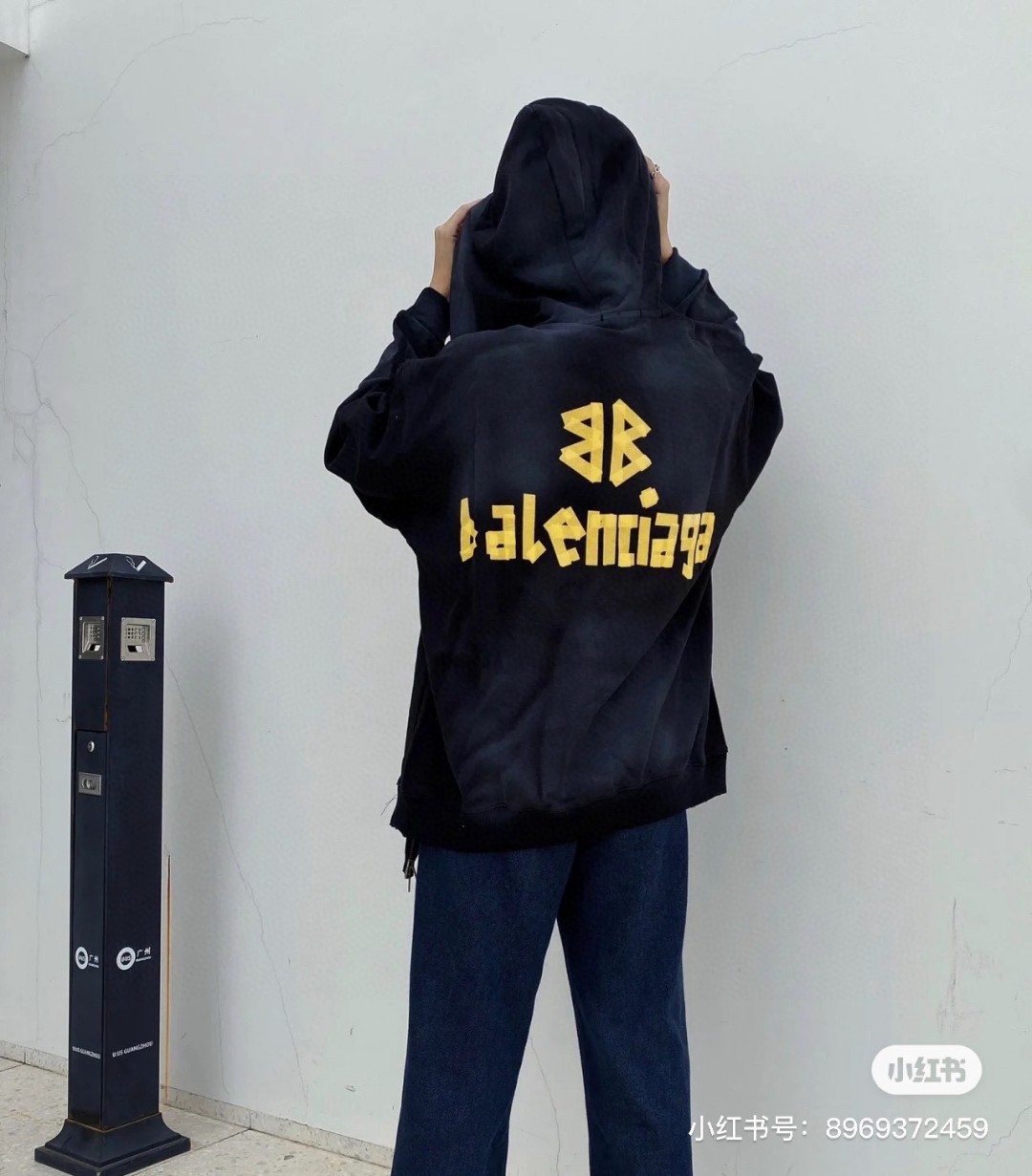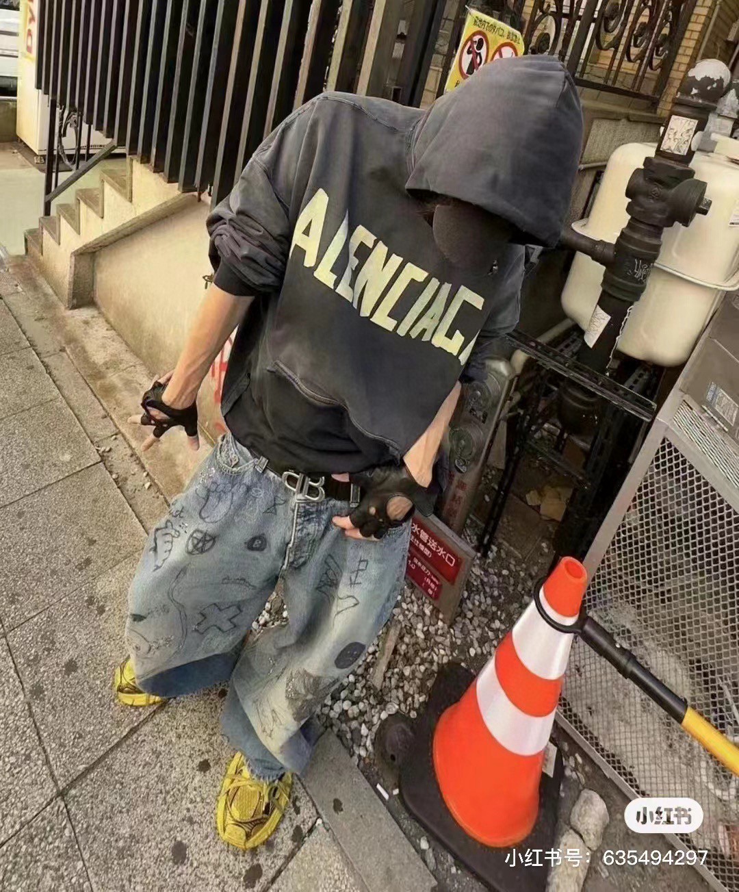 BALENCIAGA 巴黎世家2025 SS 经典胶带拉浆印花水洗磨烂连帽卫衣