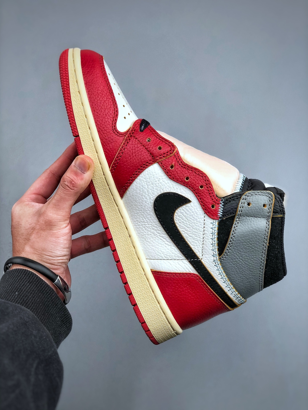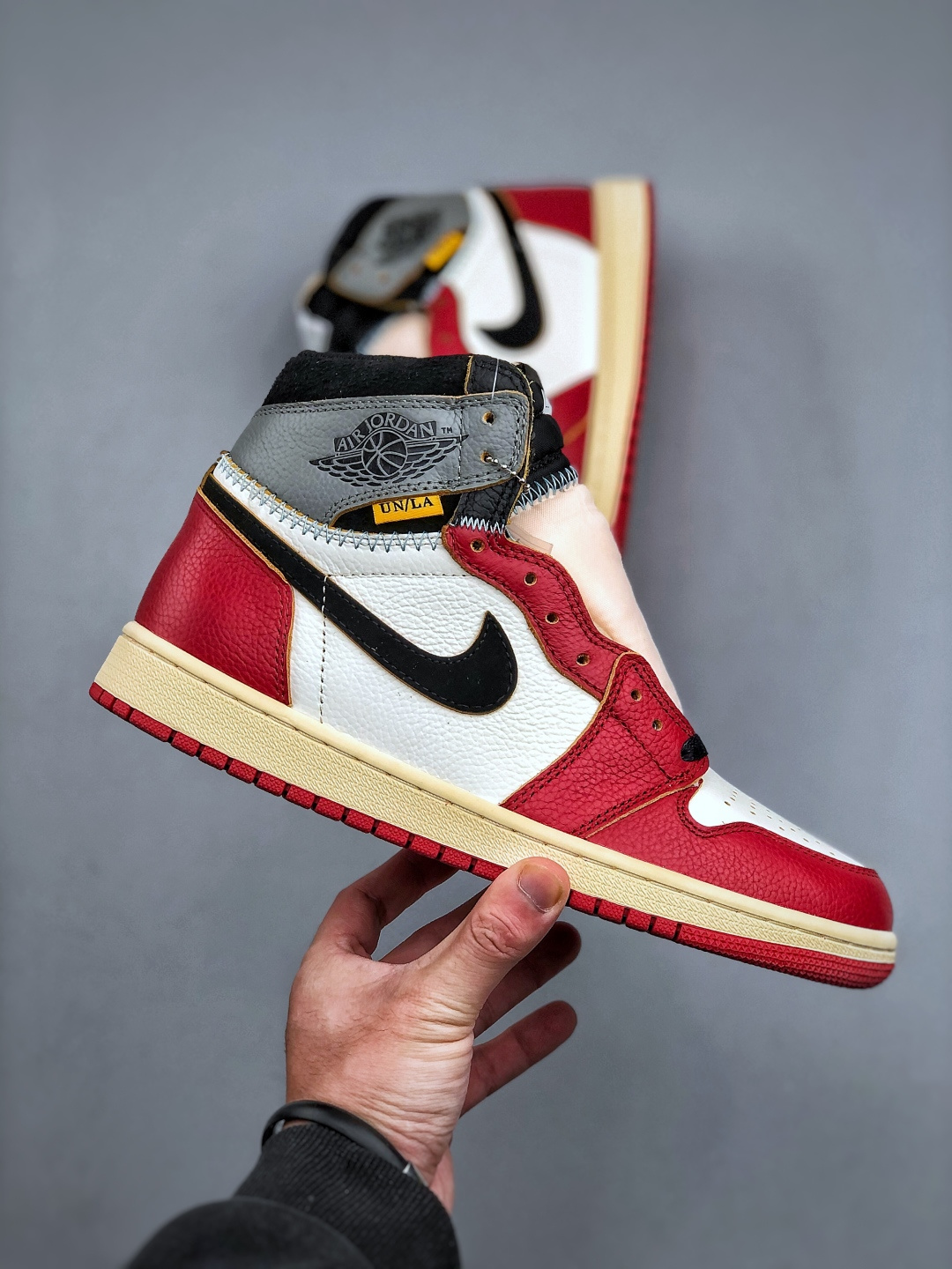 支持放店K Union x Air Jordan 1 Retro High AJ1 乔1影子芝加哥 高帮篮球鞋 鞋身整体以白色为主色调 在框架部分采用红色呈现 营造出经典的 Chicago 配色氛围 鞋帮部分延续了初代Union联名的设计 采用了特殊的 缝合 工艺打造 货号 HV8563 600 尺码 36 47 半