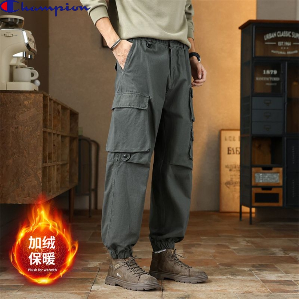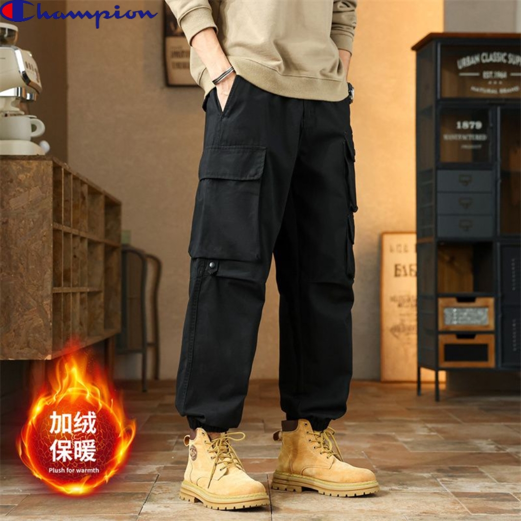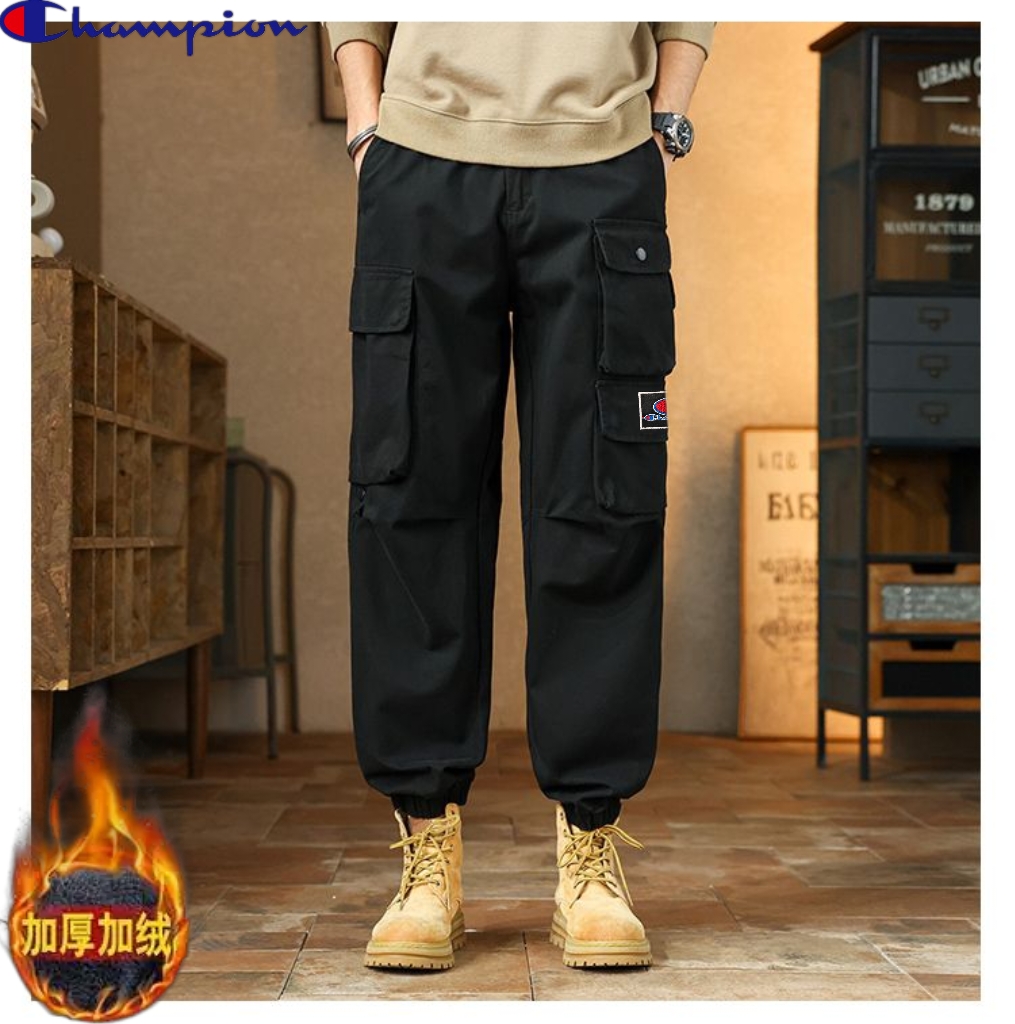 冠军champion冬季新款 男士松紧腰多口袋加绒加厚工装口袋束脚裤百搭时尚潮流 这款加厚工裤裤装裤绝了 加绒休闲裤长裤上身版型太好了