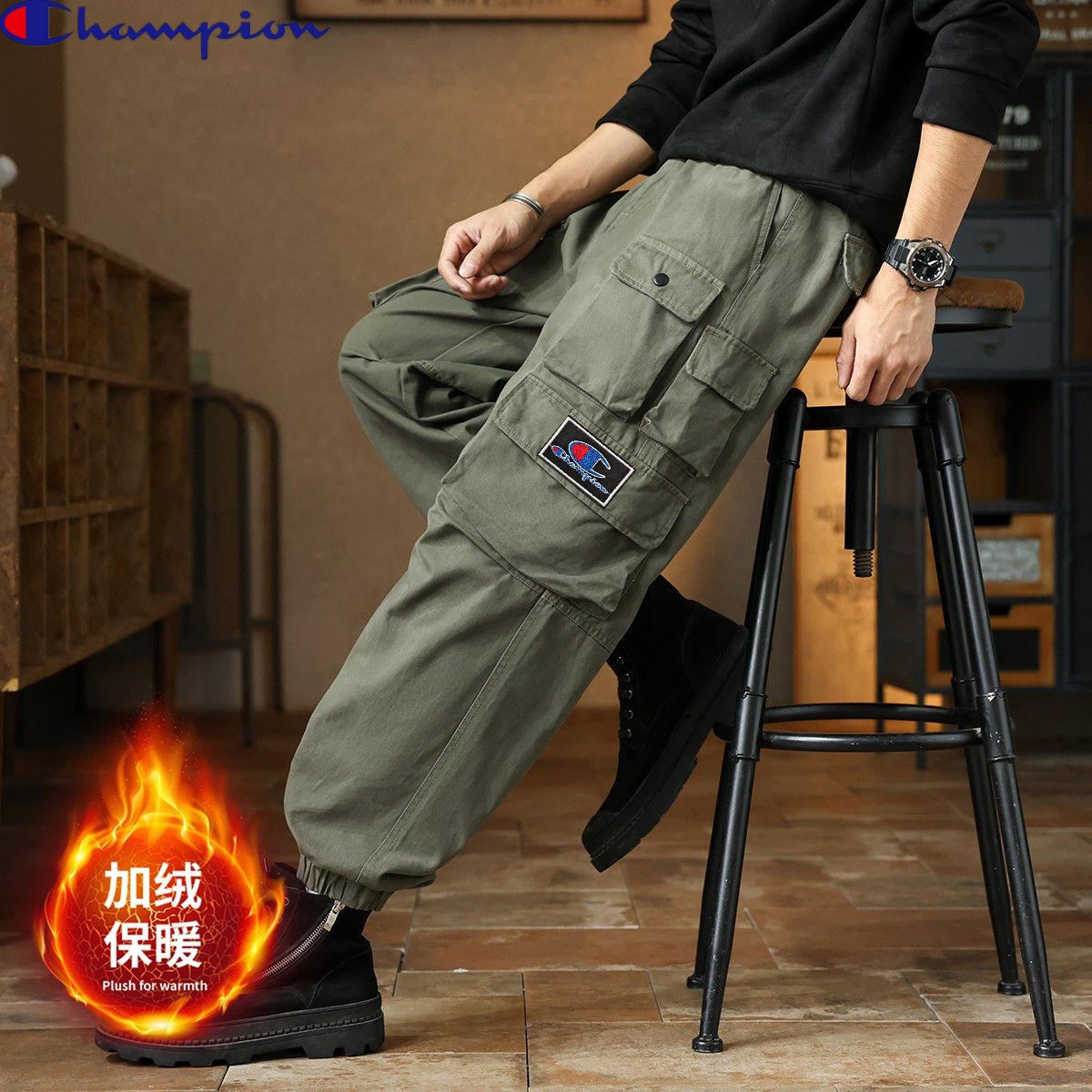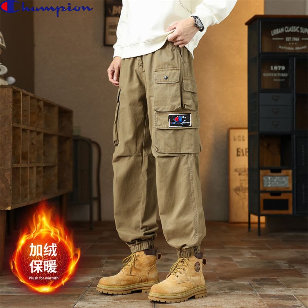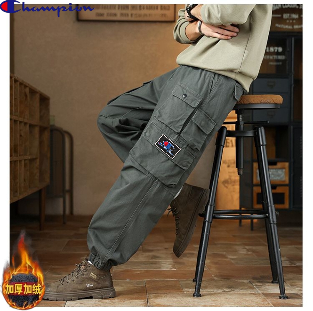 冠军champion冬季新款 男士松紧腰多口袋加绒加厚工装口袋束脚裤百搭时尚潮流 这款加厚工裤裤装裤绝了 加绒休闲裤长裤上身版型太好了