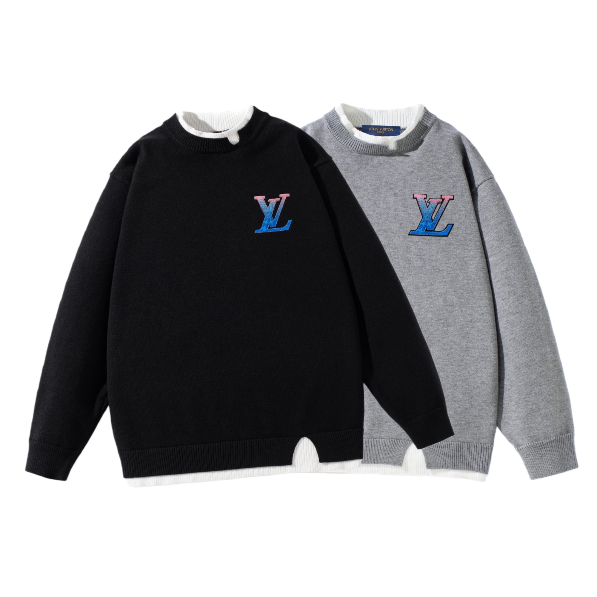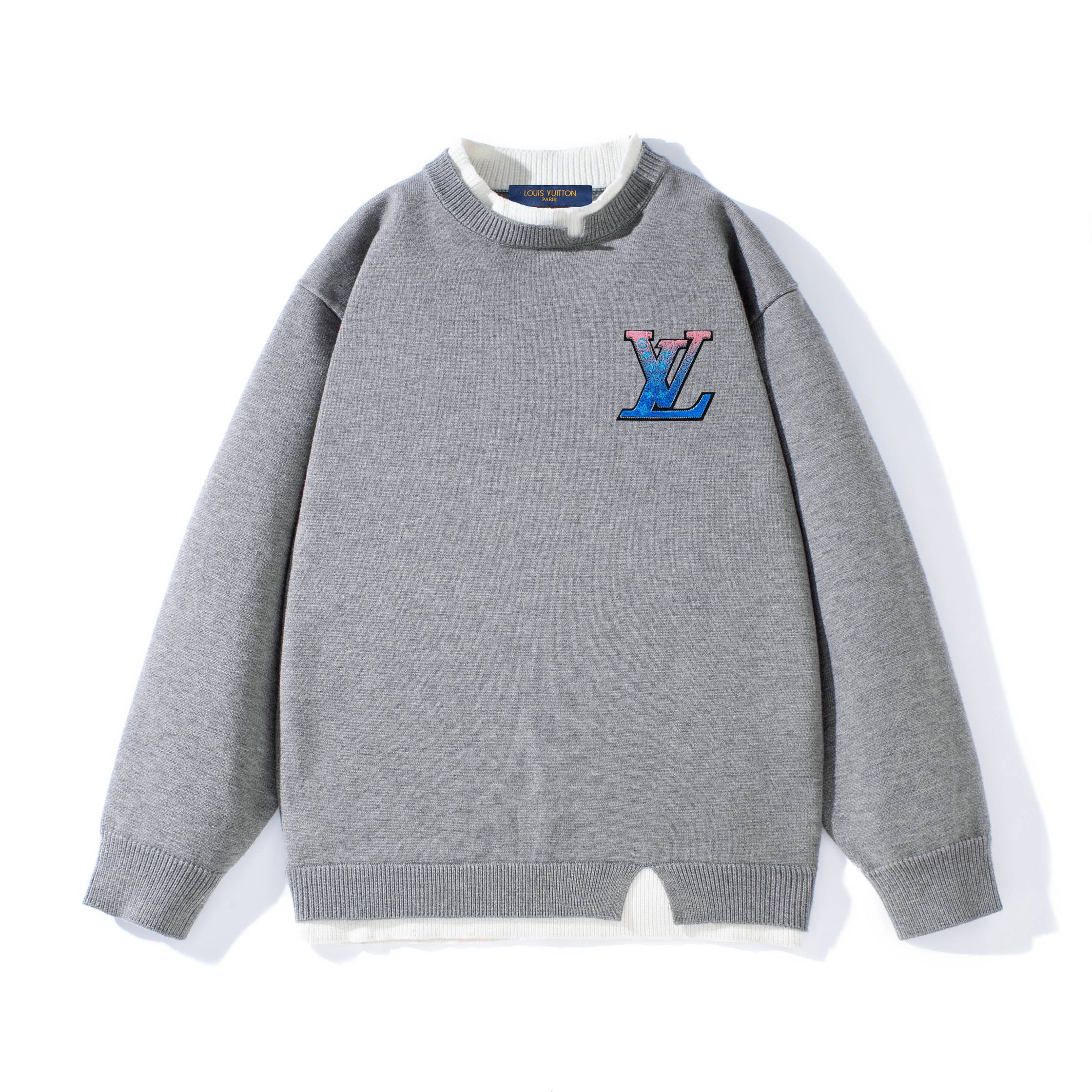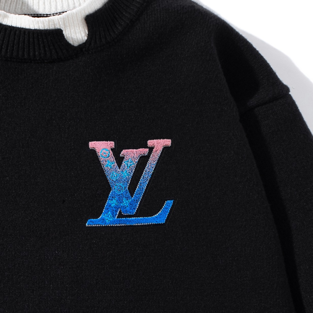 LOUIS VUITTON LV路易威登渐变牙刷绣标撞色针织毛衣