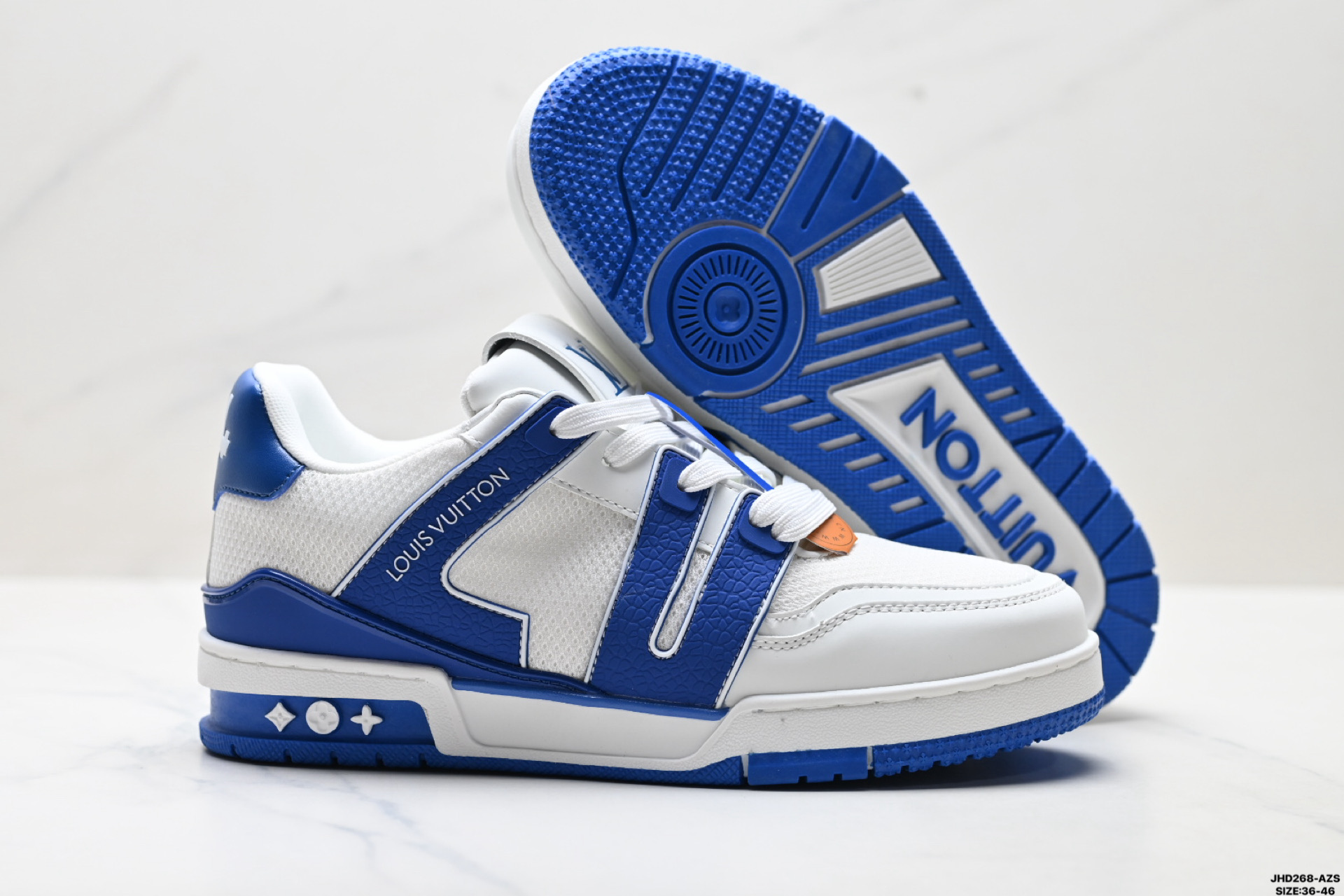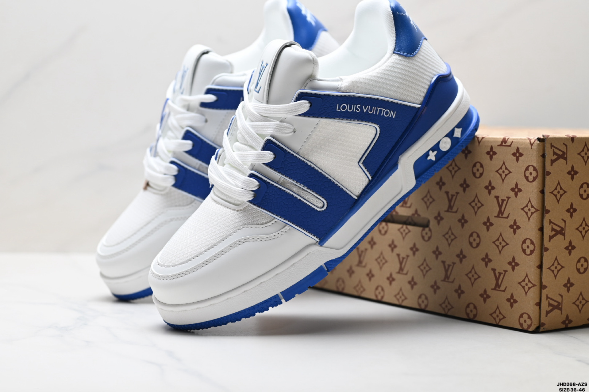 公司级Louis vuitton Trainer Sneaker Low 路易威登 休闲运动文化百搭板鞋 舒适防滑底和百搭性霸屏整个时尚娱乐圈 细节调整完美主义 鞋面采用柔软皮革鞋面 独家开模大底 侧边采用3D打印标志性Logo 尽显贵族时尚气息 配带正品全套包装 尺码 36 46 ID JHD268 AZS