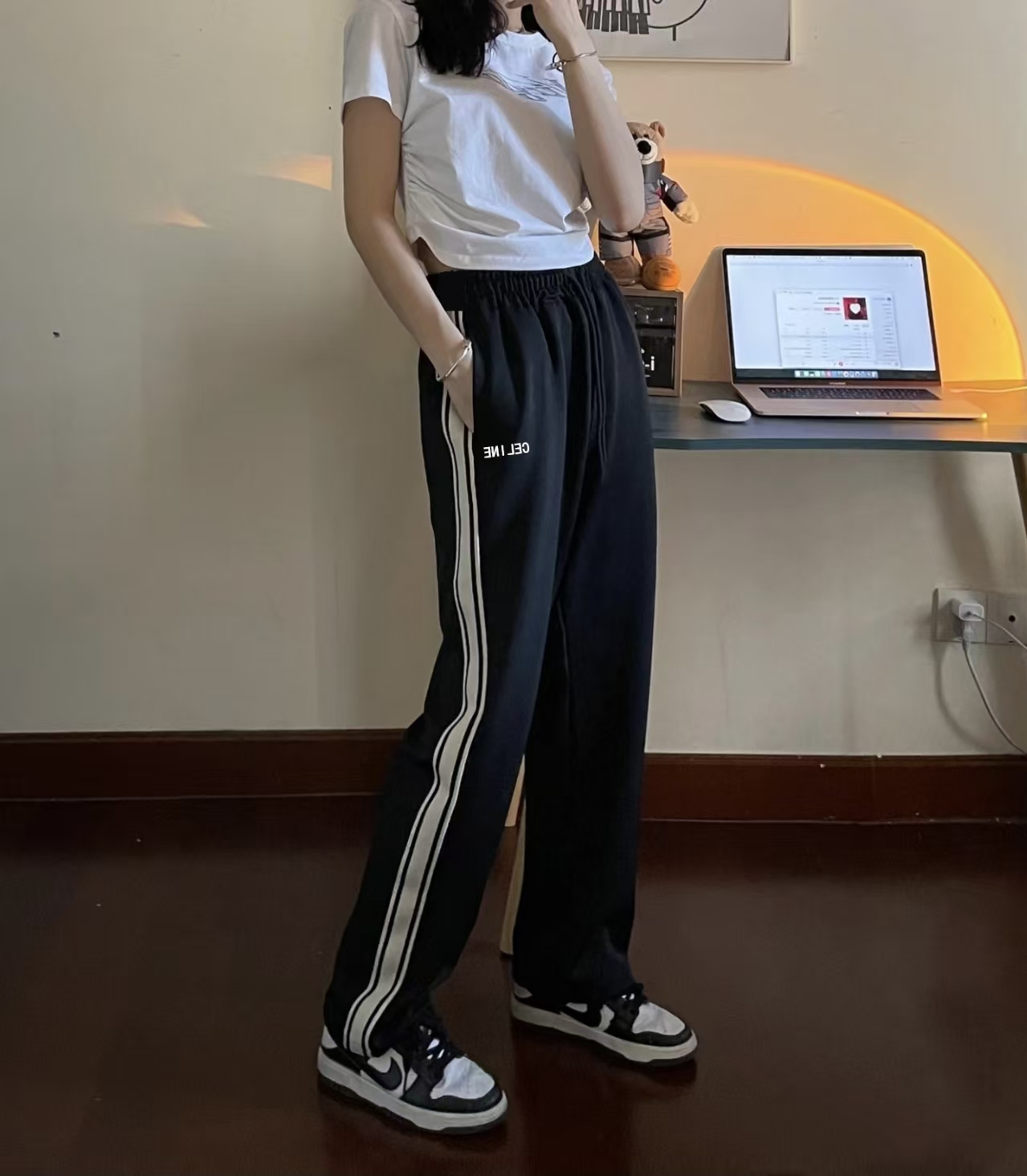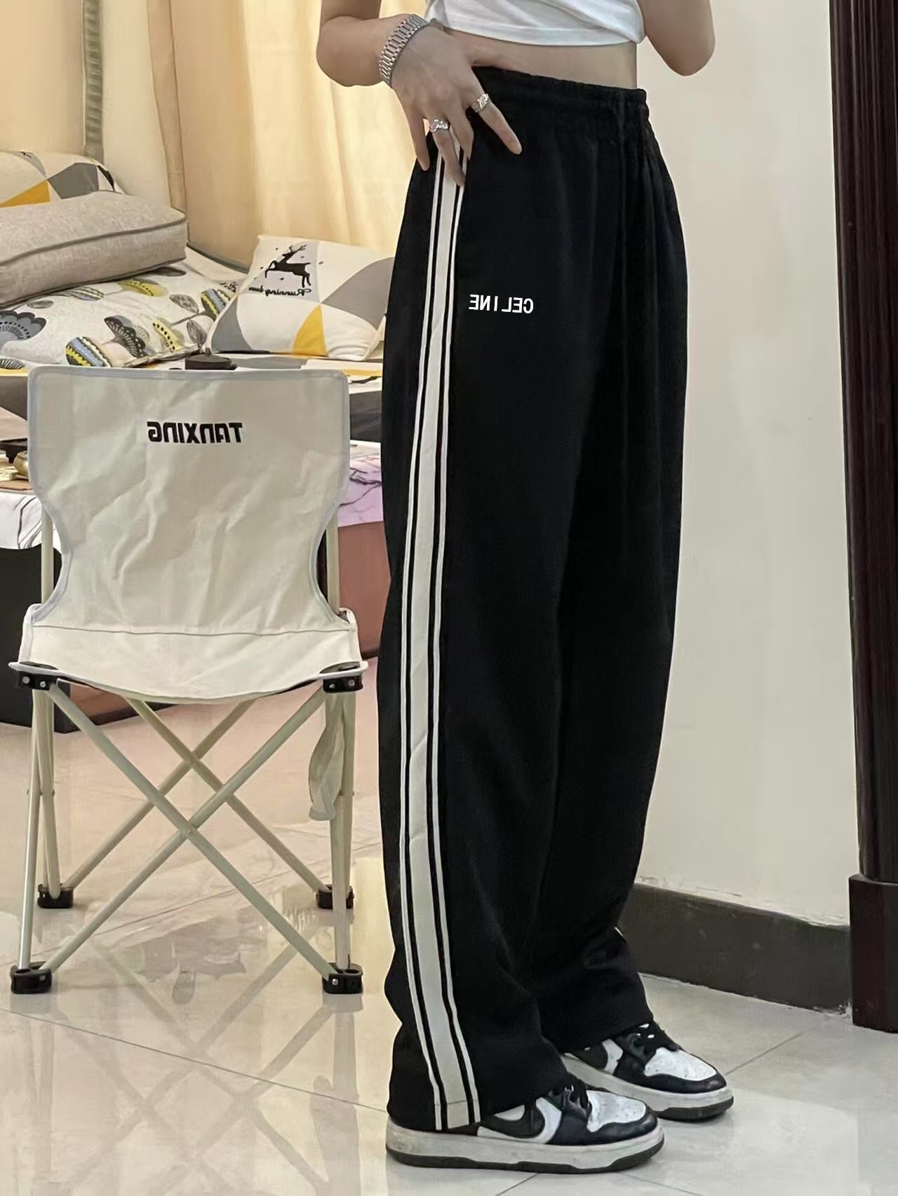 高品质 赛琳Celine冬季新款情侣款加厚织带长裤 宽松版型