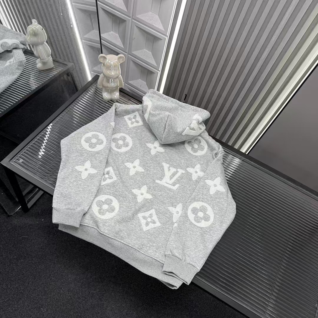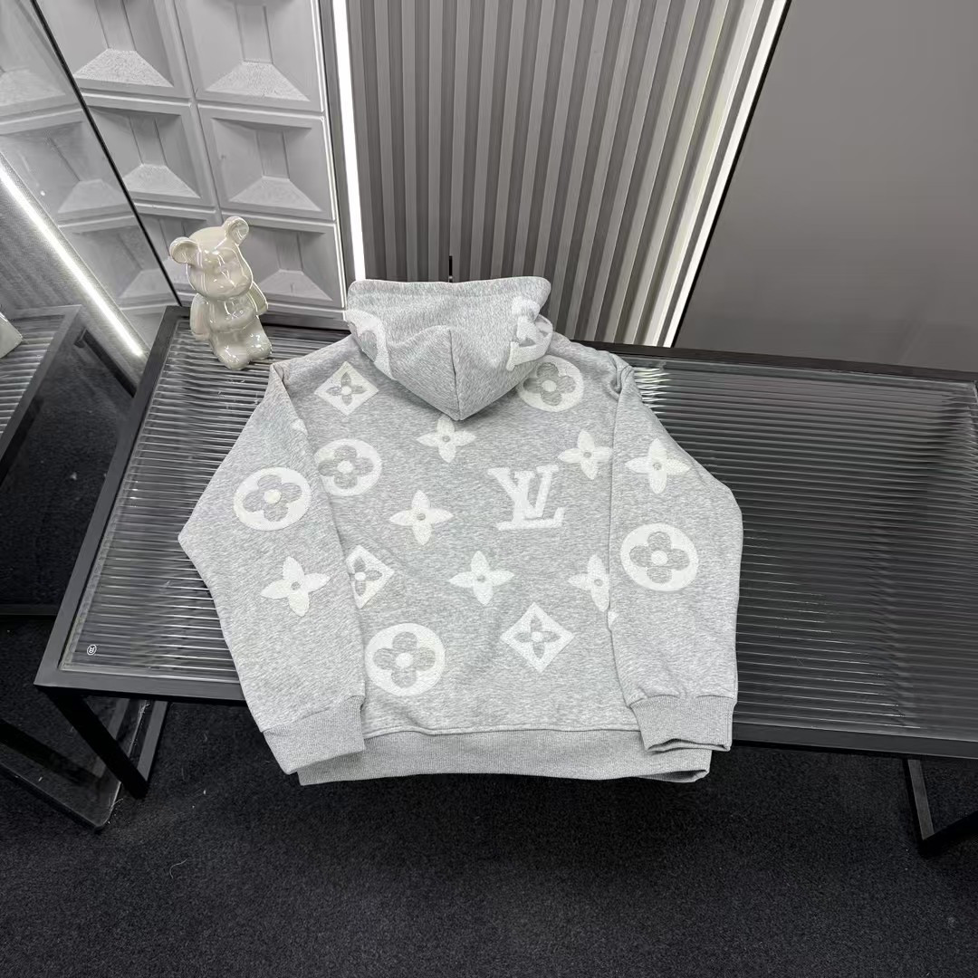 秋冬爆款热销款推荐Lv路易威登加绒连帽卫衣 多花字母图案火烧毛巾绣 三标齐全官网一致 放大看细节原相机实物拍摄 颜色 灰色 尺码 L 4xl L 80 105斤 XL 105 120斤 2XL 120 140斤 3XL 140 160斤 4XL 160 180斤