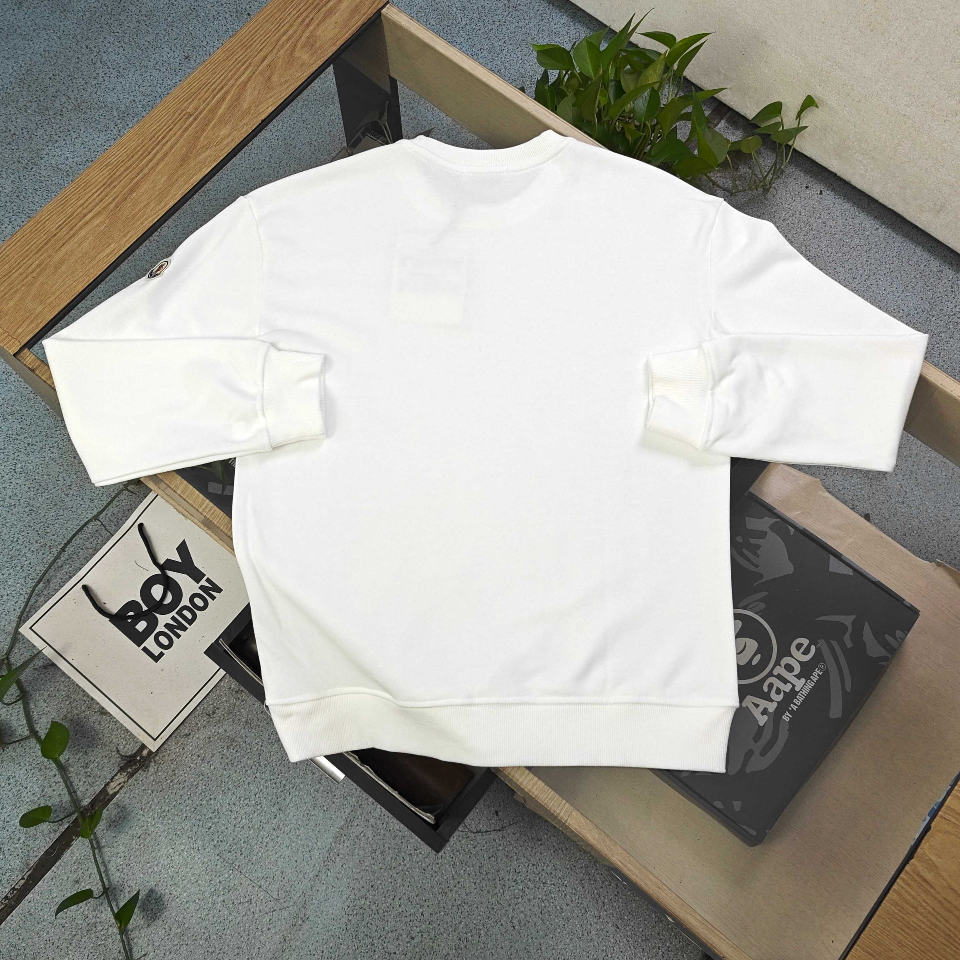 2025秋冬新款Moncler蒙口经典侧边字母图案logo印花休闲情侣圆领毛圈卫衣 340克重大毛圈面料 质感扎实挺括 上身舒适有腔调 经典白色基底搭配醒目 MON 字母印花 简约又具辨识度 袖侧品牌标志性徽章点缀 细节尽显格调