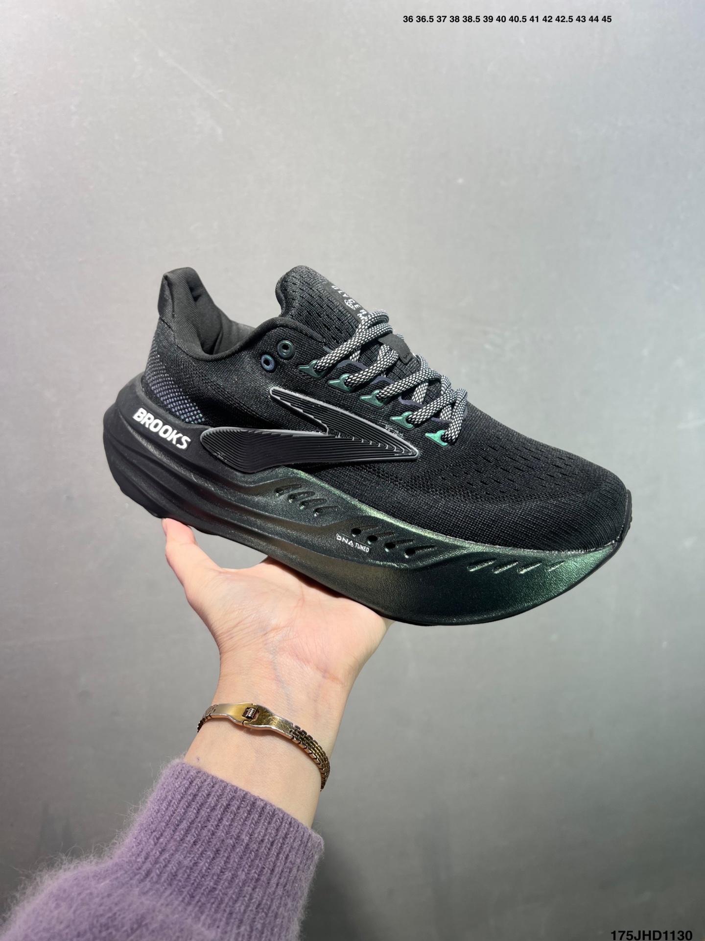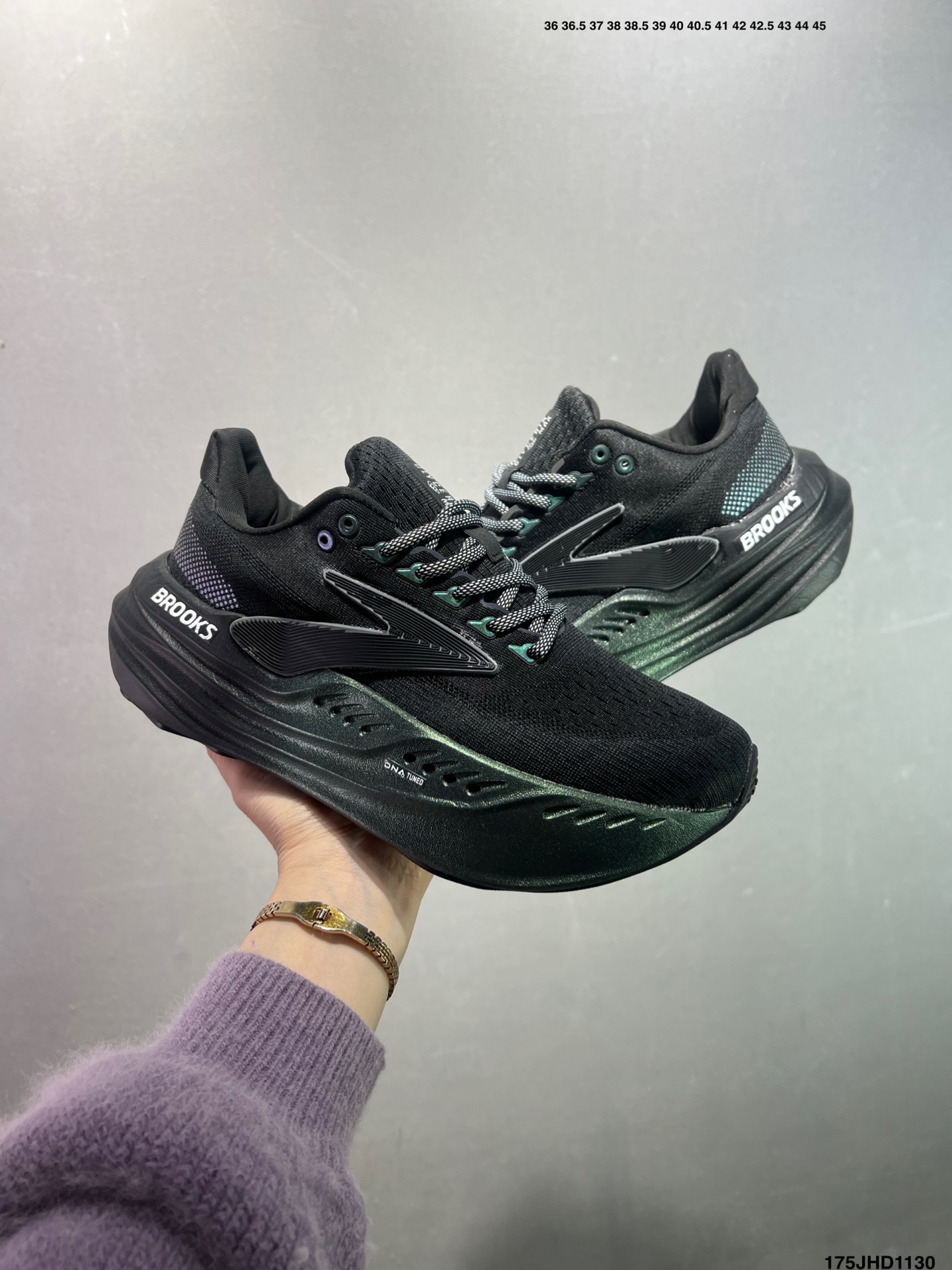 Brooks 布鲁克斯Glycerin Max 超级甘油 厚底马拉松缓震跑鞋 该鞋以厚实的中底和高分子注氮技术为特点 提供极致的缓震性能 鞋面柔软厚实 具有良好的包裹性能和散热性能 大底设计简单 纹路深 适合城市路面 货号 120436 1D 118 码数 如图 编码 175JHD1130
