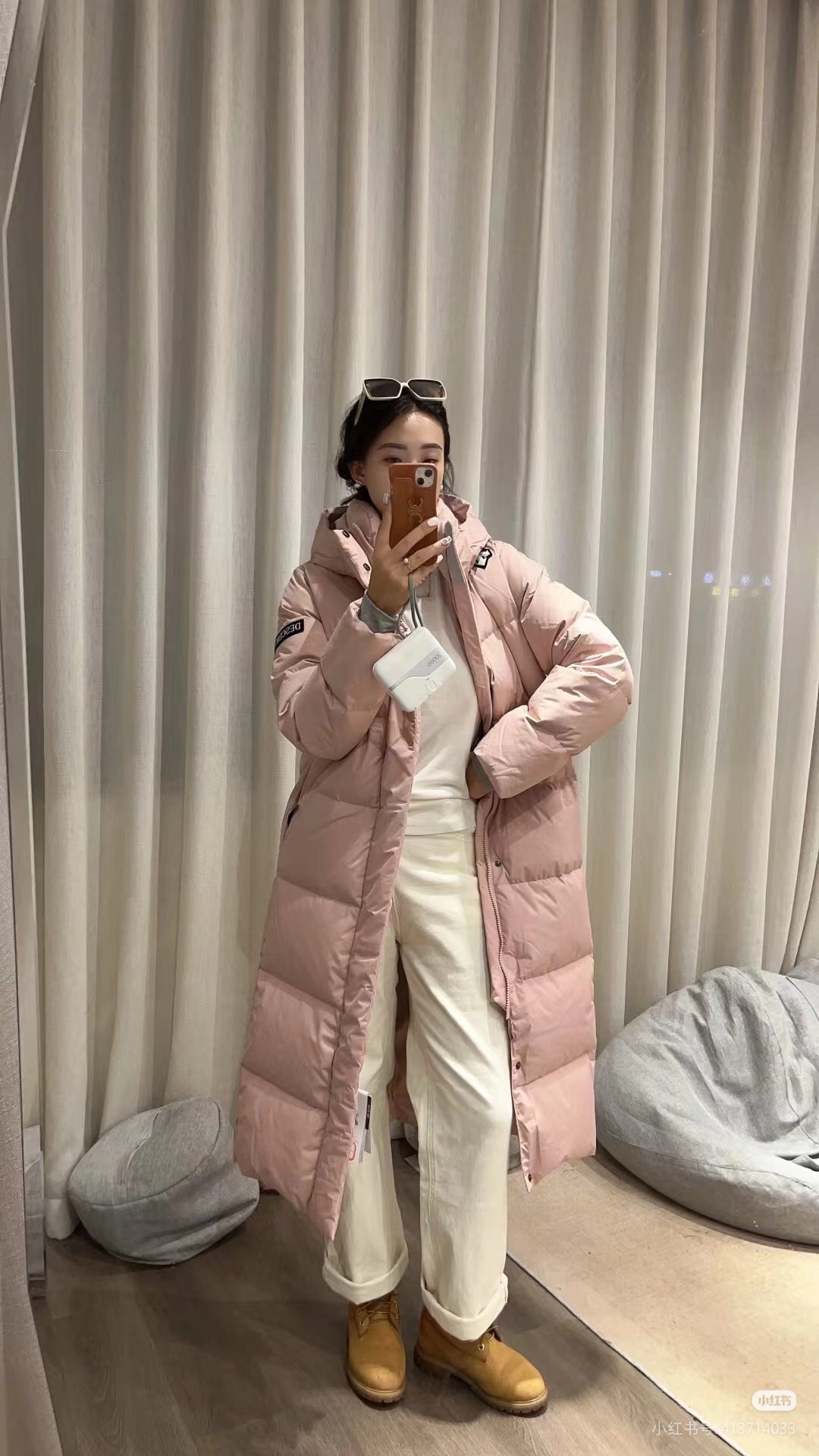 过膝的长度 就如同行走的羽绒被 约322克的充绒量90 绒 10 羽毛这种高端配比蓬松度越高保暖性越好 保暖轻便不压身