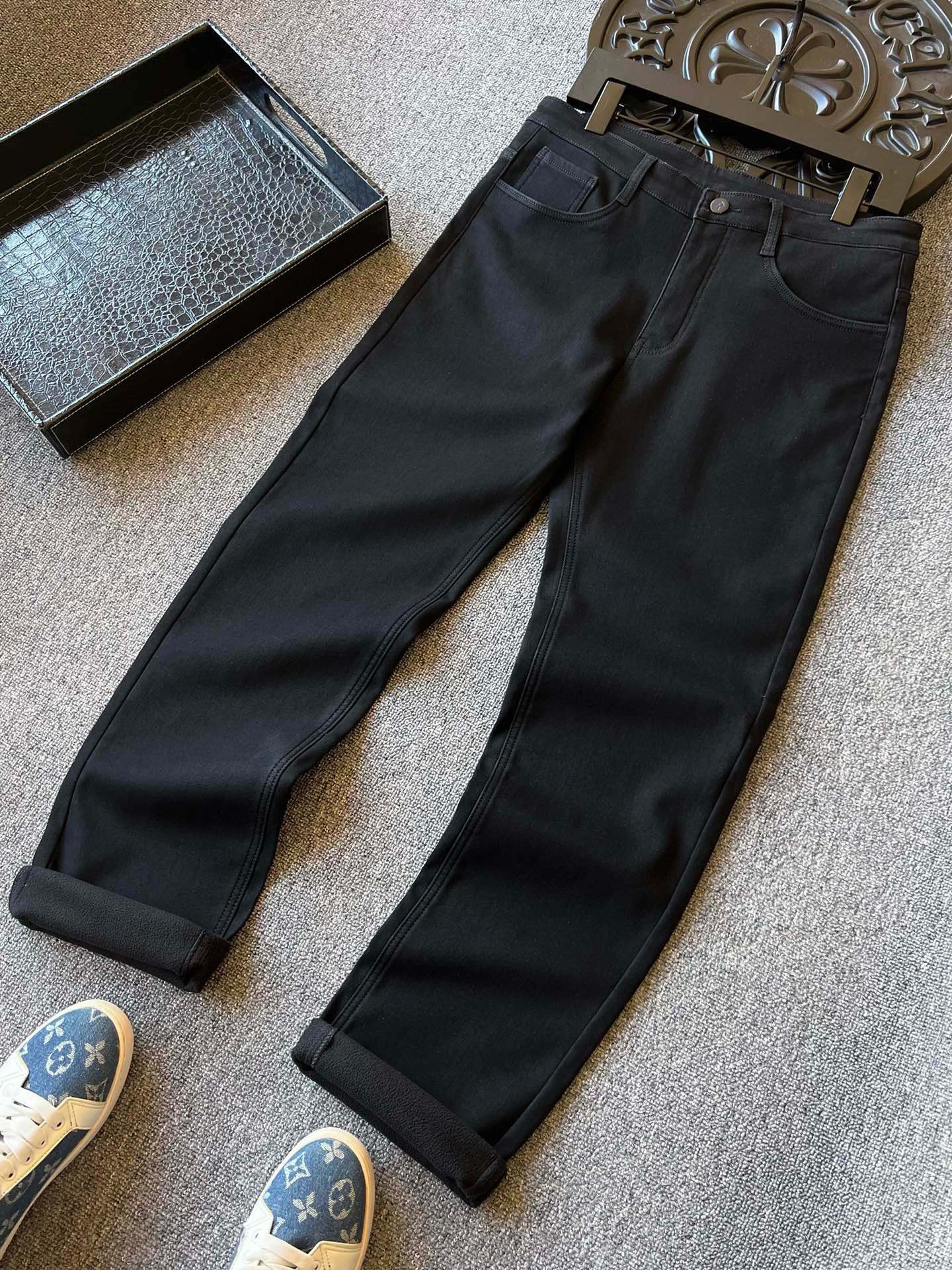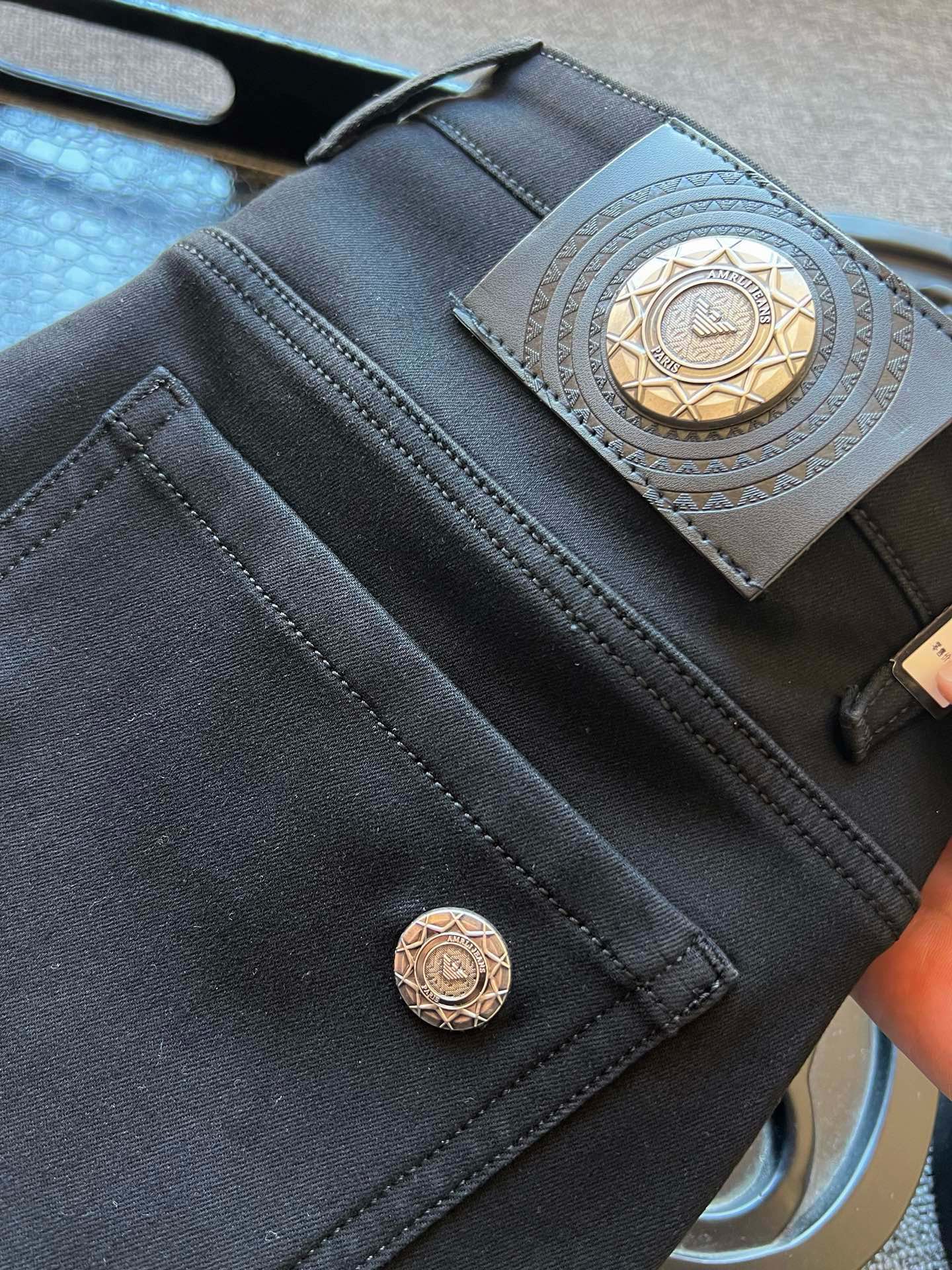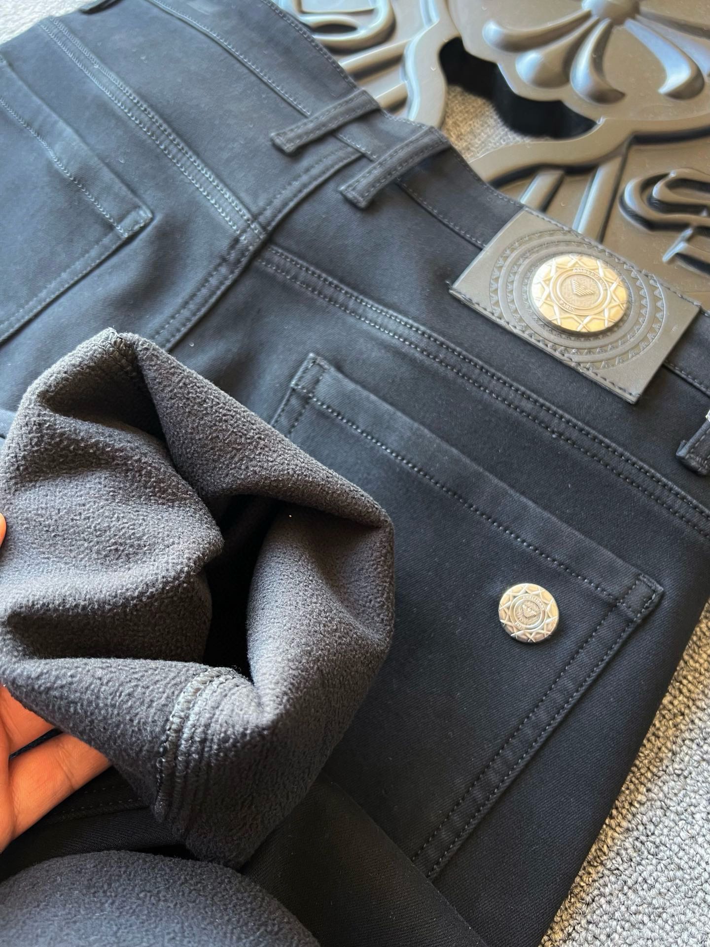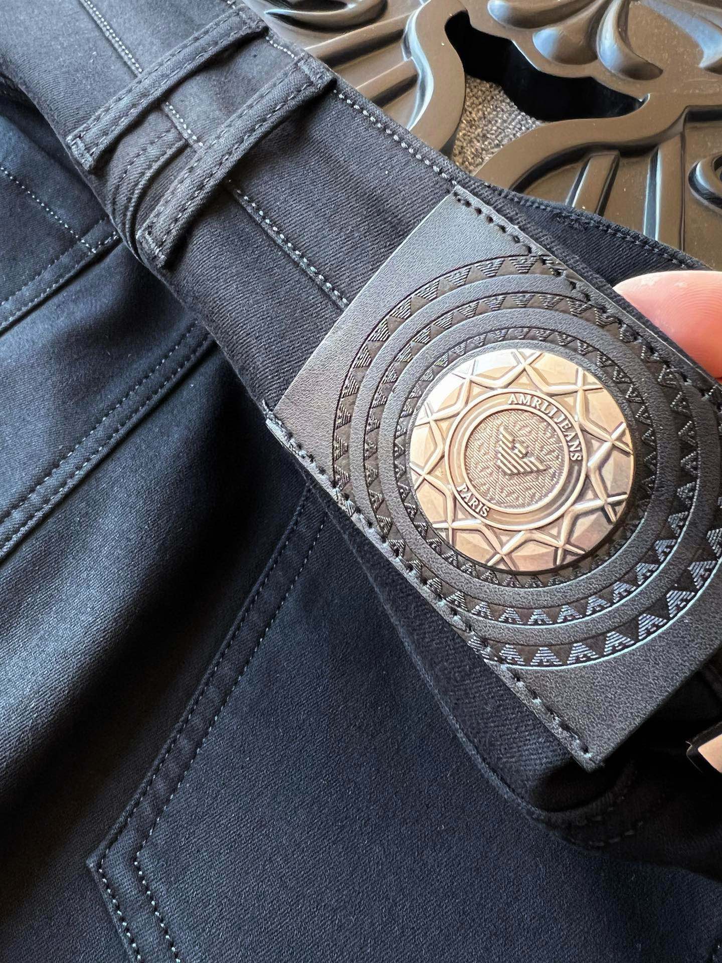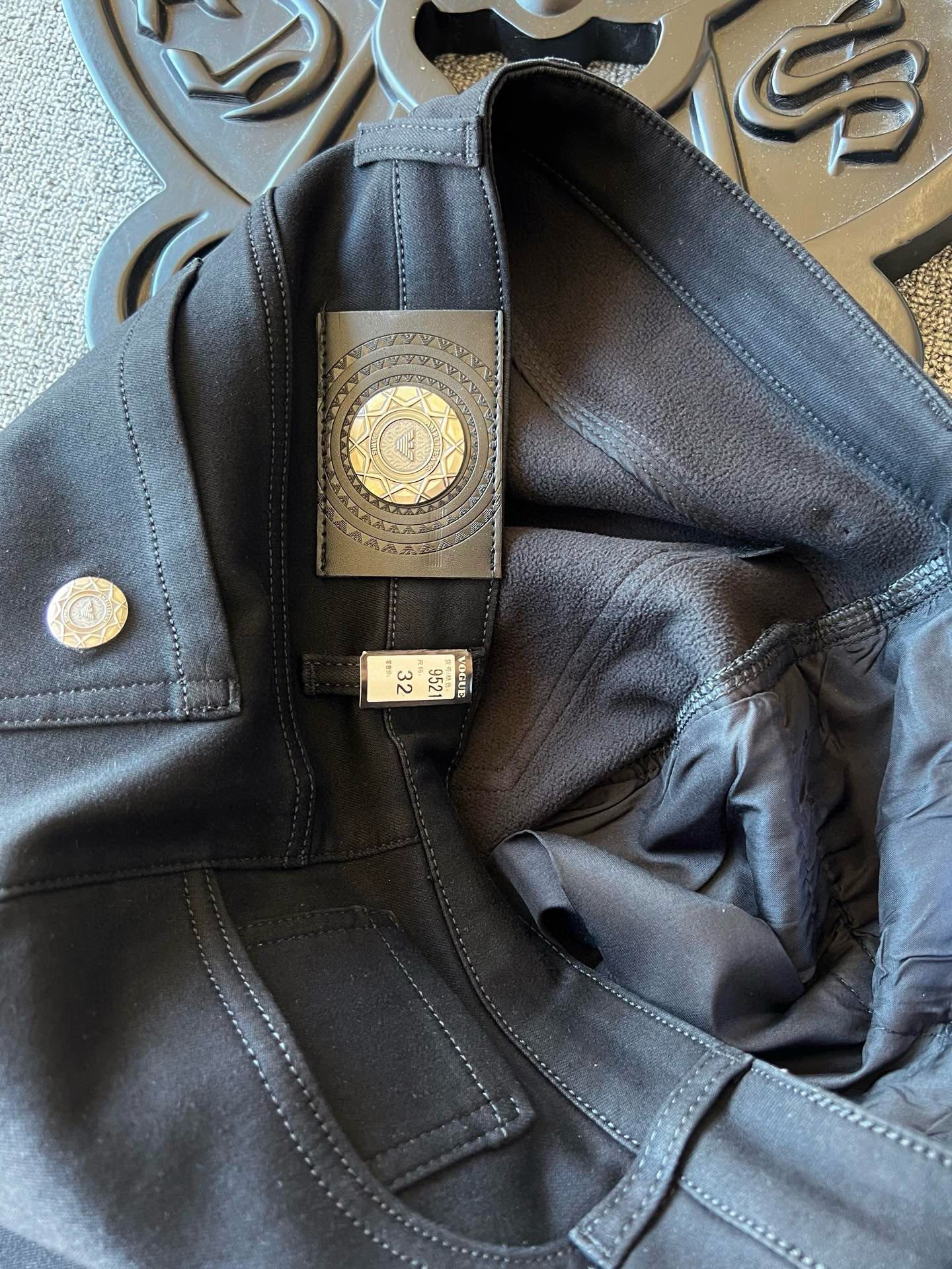 细节细节再细节 Armani家专柜新品加绒加厚牛仔长裤 全身精致简约设计 上衣轻松随意配 裤后腰牌精致阿玛尼压花金属皮标 口袋镶嵌原标阿玛尼金属点缀 内里精工包边包条 无可挑剔