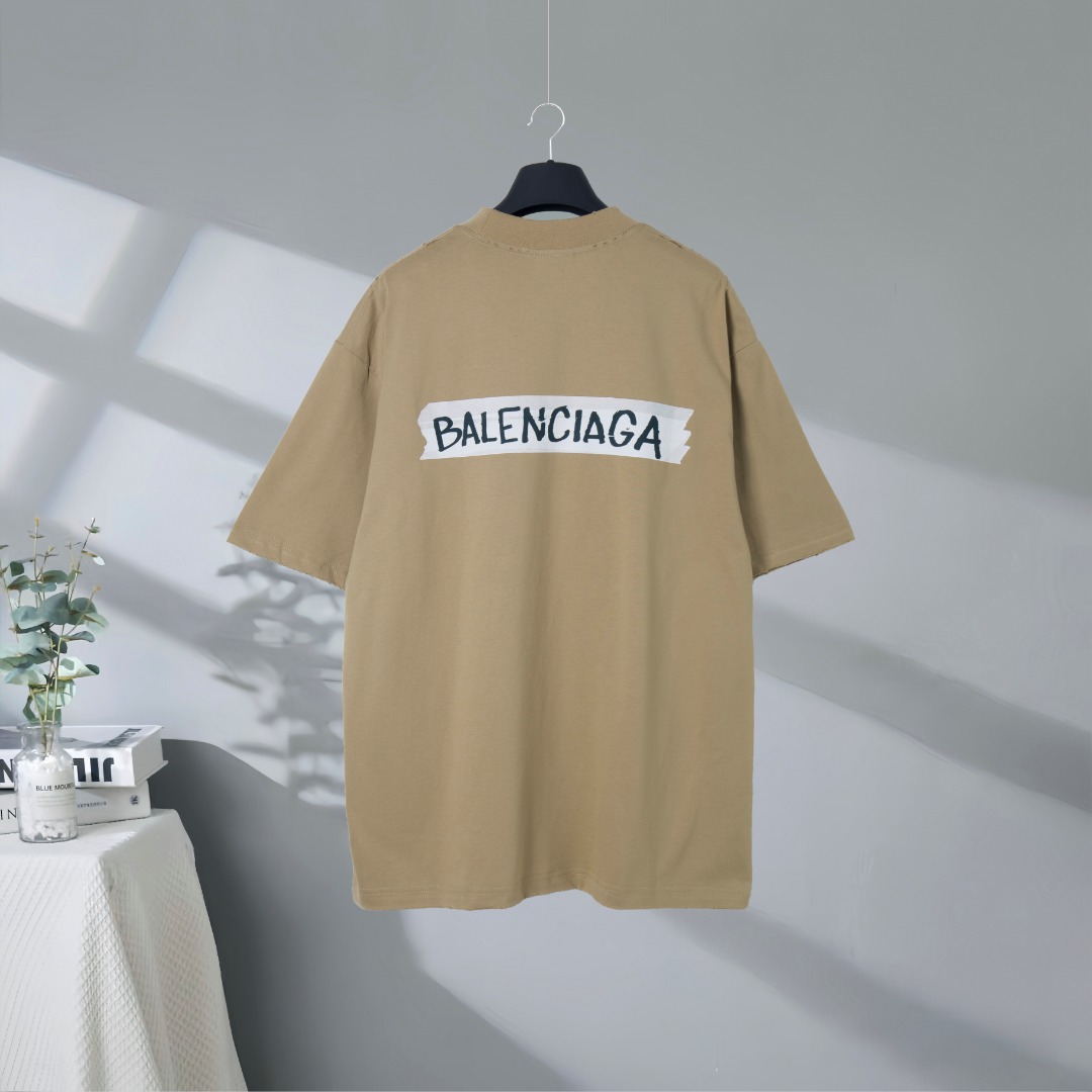 BALENCIAGA 巴黎世家2026SS 美工白胶带印花磨破做旧短袖T恤