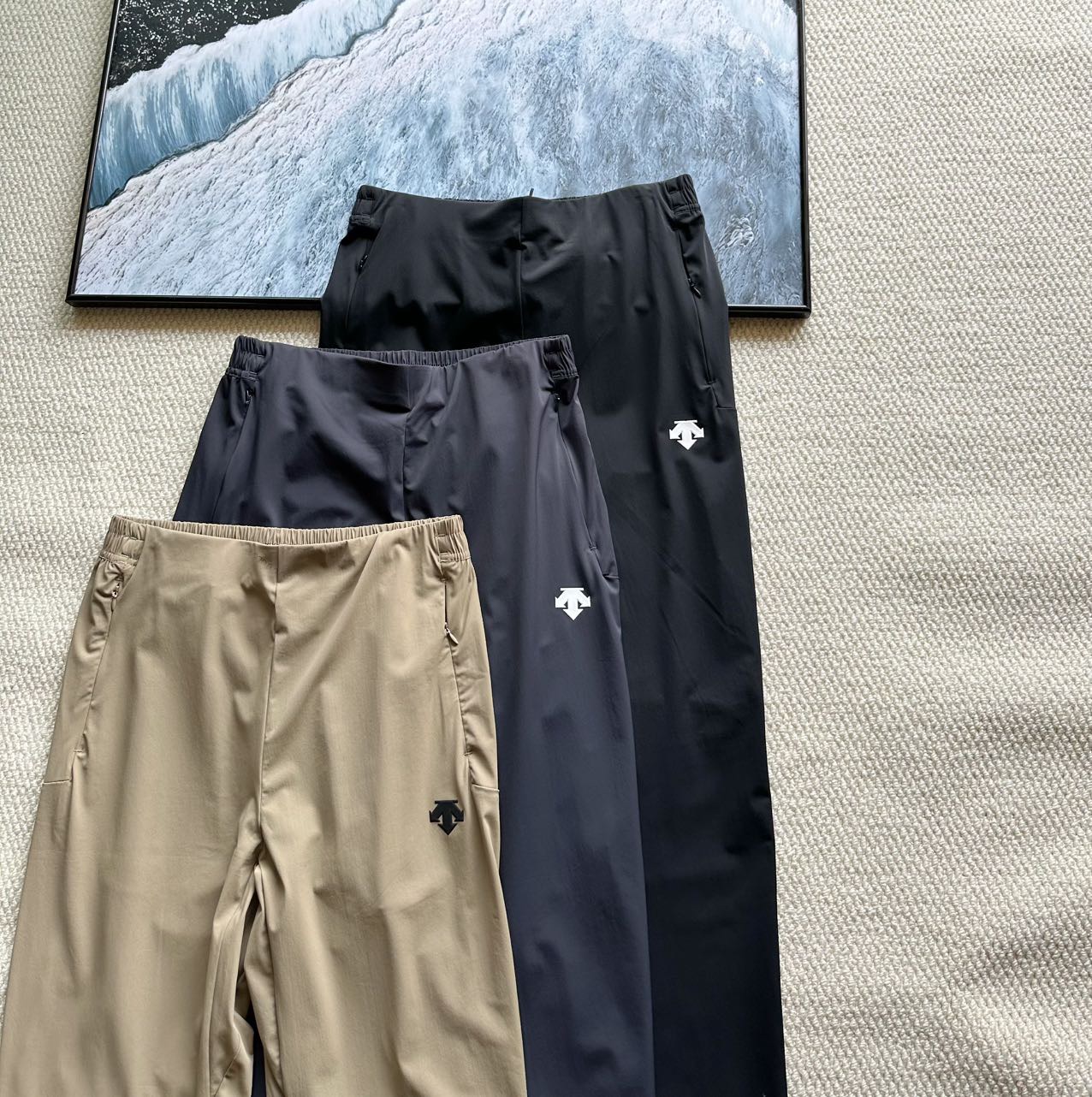 迪桑特夏季新款冰丝特综训运动休闲长裤 专柜在售1070 原样打版 品质款 高端面料采用78的锦纶 22的氨纶 弹力轻薄透气冰丝 贵在面料 其次工费 上身后面料本身能给的舒适感 和细节质感无可挑剔