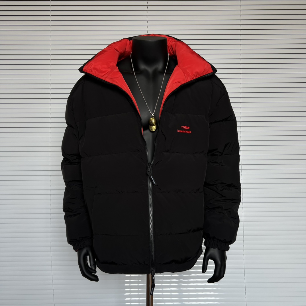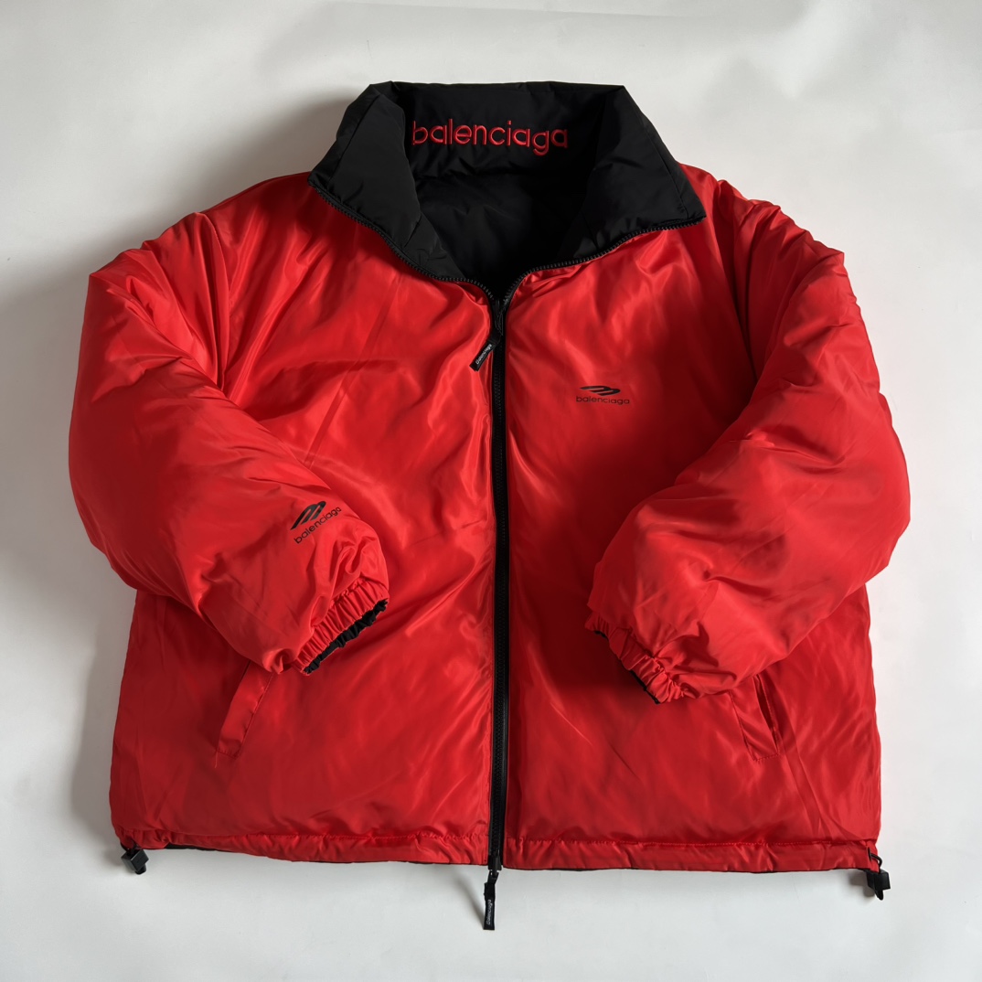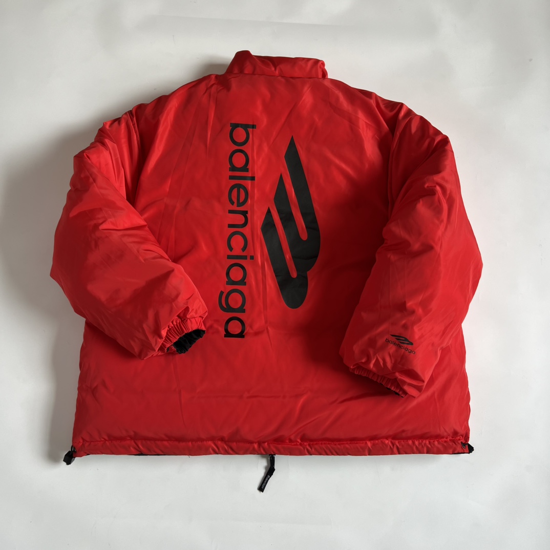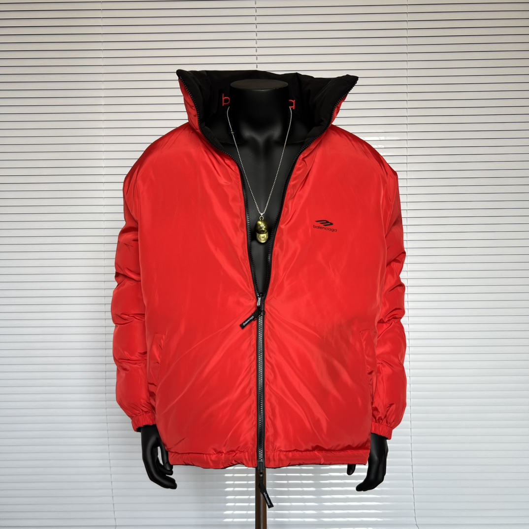 Balenciaga巴黎世家 Logo字母印花高领宽松版型拉链棉服 双面可穿 男女同款 款号 208 码数 S M L XL 颜色 外黑内红 双面穿 批发价 175 尺码 S M L XL 衣长 68 70 72 74 胸围 130 134 138 142 肩宽 55 57 58 59 袖长57 58 59 60