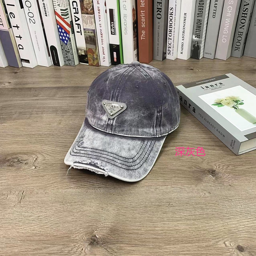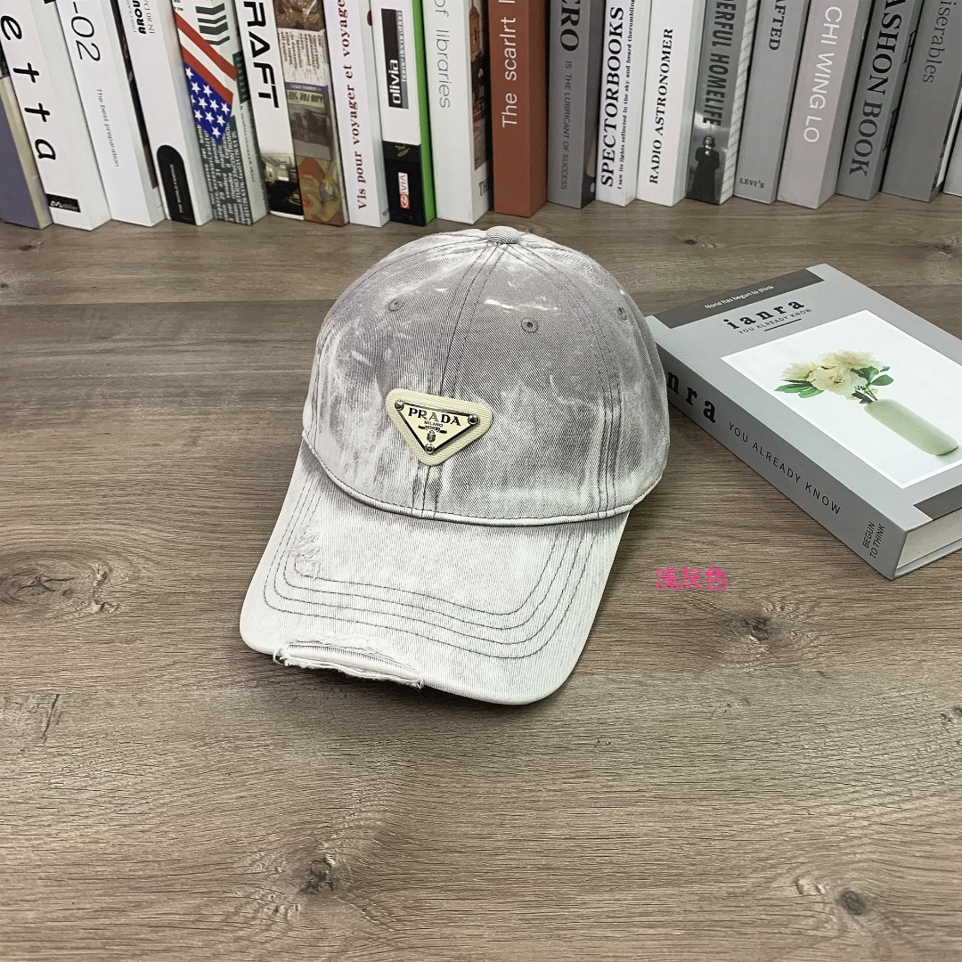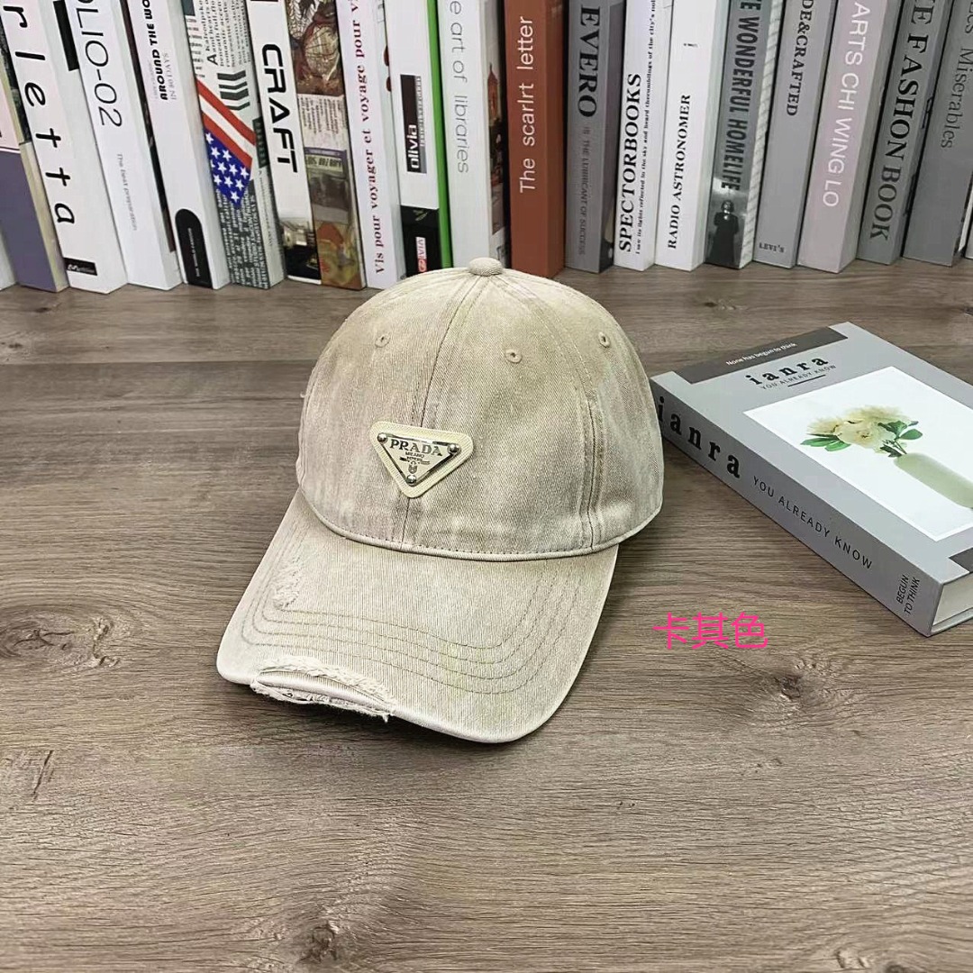 PRADA普拉达洗水做旧棒球帽软顶鸭舌帽男女同款休闲百搭帽子