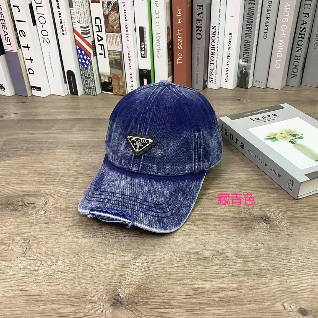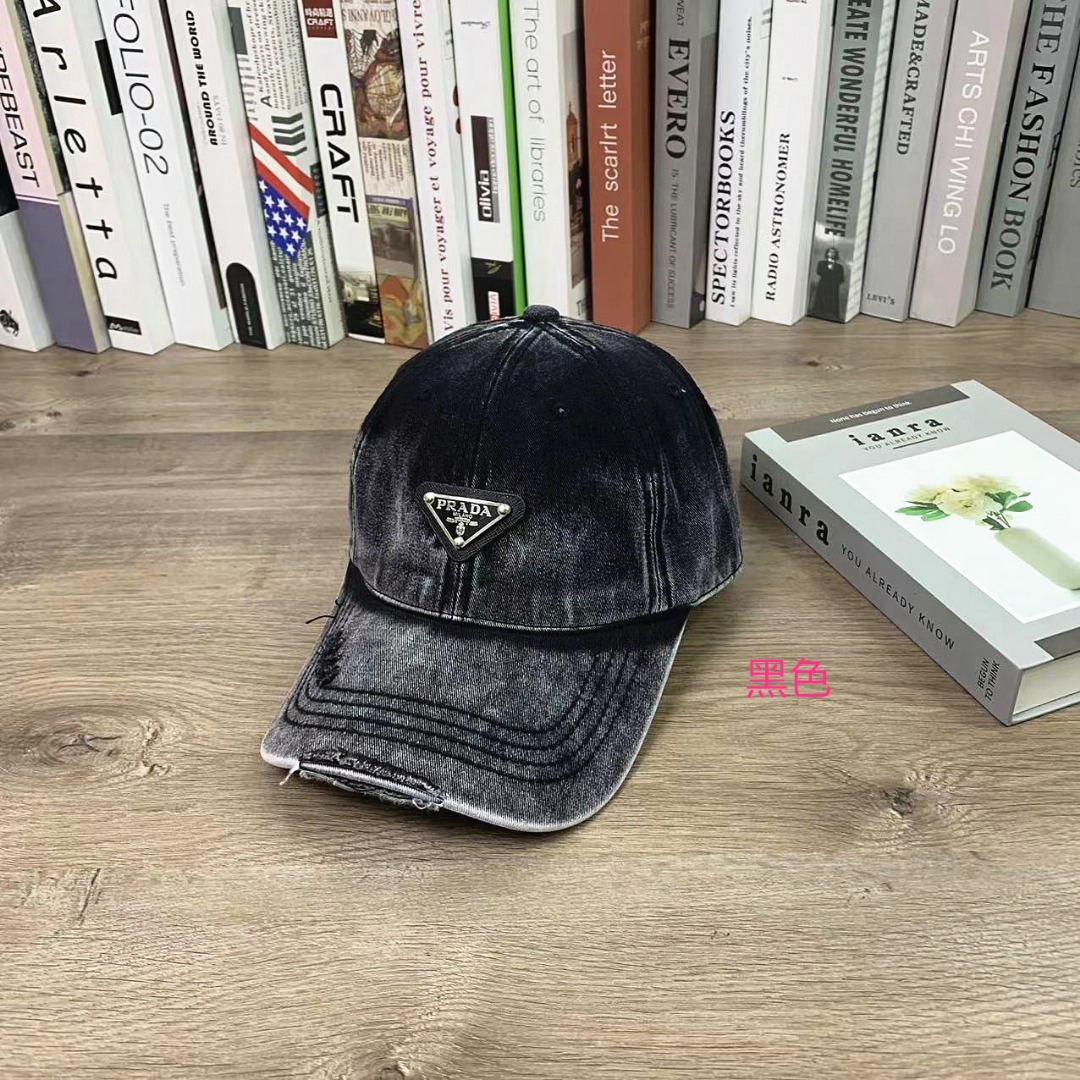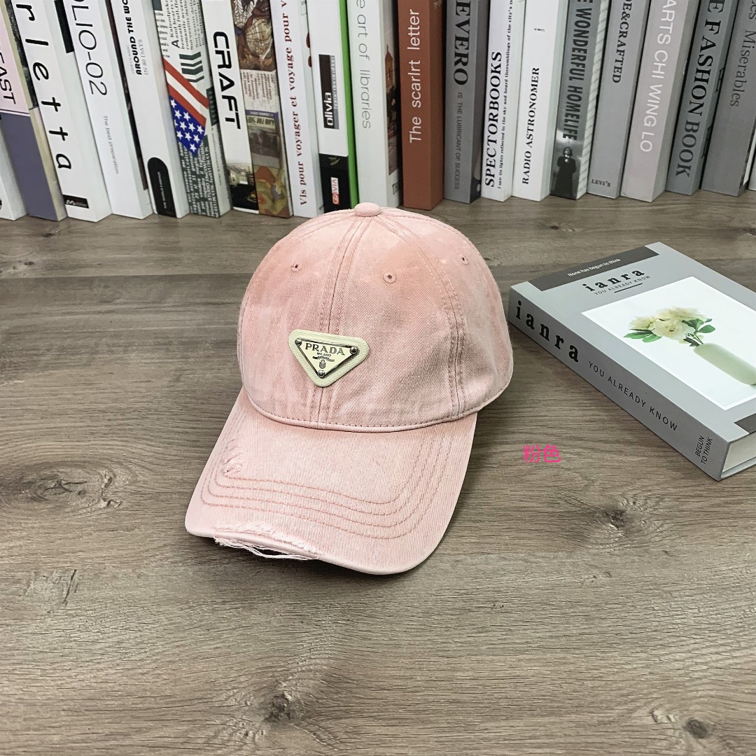 PRADA普拉达洗水做旧棒球帽软顶鸭舌帽男女同款休闲百搭帽子